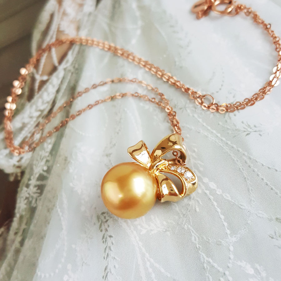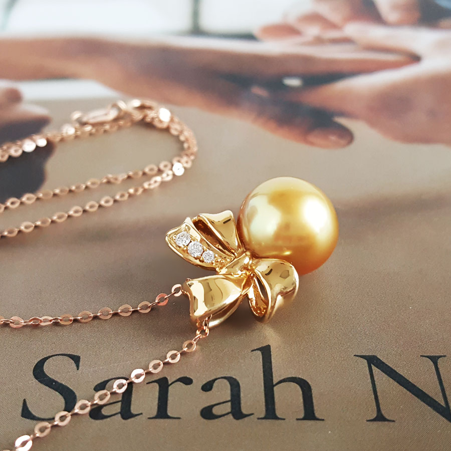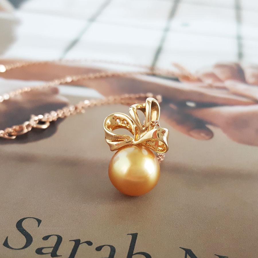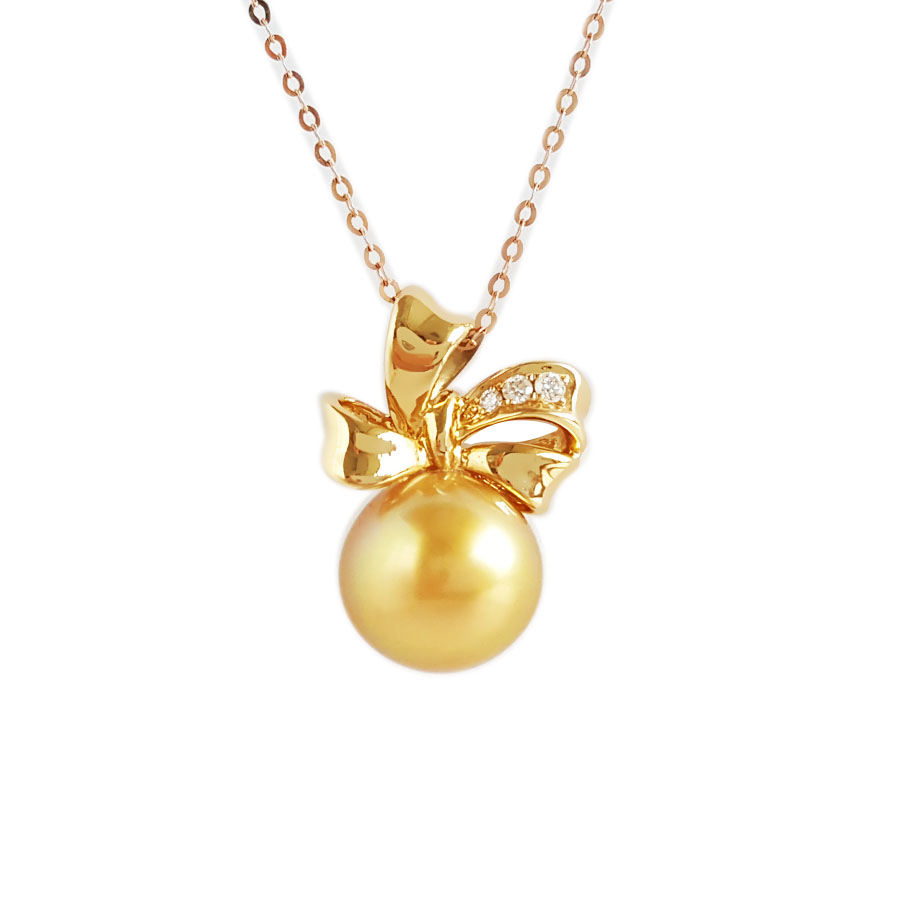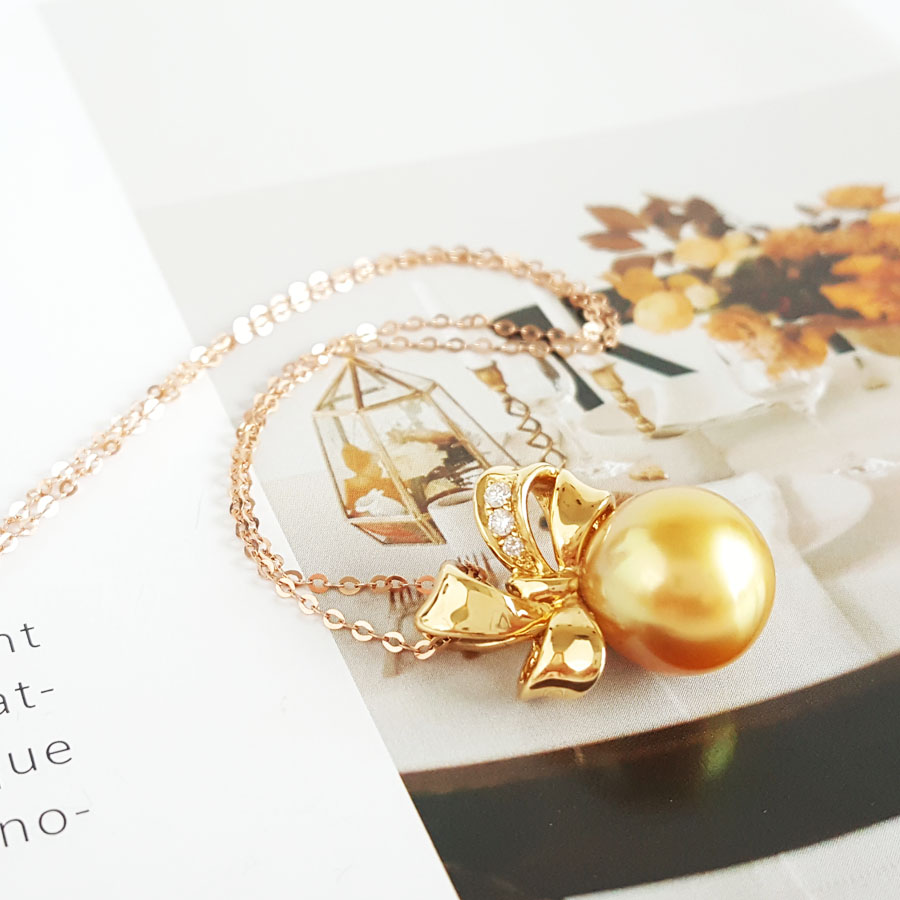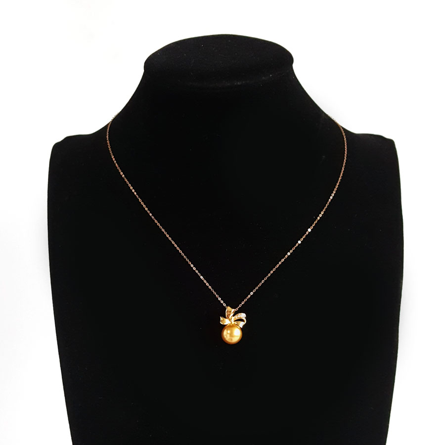 名称 | AU750黄金镶钻镶天然约11MM浓金色近无暇海水珍珠吊坠项链 |