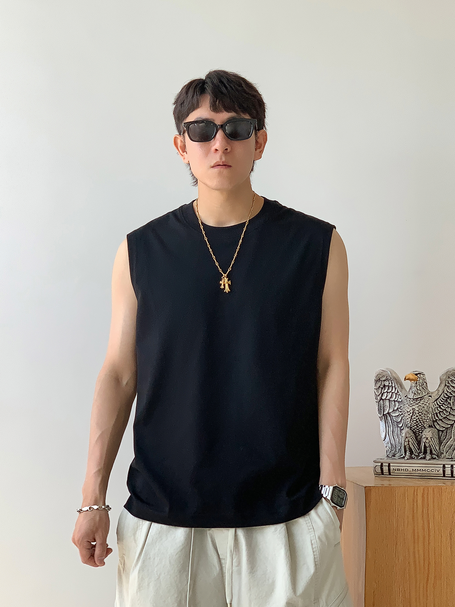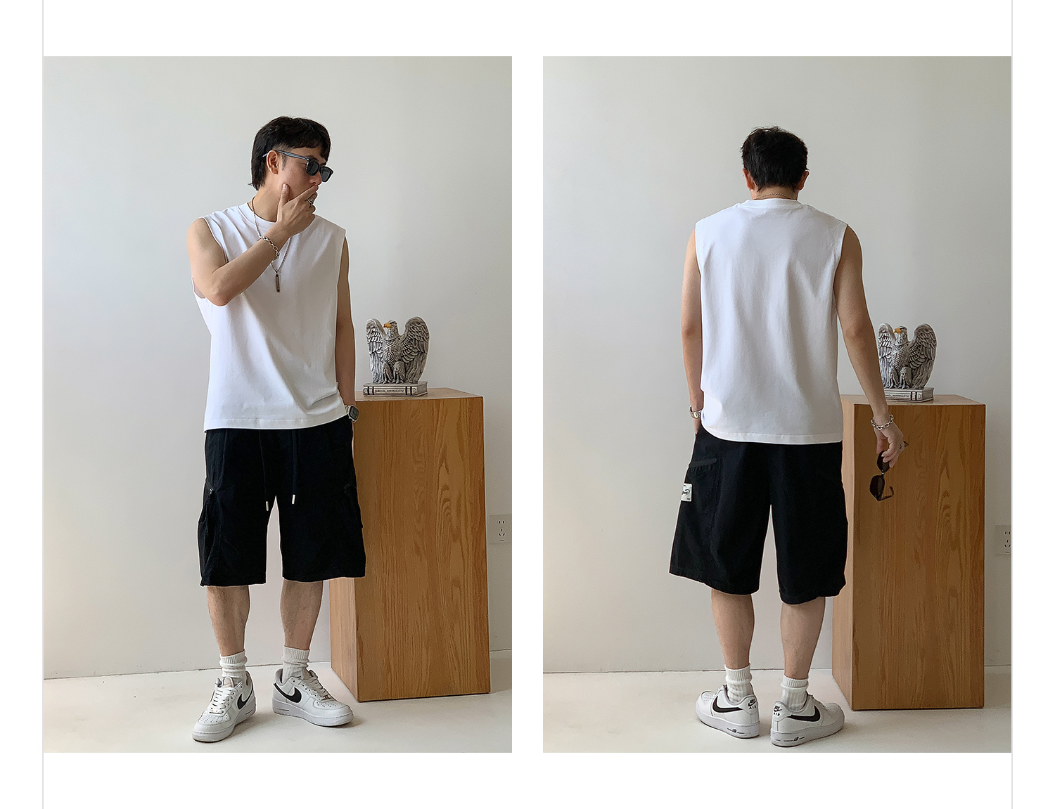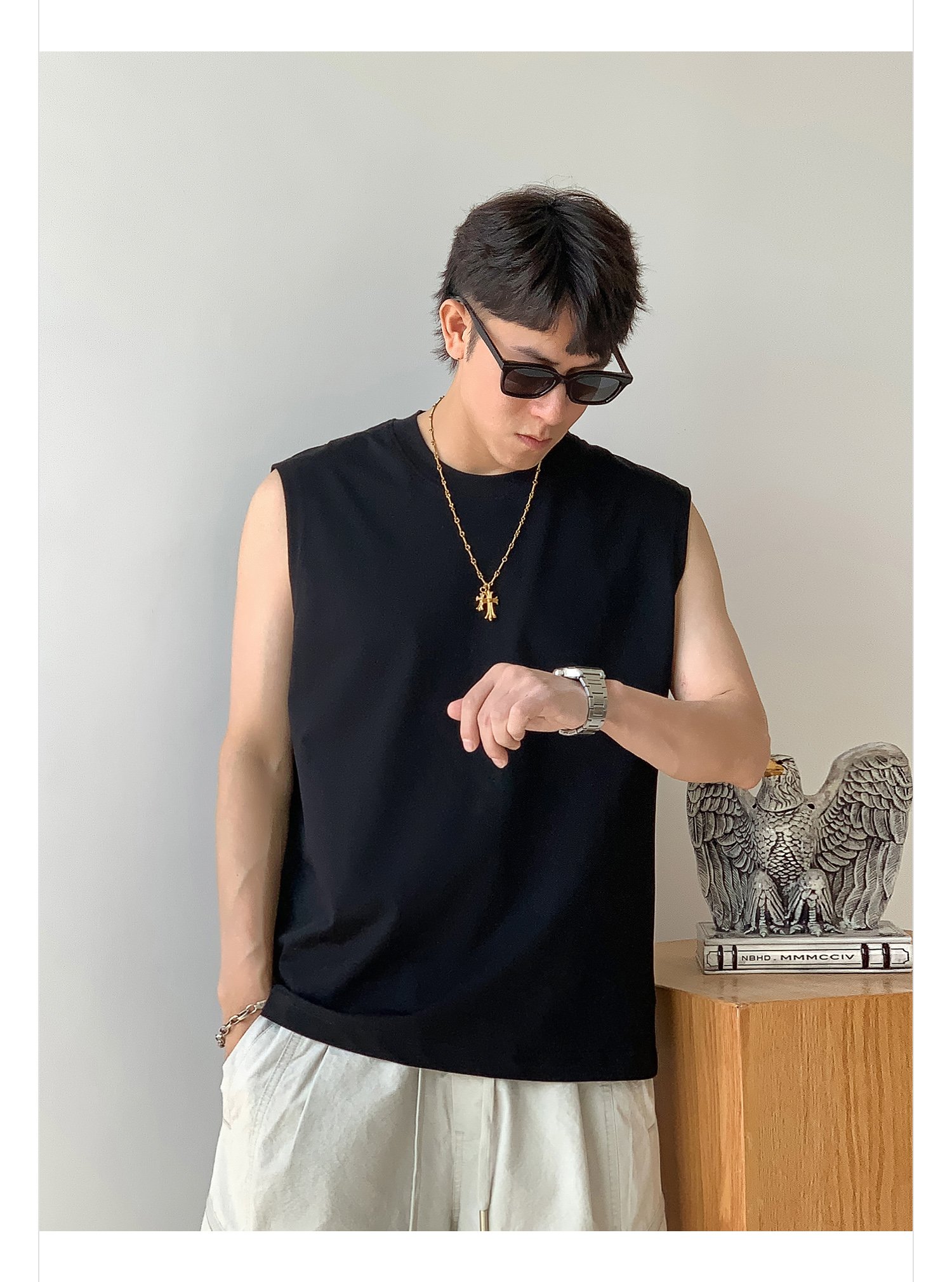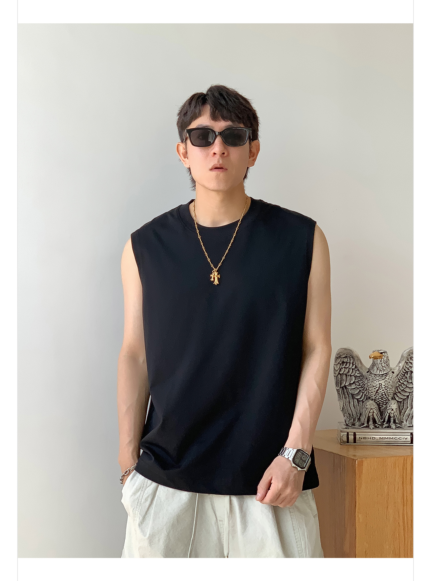 徐太浪纯色简约百搭健身背心男夏季透气无袖坎肩内搭打底t恤上衣