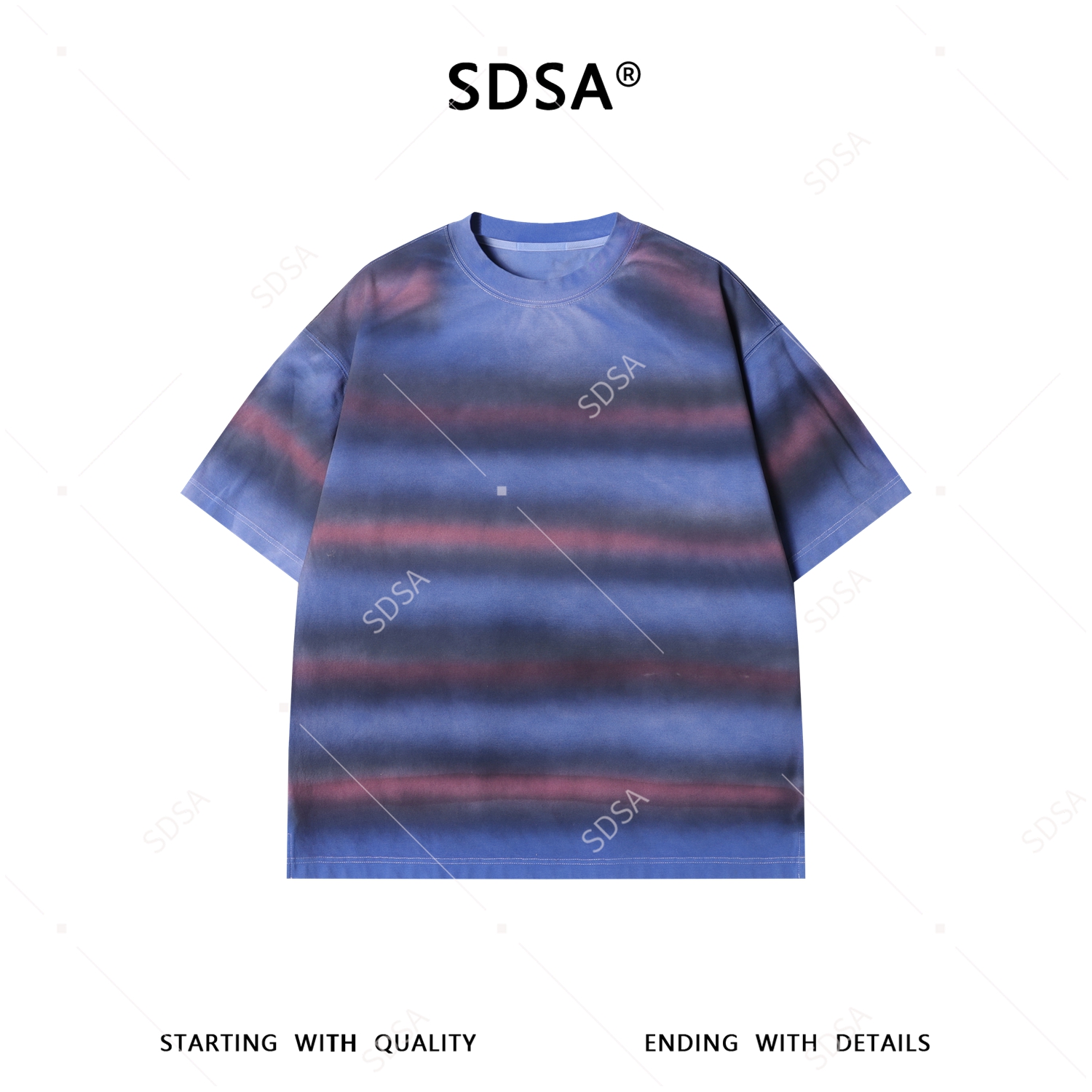 SDSA男装2026新款美式复古渐变t恤重磅棉宽松蓝紫条纹设计感短袖
