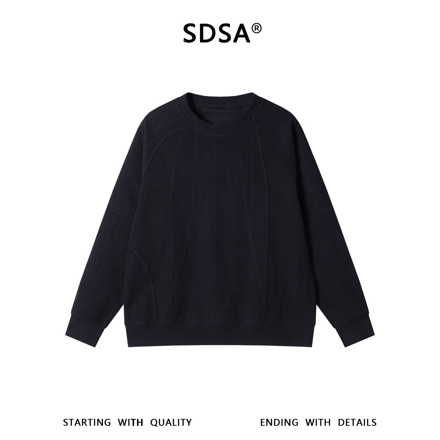 SDSA男士秋冬新款痞帅男装时尚简约纯色肌理感圆领卫衣百搭宽松