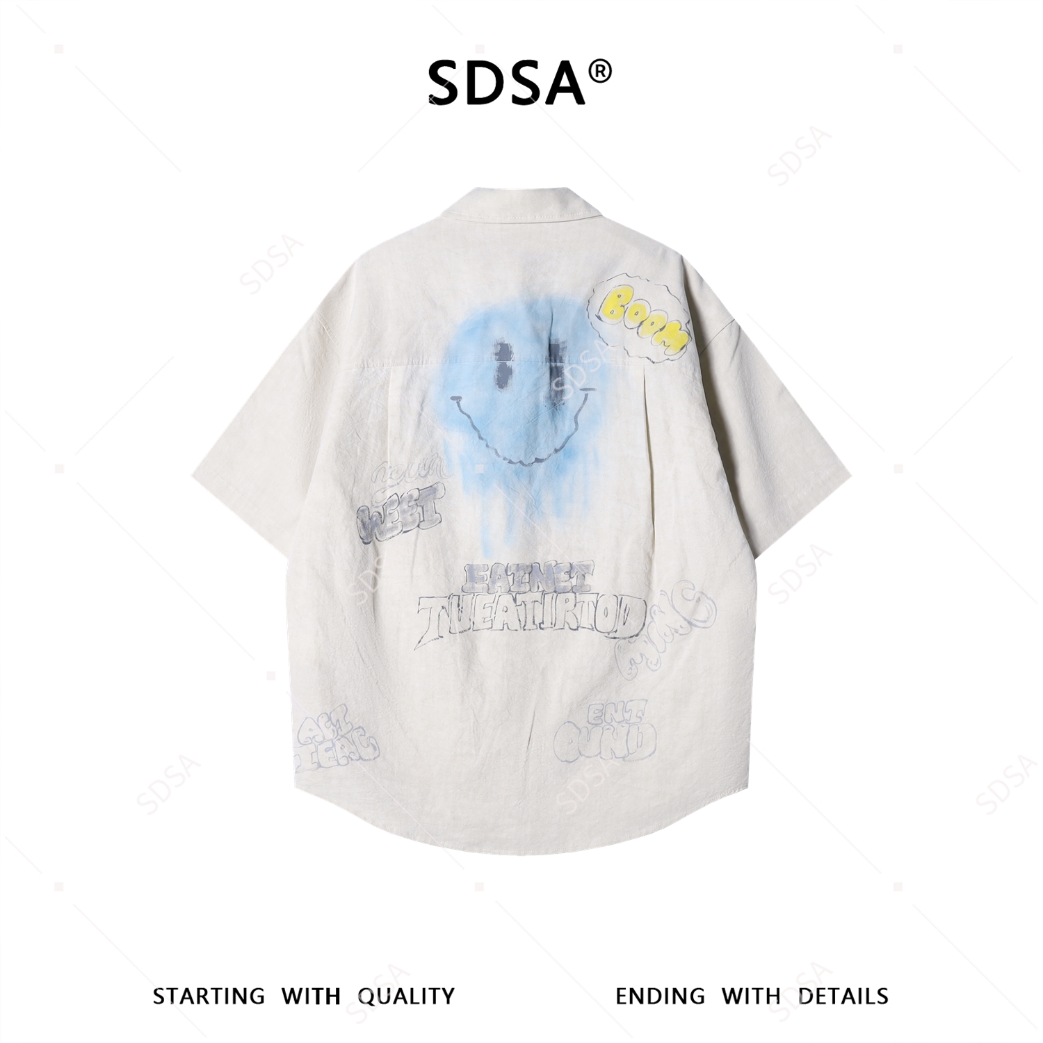 26CS67SDSA男装2026新款日系趣味涂鸦衬衫笑脸字母设计感宽松短袖衬衣