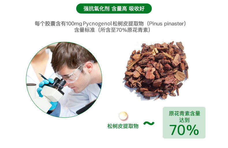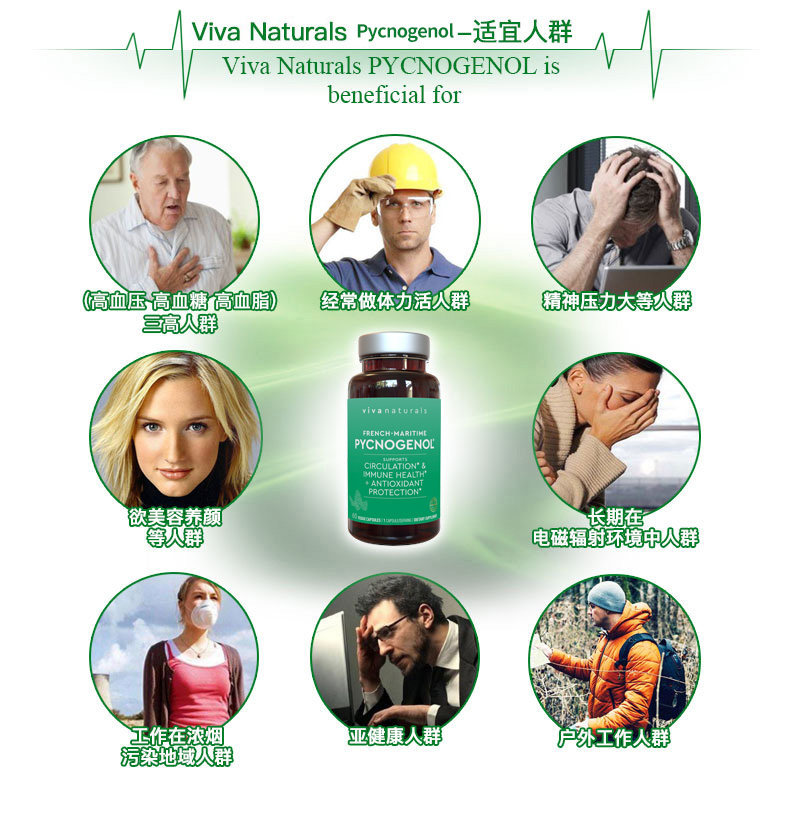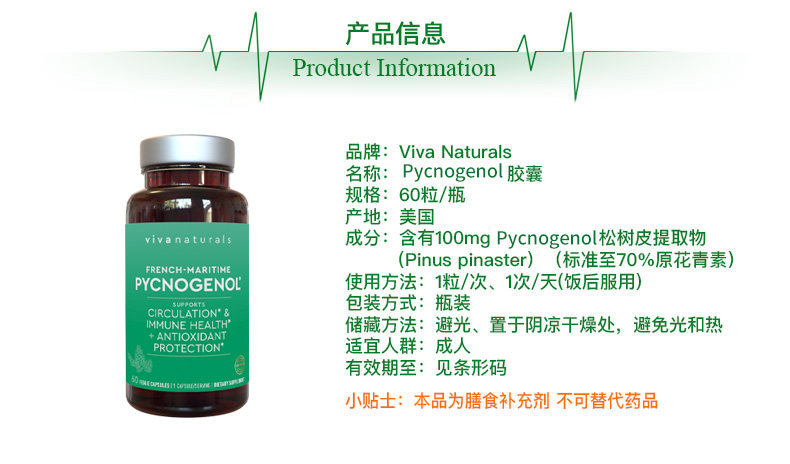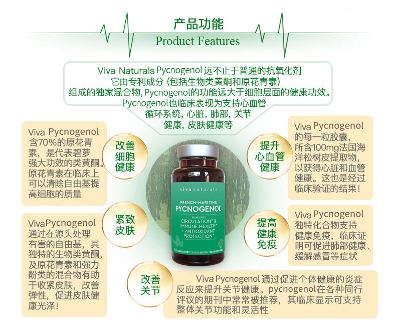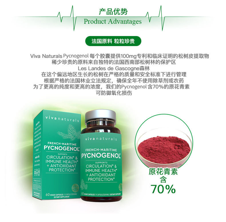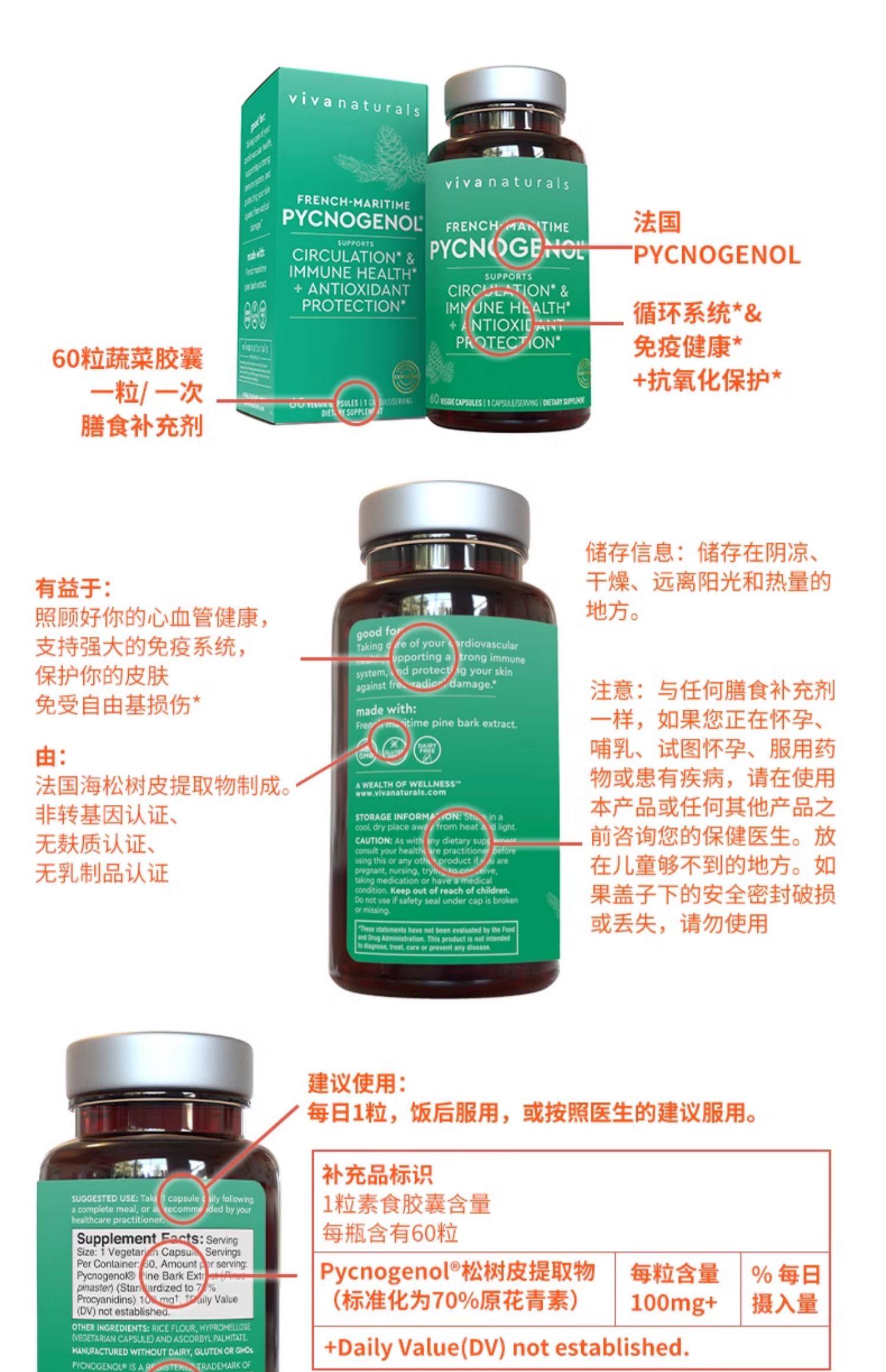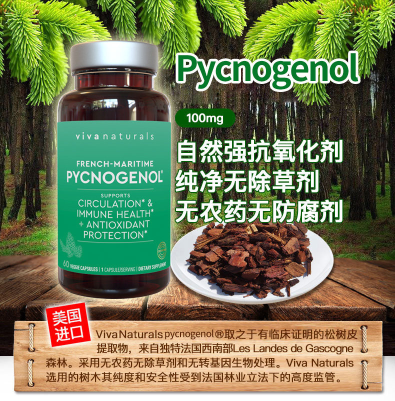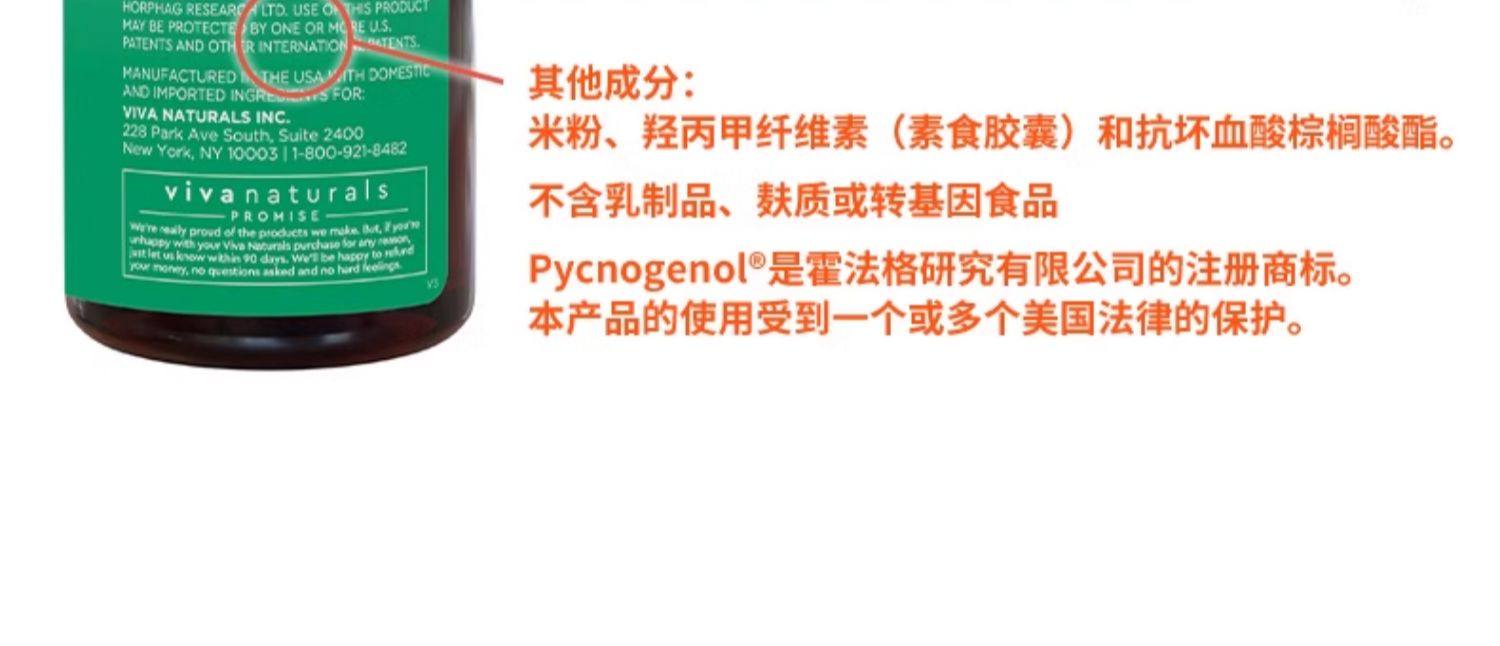 Viva美国原装进口pycnogenol法国松树皮胶囊60粒美肤高含量