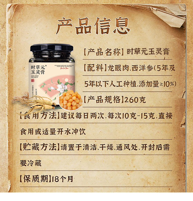 时草元玉灵膏蒸桂圆蒸桂膏时草原家西洋参玉灵膏官方旗舰店正品