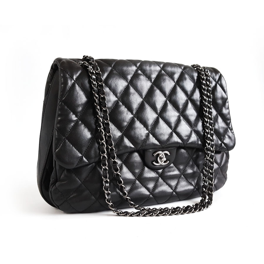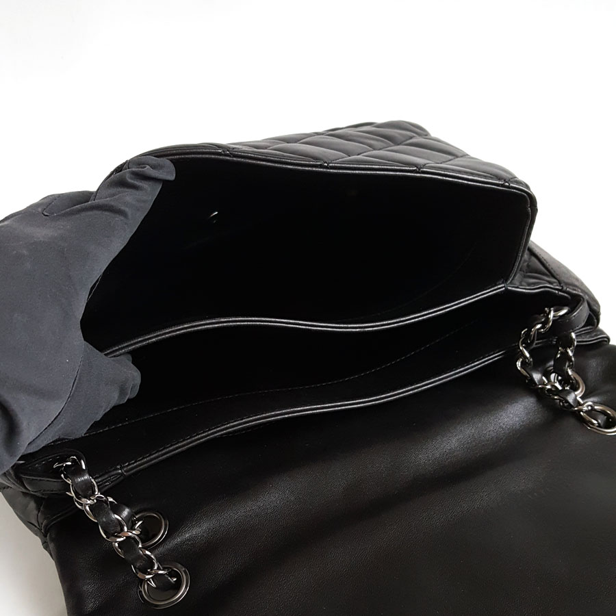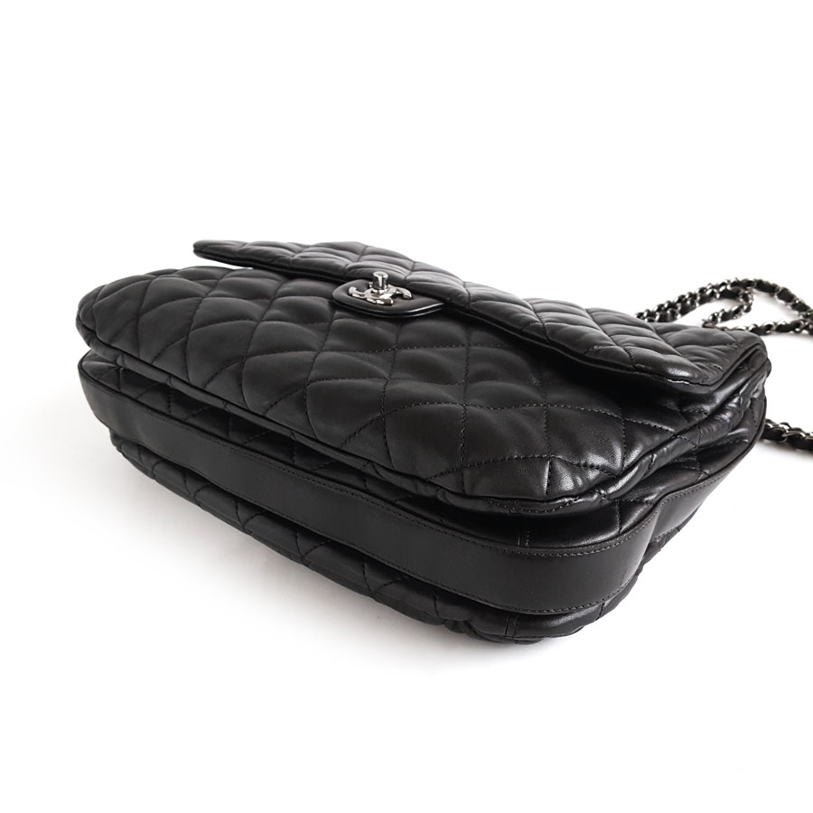 【95新】CHANEL香奈儿大号黑银羊皮机场包CF链条包单肩包中性款300326NJS07