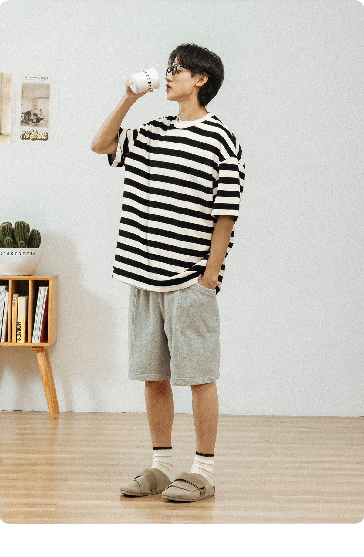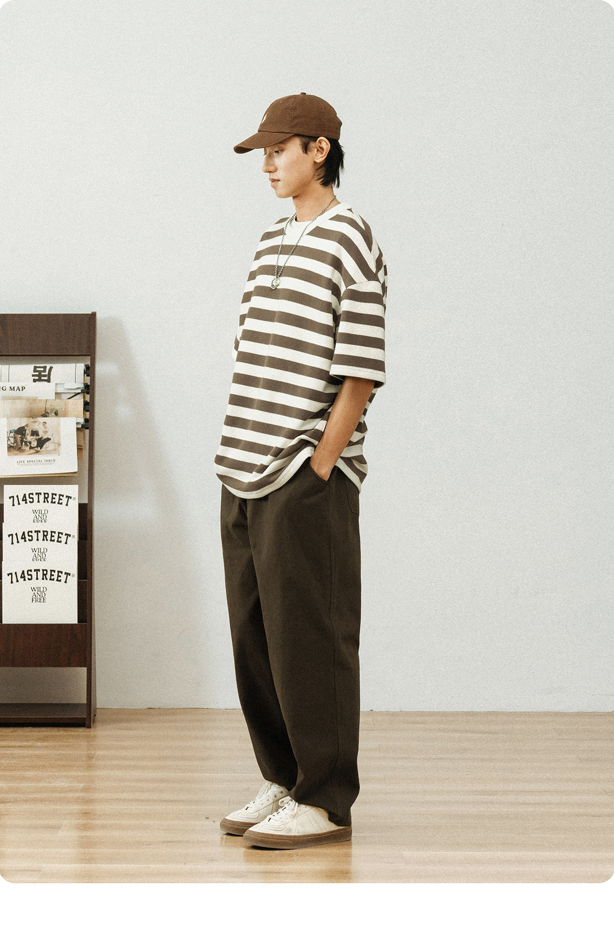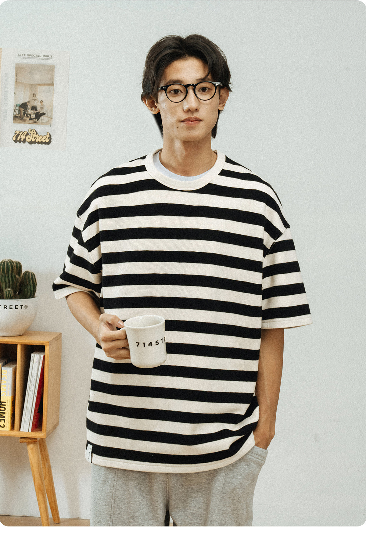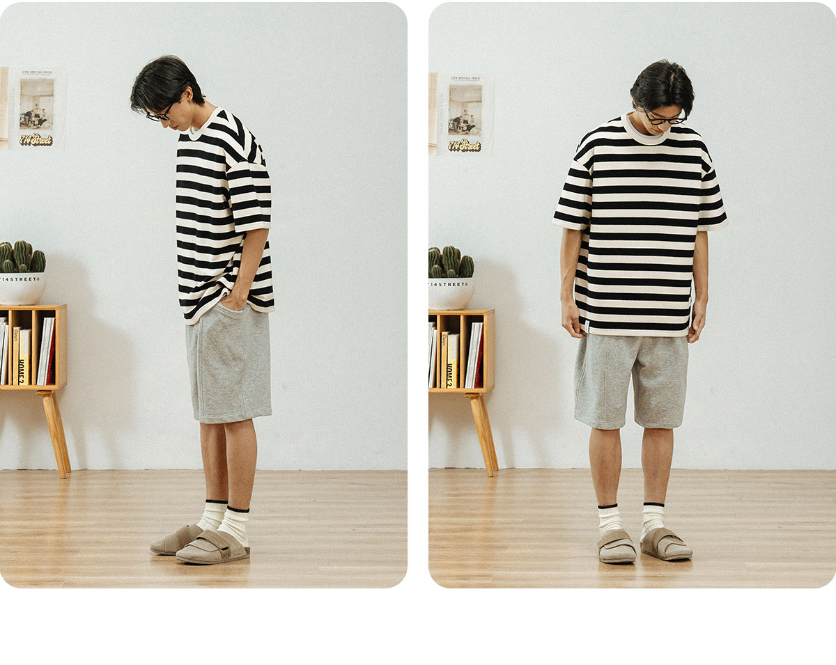 714street美式休闲重磅条纹短袖T恤男2025夏季新款国潮宽松上衣