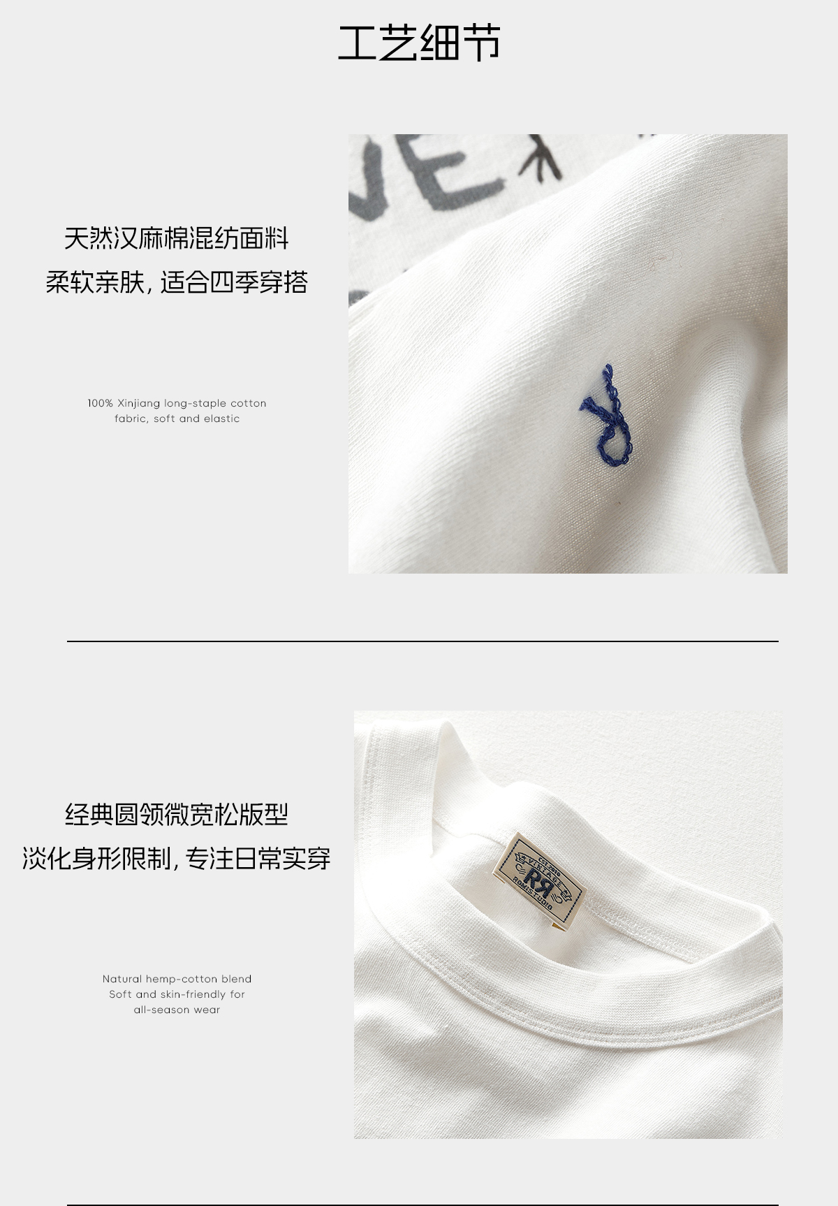 ROMI STUDIO"简约基础"汉麻混纺印花百搭圆领短袖T恤 RWCRSU5854