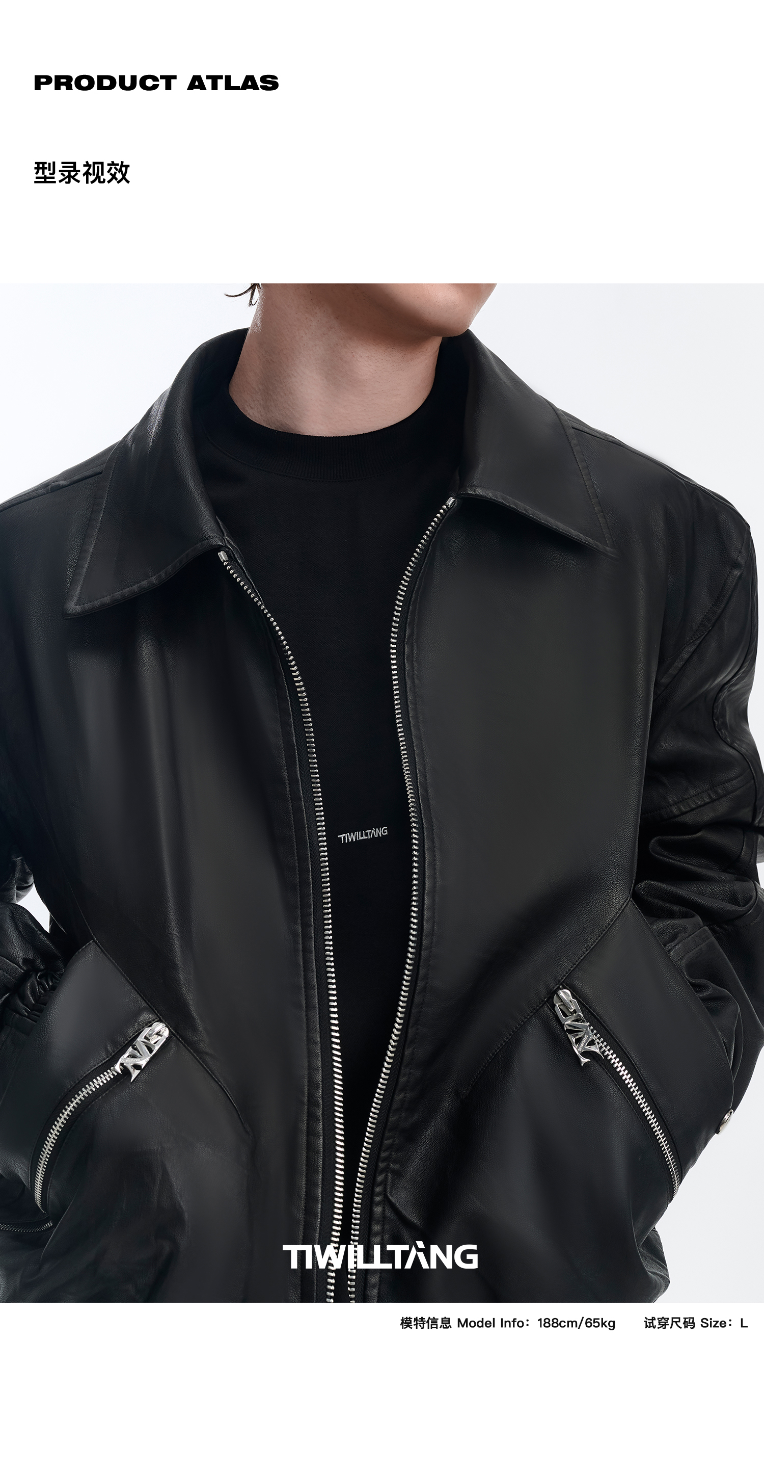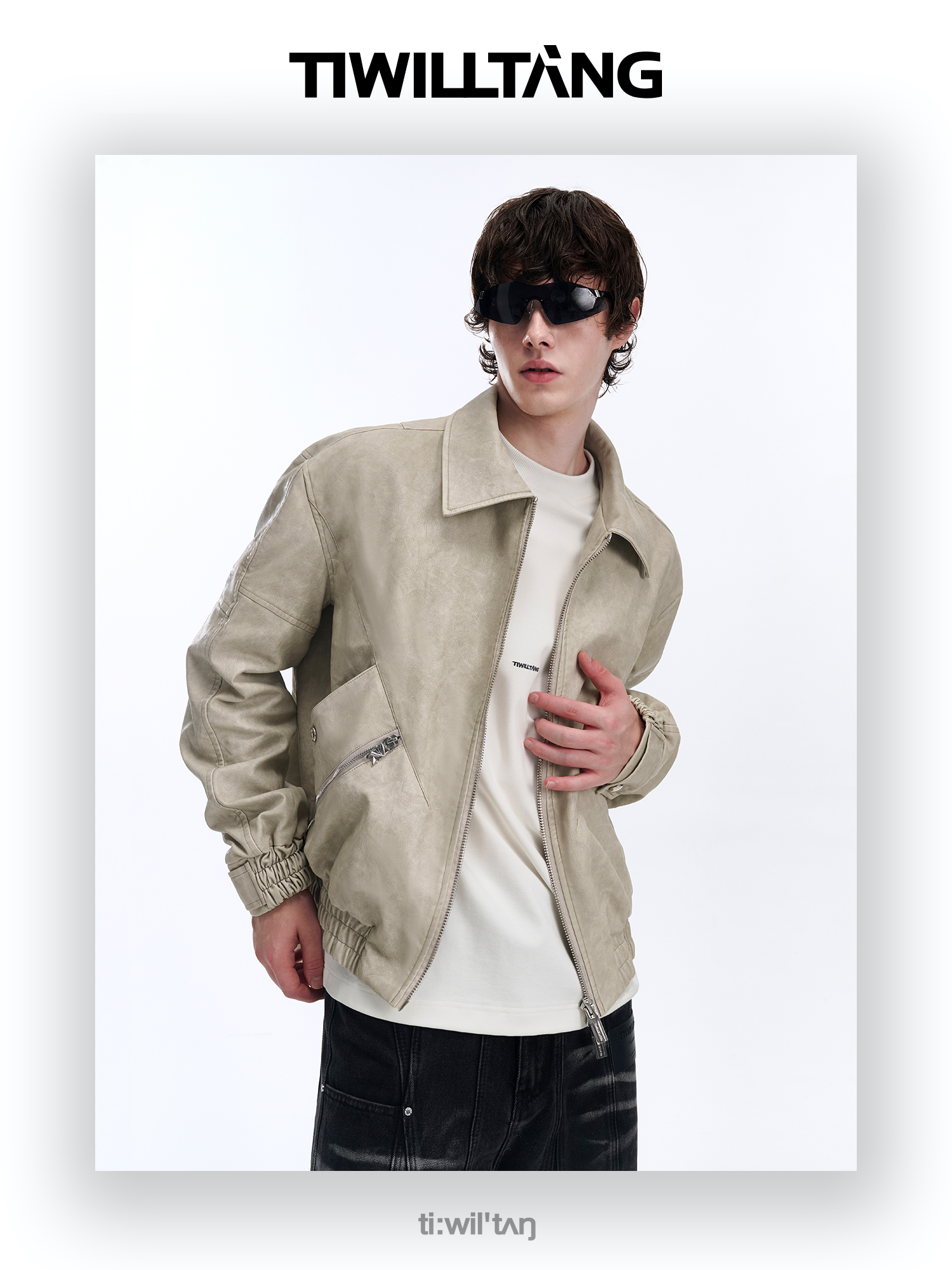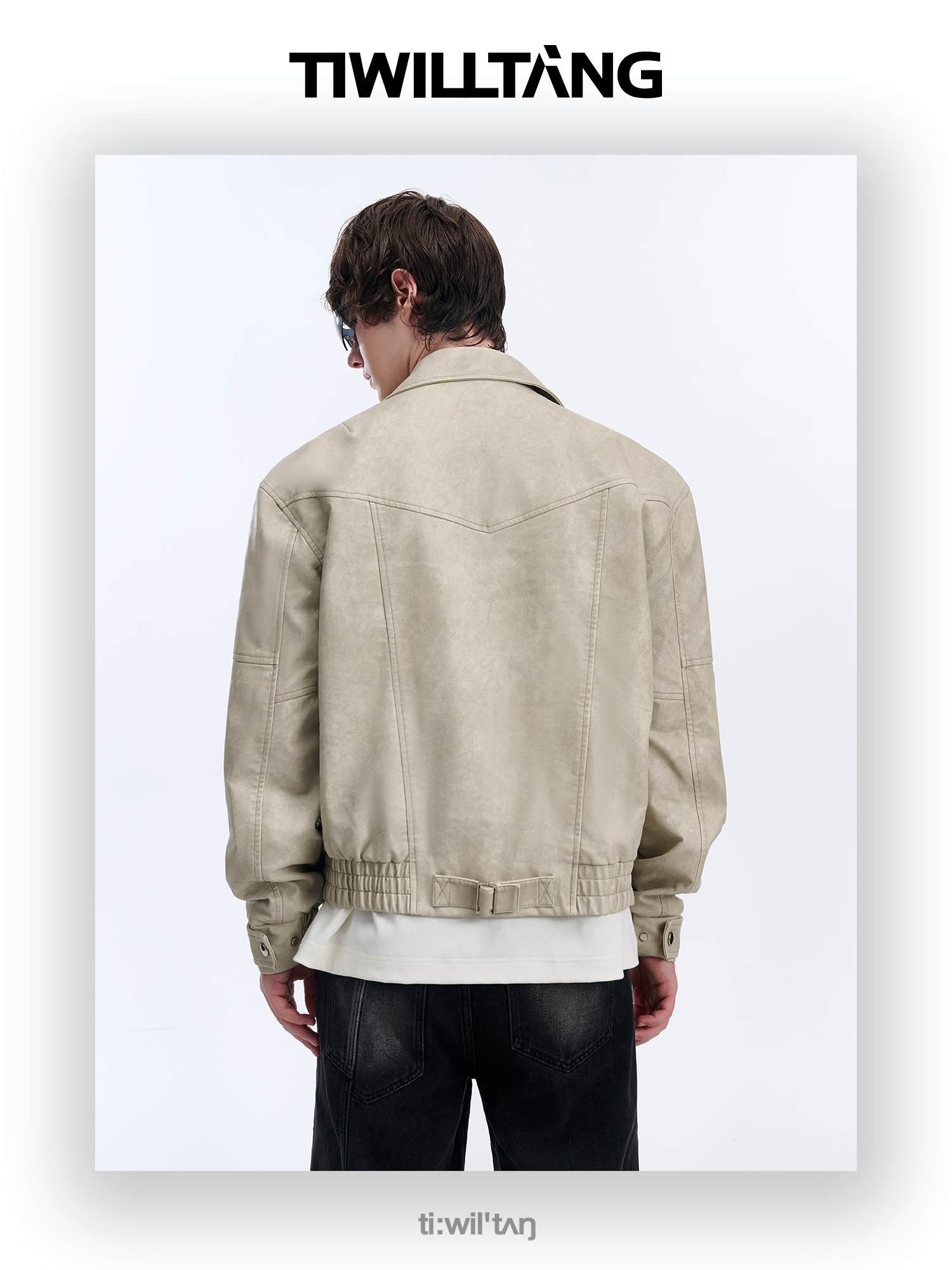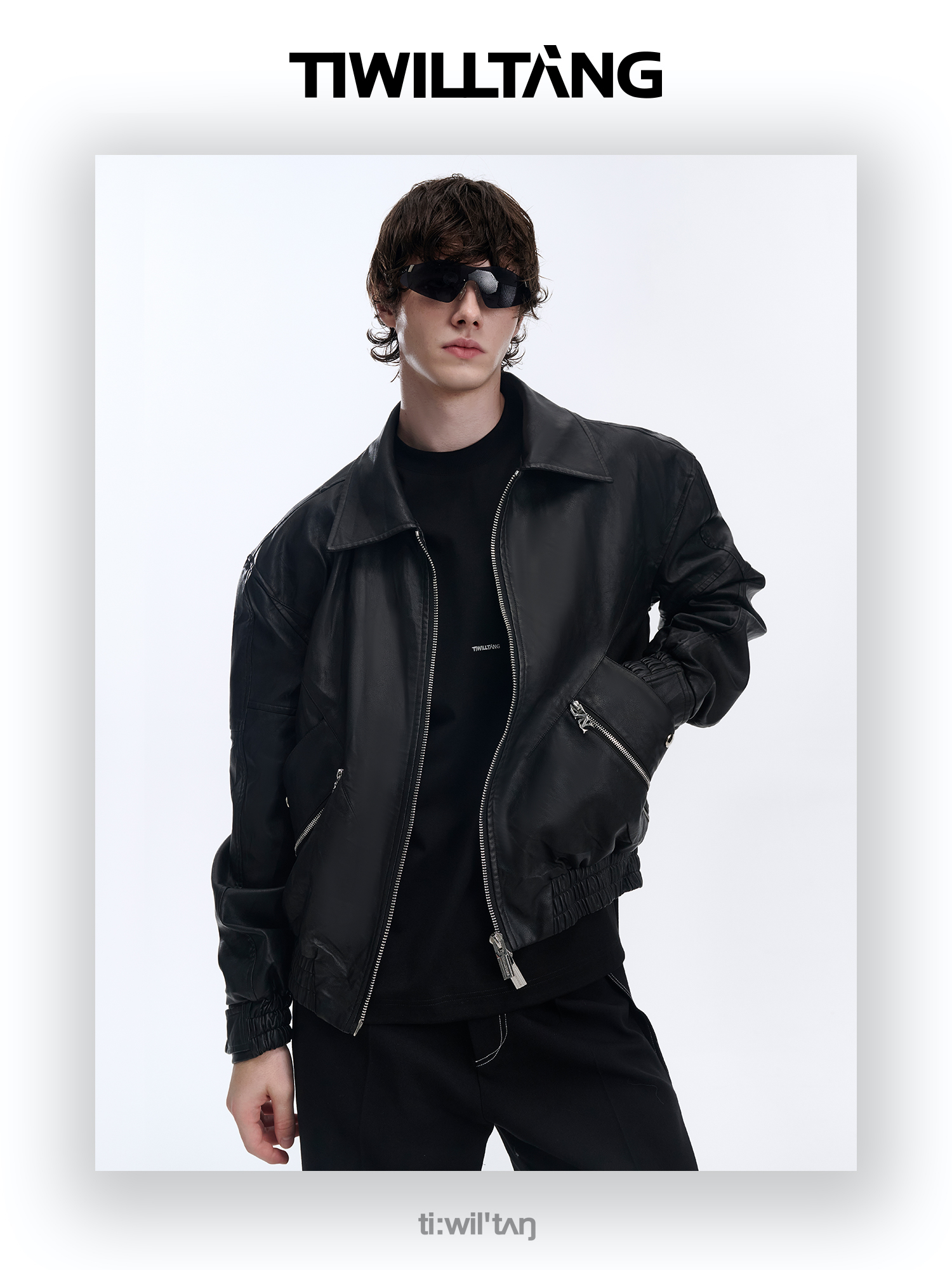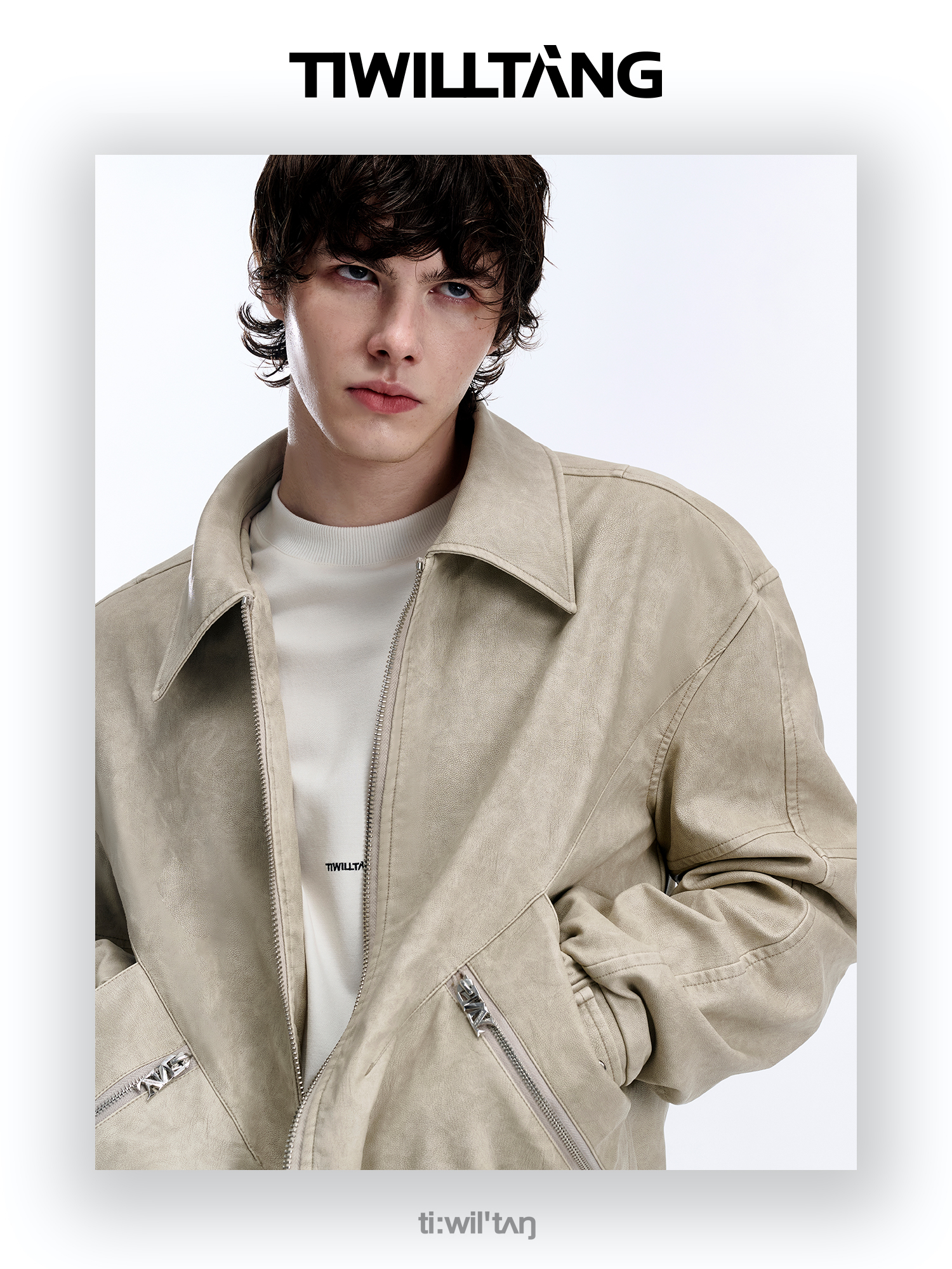 TIWILLTANG启世录“渐褪痕构”双口袋皮夹克