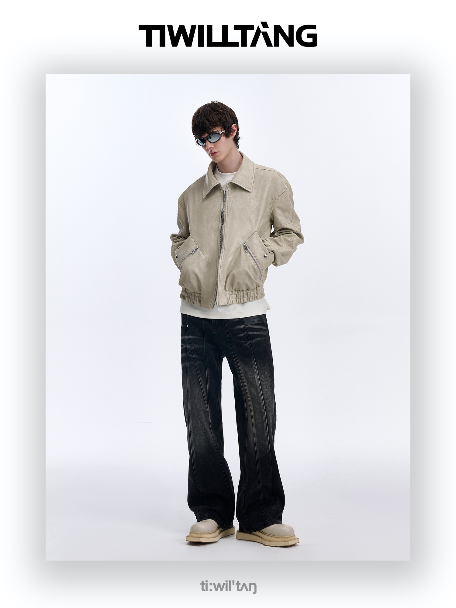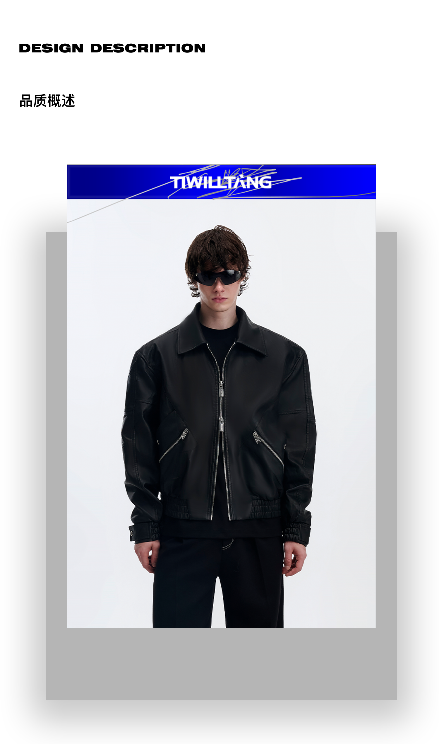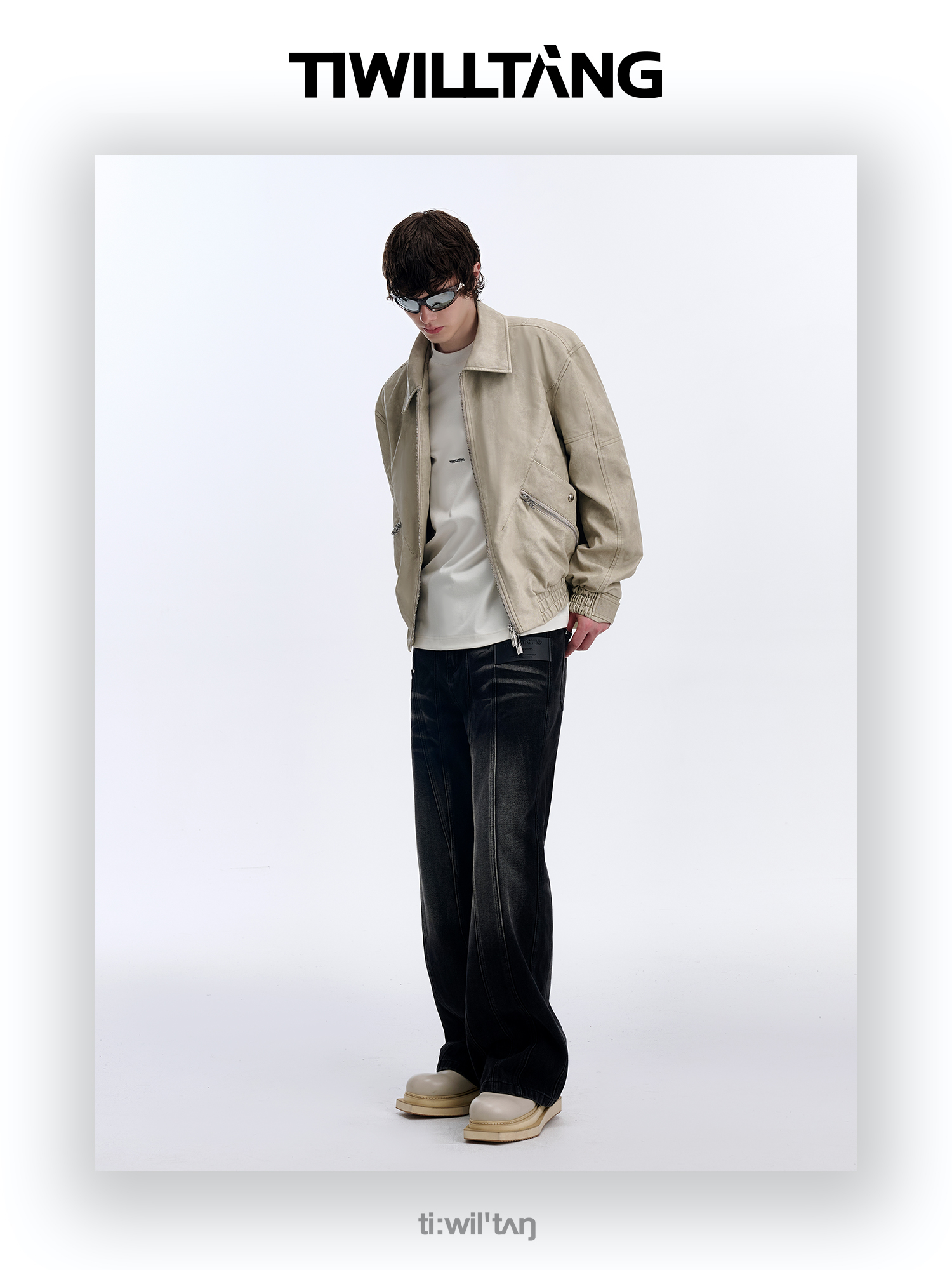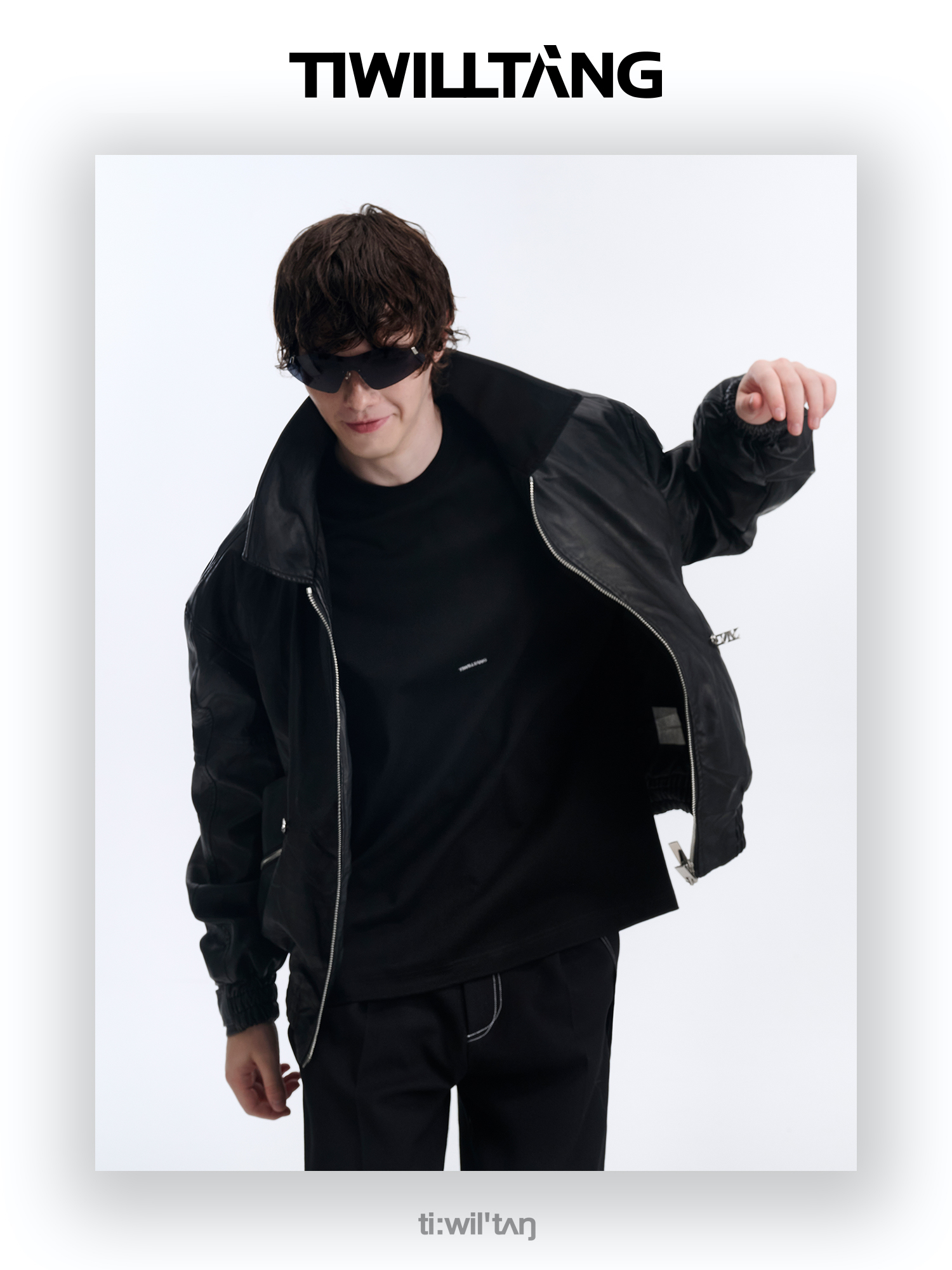 TIWILLTANG启世录“渐褪痕构”双口袋皮夹克