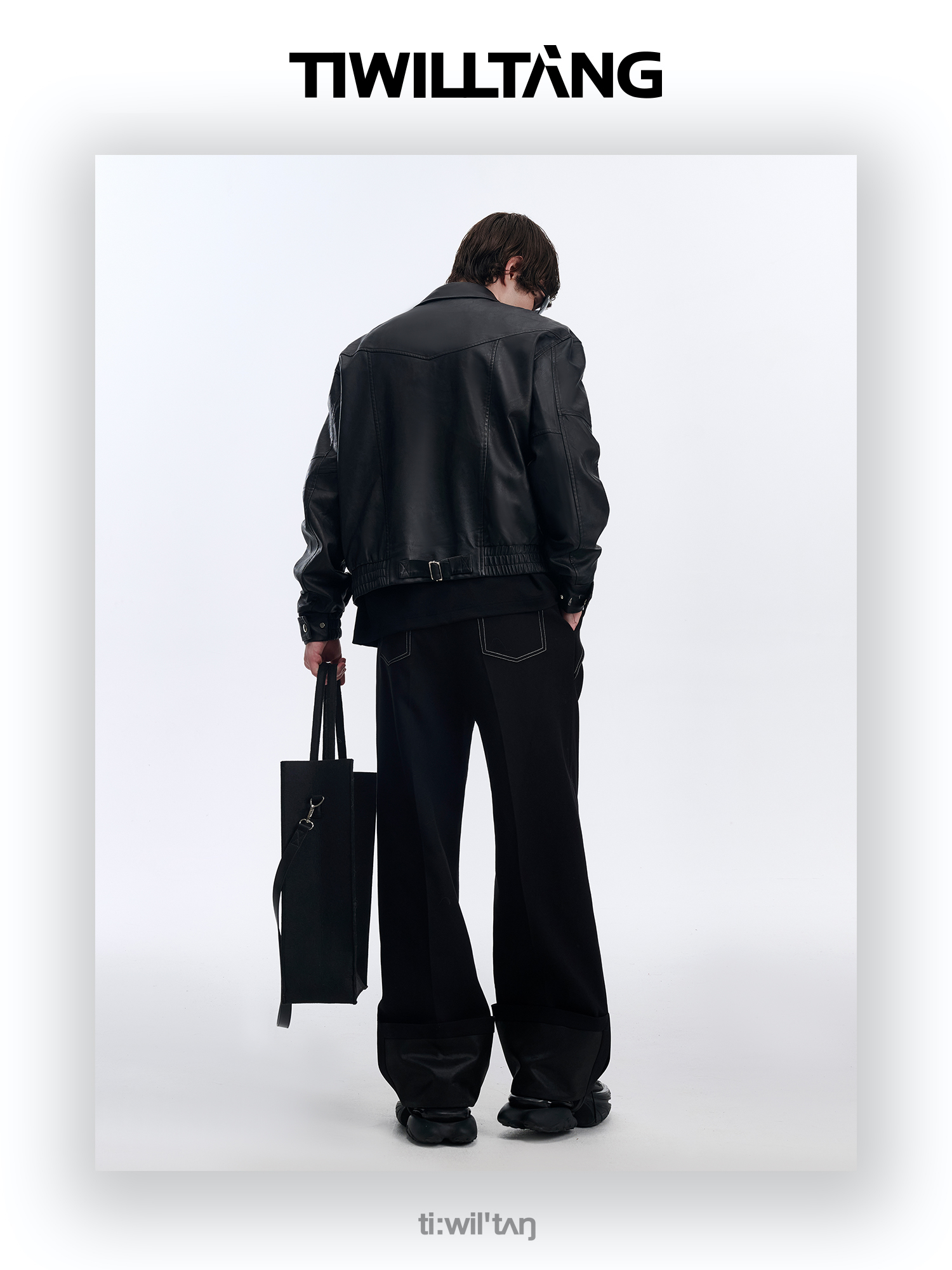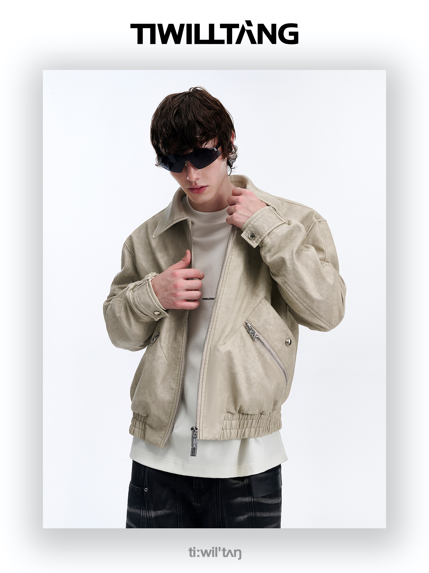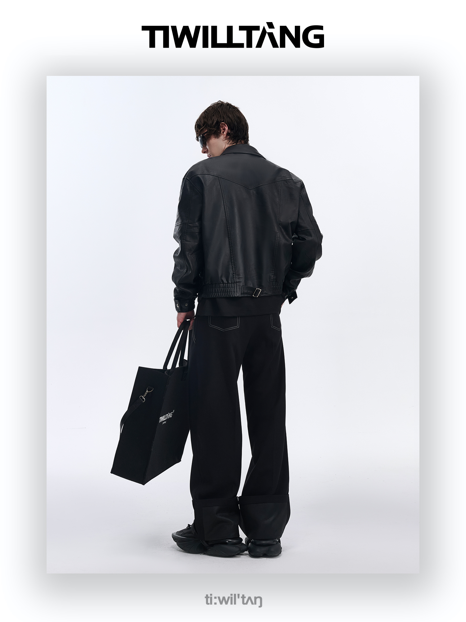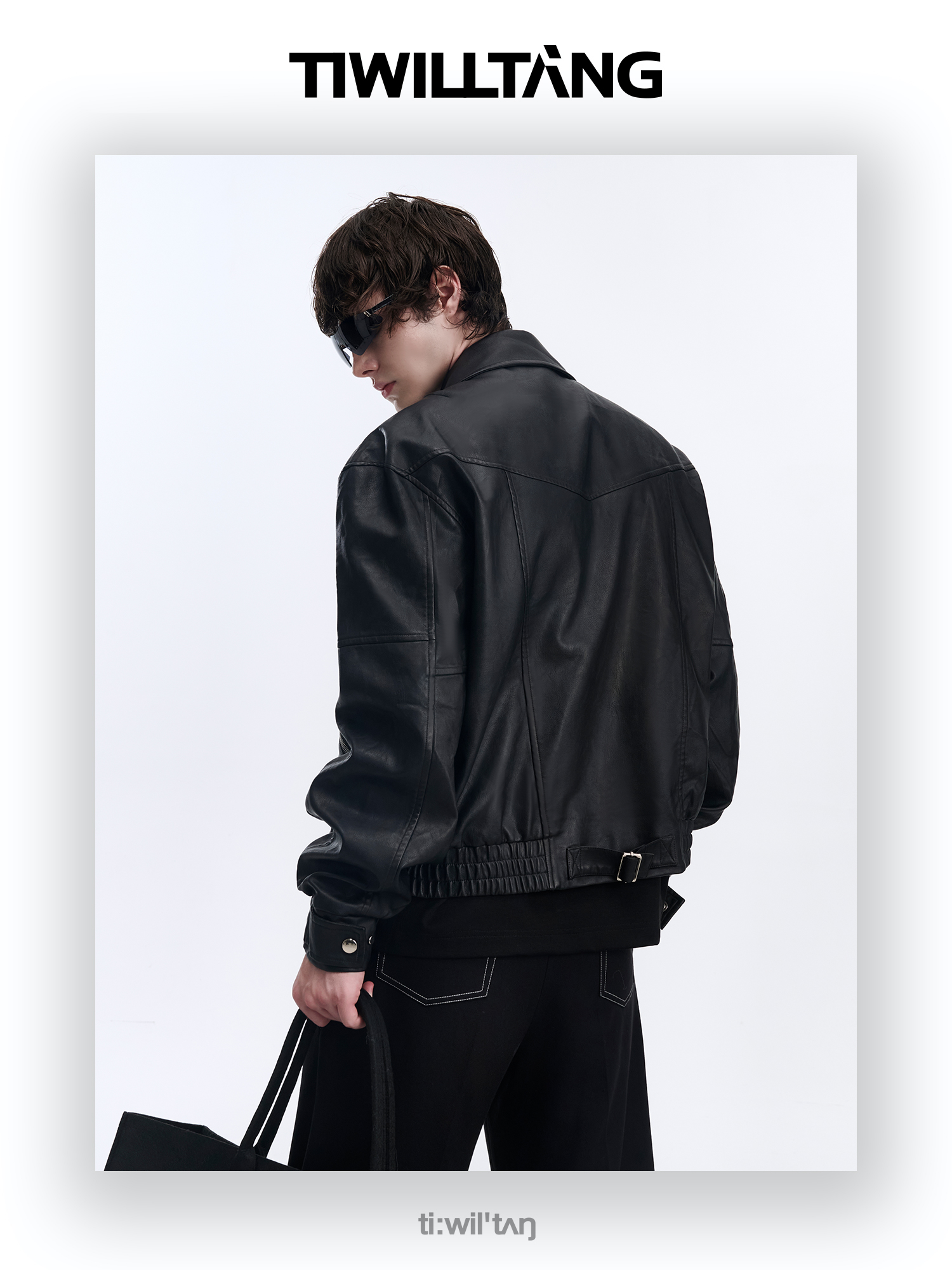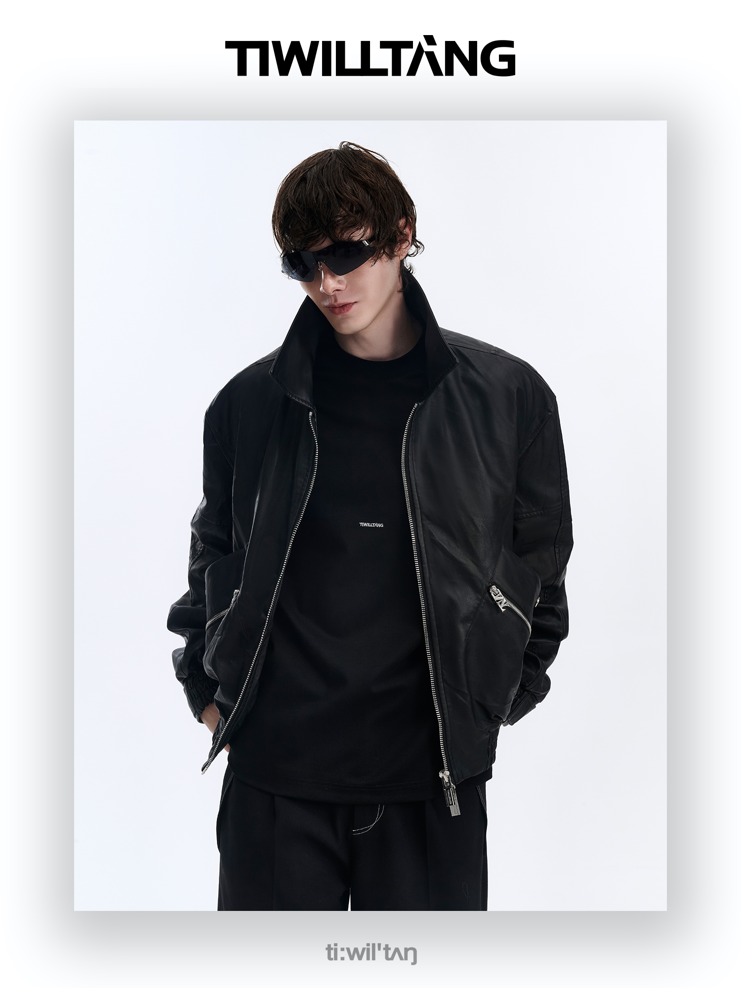 TIWILLTANG启世录“渐褪痕构”双口袋皮夹克