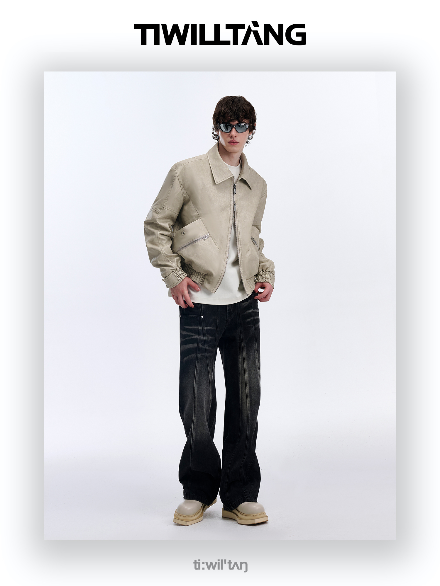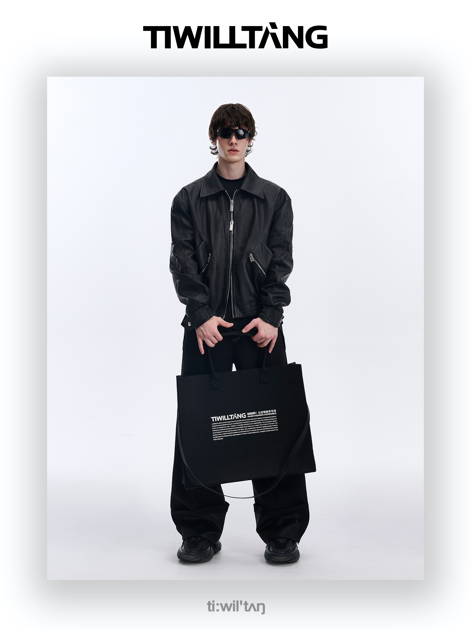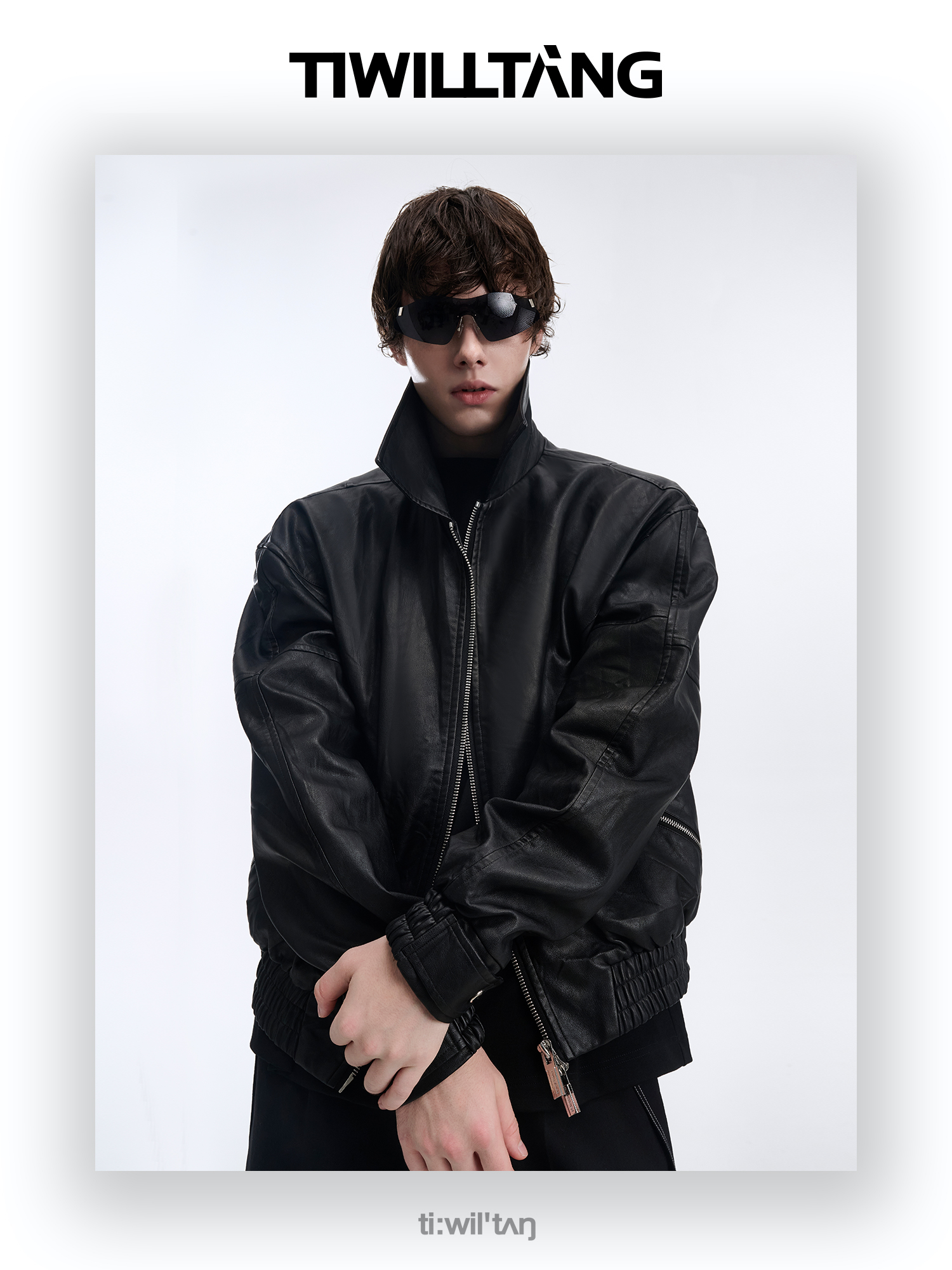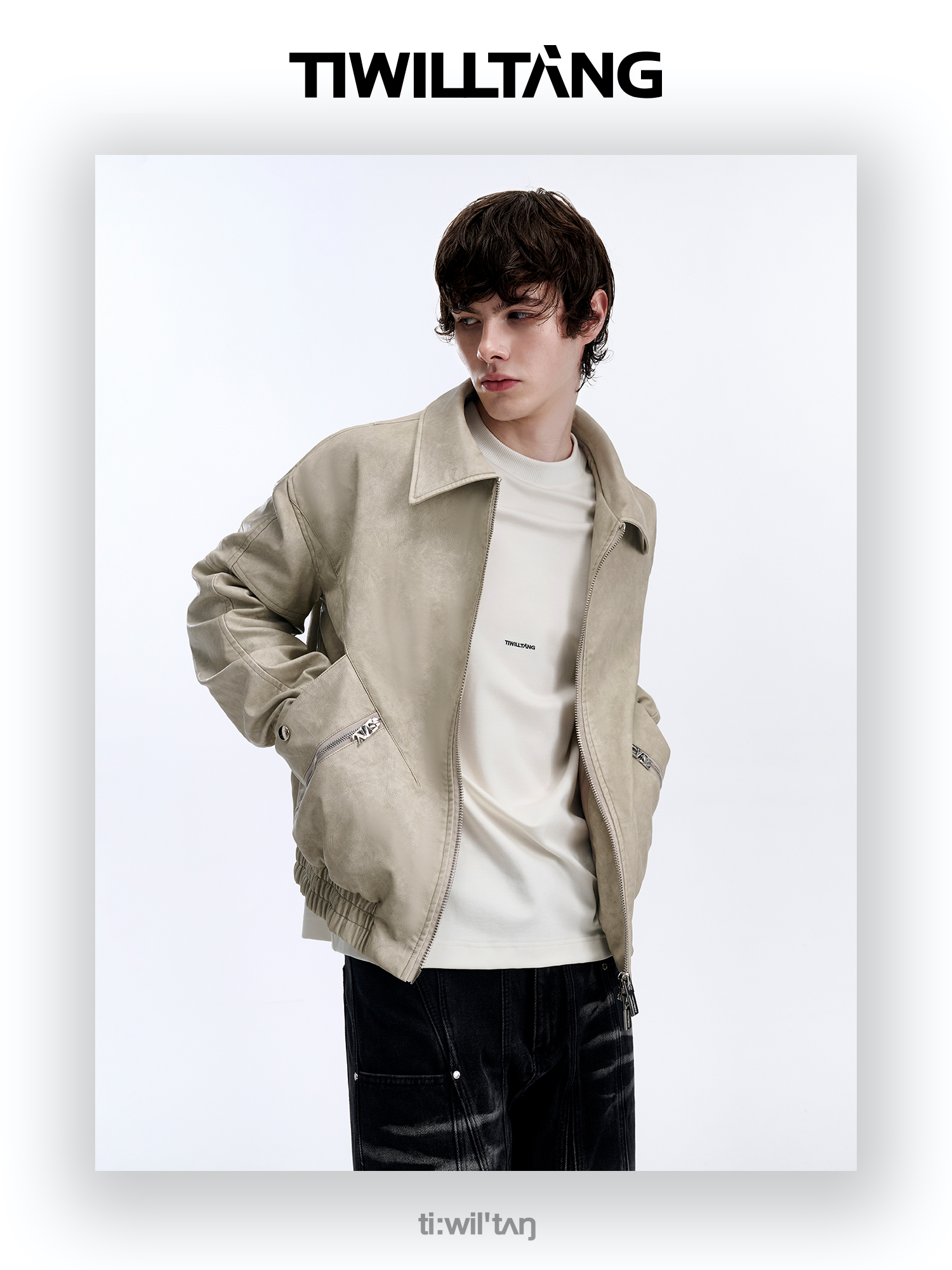TIWILLTANG启世录“渐褪痕构”双口袋皮夹克