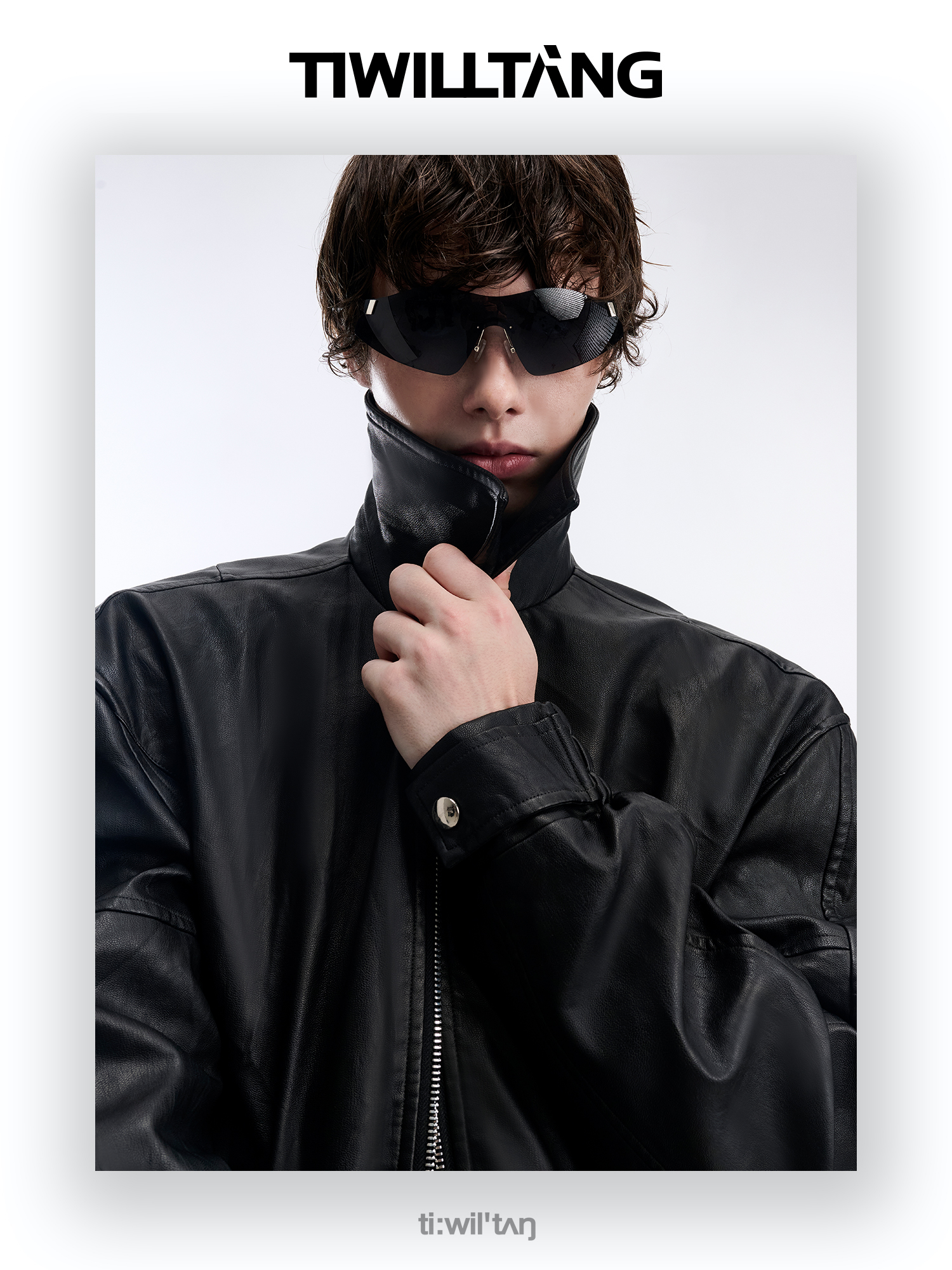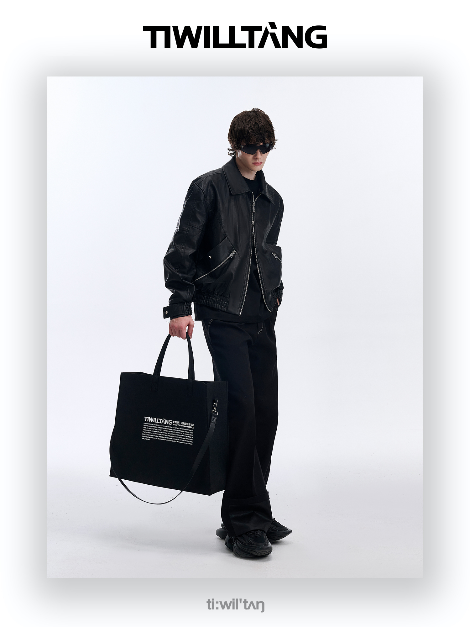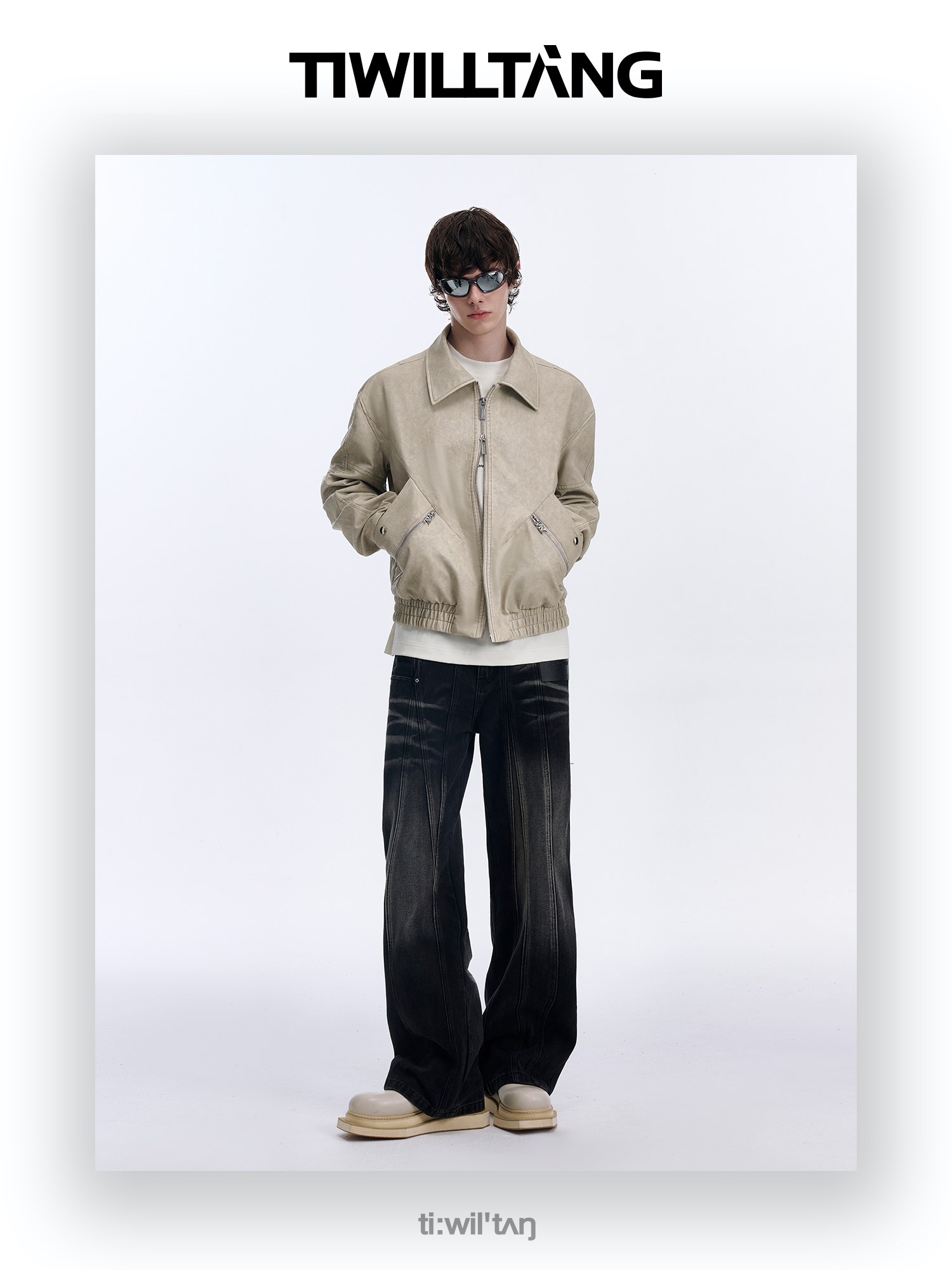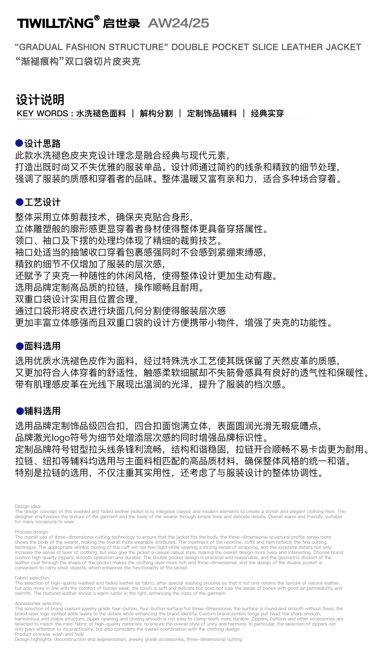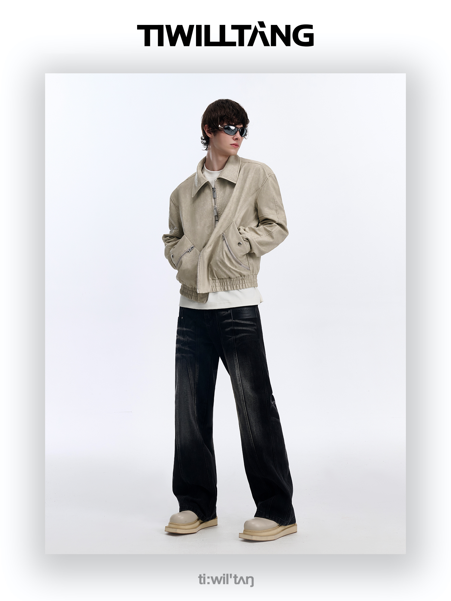 TIWILLTANG启世录“渐褪痕构”双口袋皮夹克