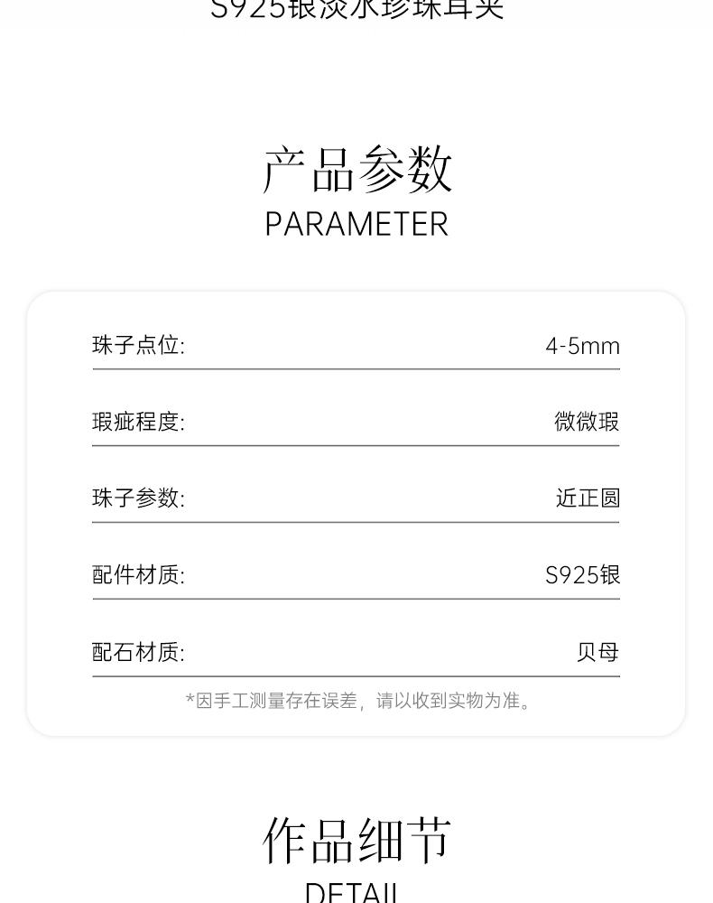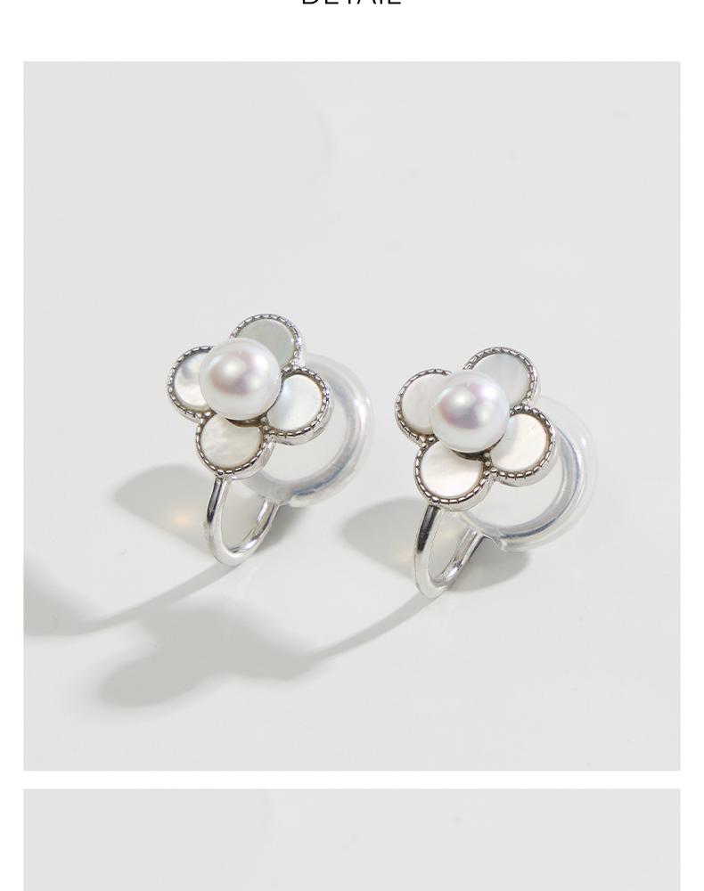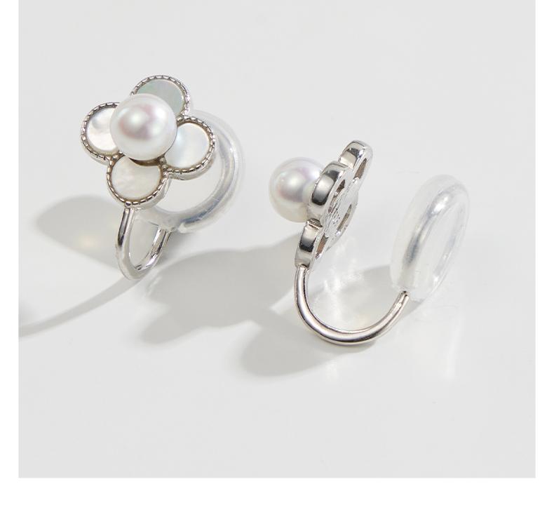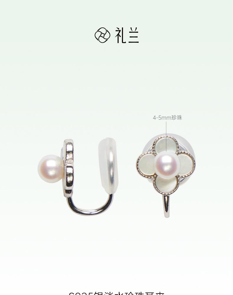 礼兰 S925银花朵淡水珍珠耳夹4.5-5mm