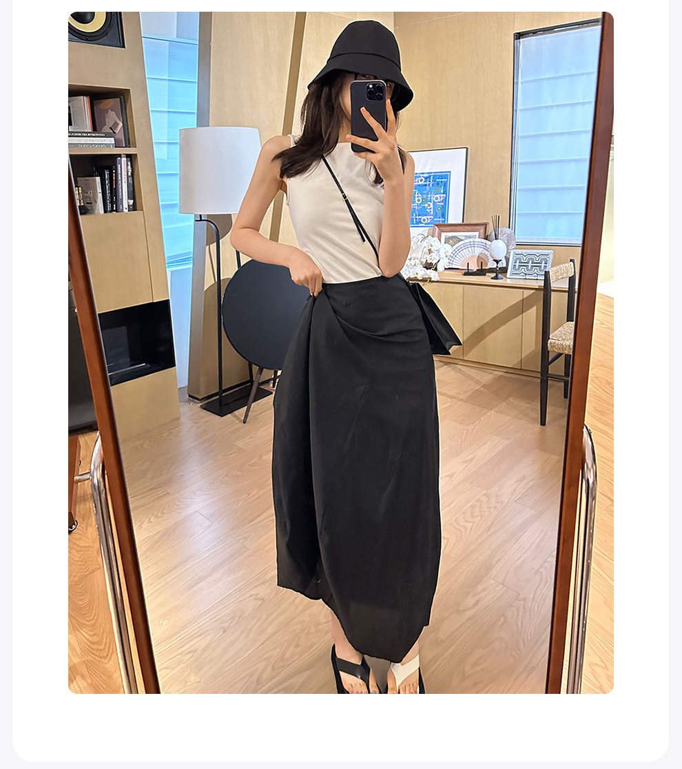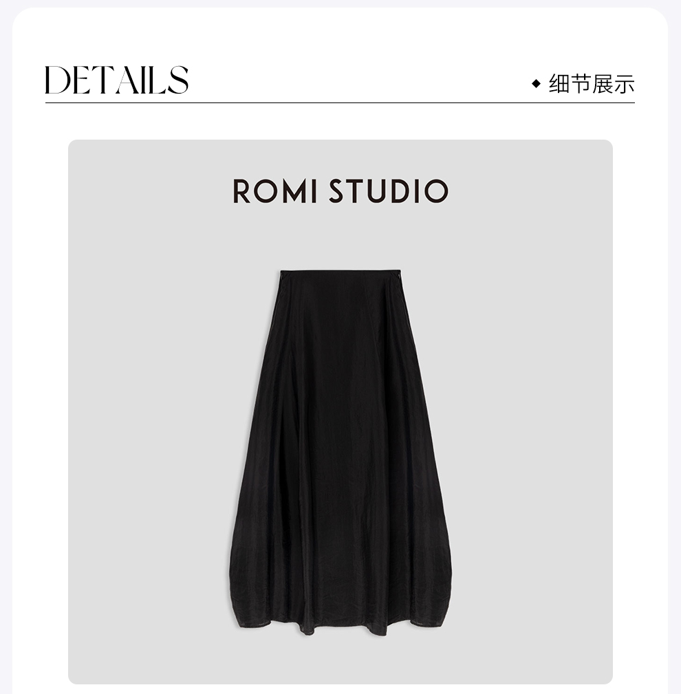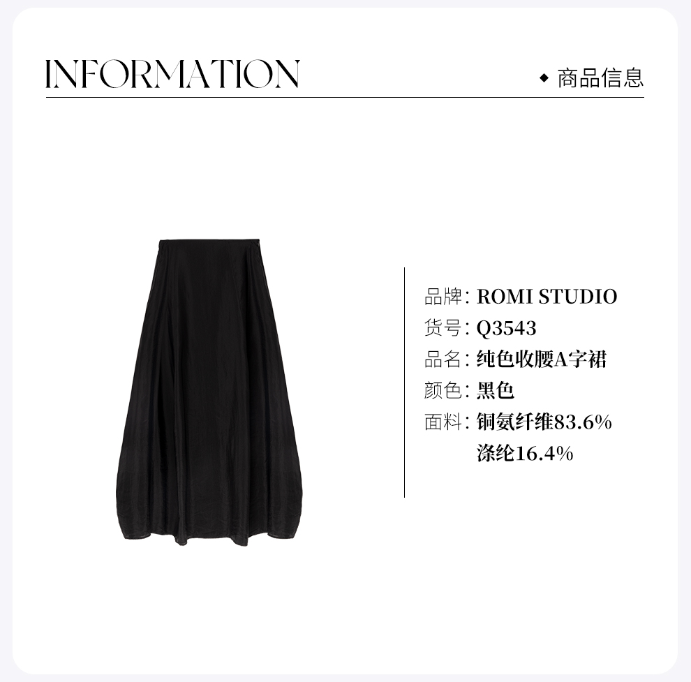 ROMI STUDIO“法式优雅” 复古简约高腰修身茧型鱼尾黑色半裙 Q3543