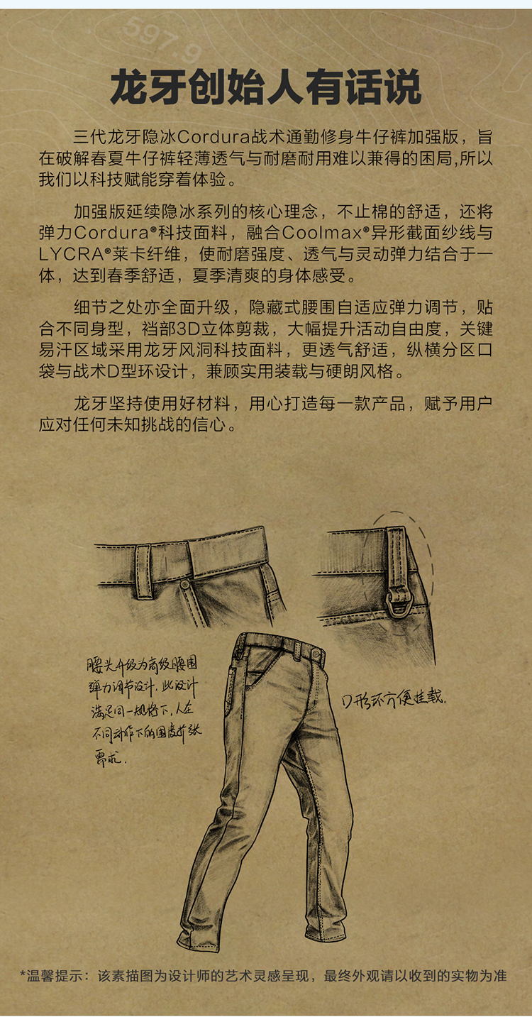 【老客专享】三代龙牙隐冰cordura战术通勤修身牛仔裤加强版