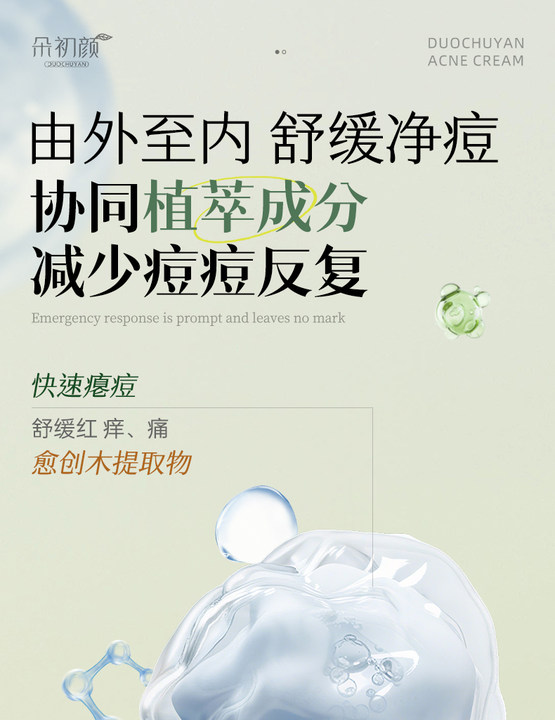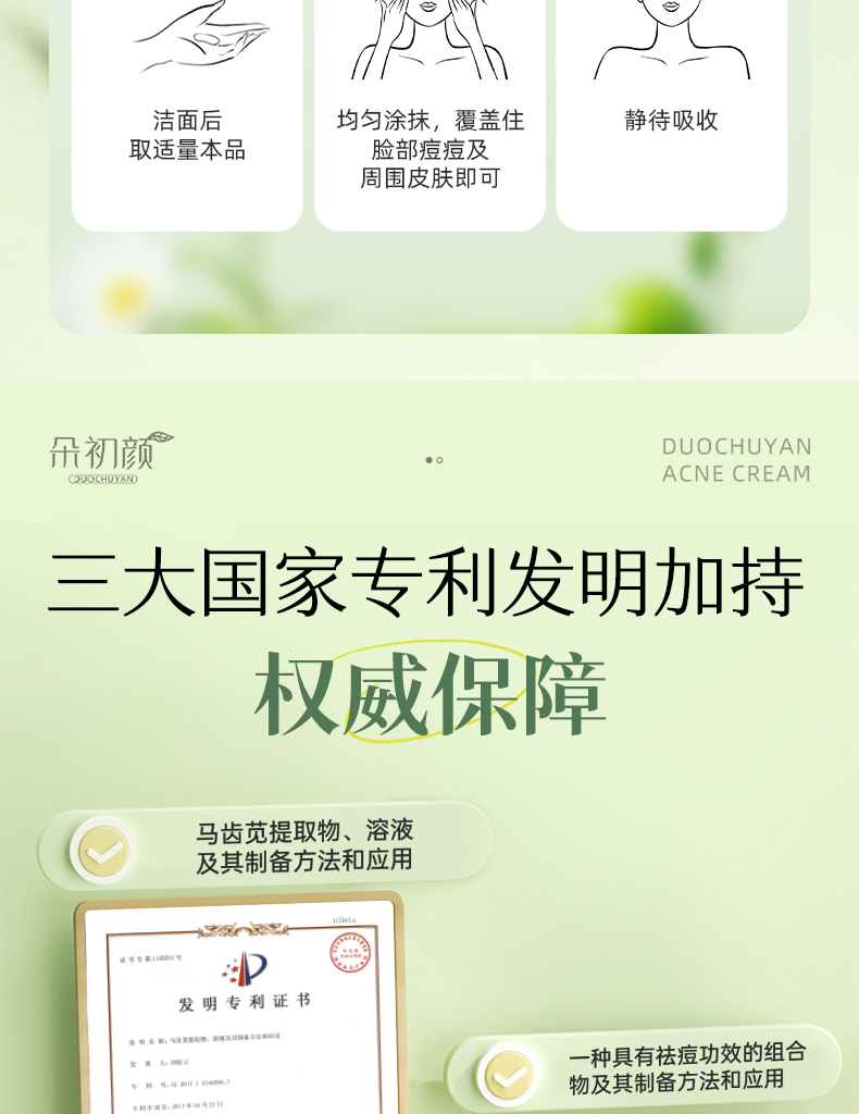 朵初颜祛痘膏 痘坑舒缓淡化消红去痘印净白嫩白去痘膏