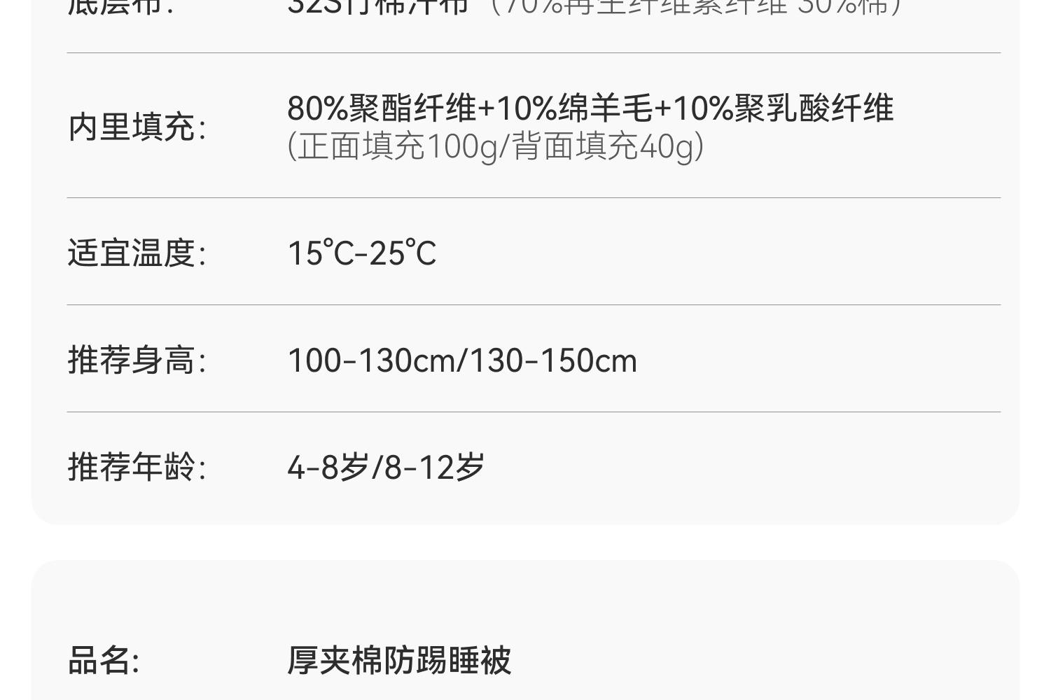 Domiamia儿童恒温睡被秋冬款宝宝被子防踢被中大童睡袋