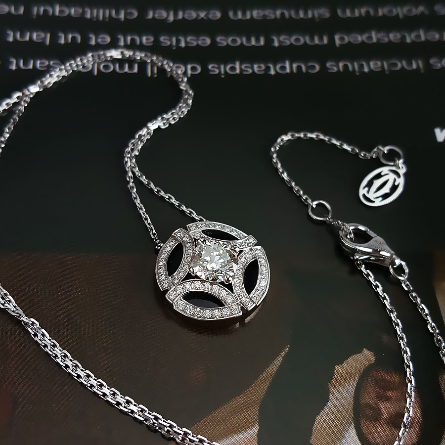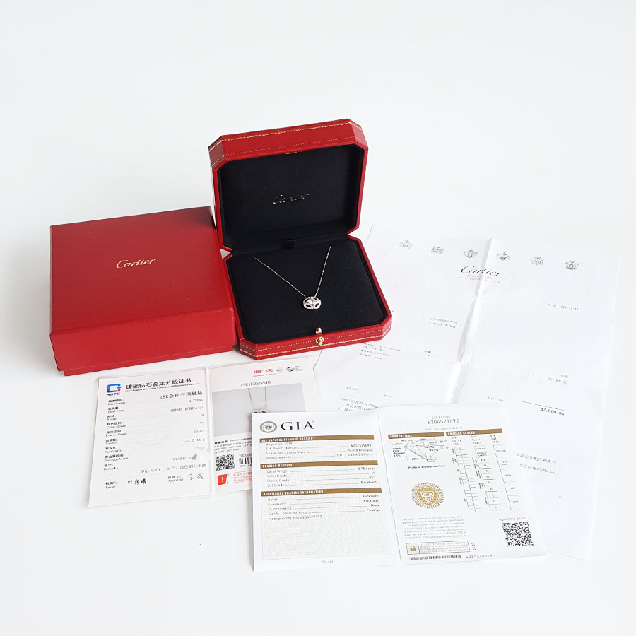 【95新】Cartier卡地亚Galanterie de Cartier系列N742421518K白金满钻Galanterie项链女士现售价:32700!100725AK02