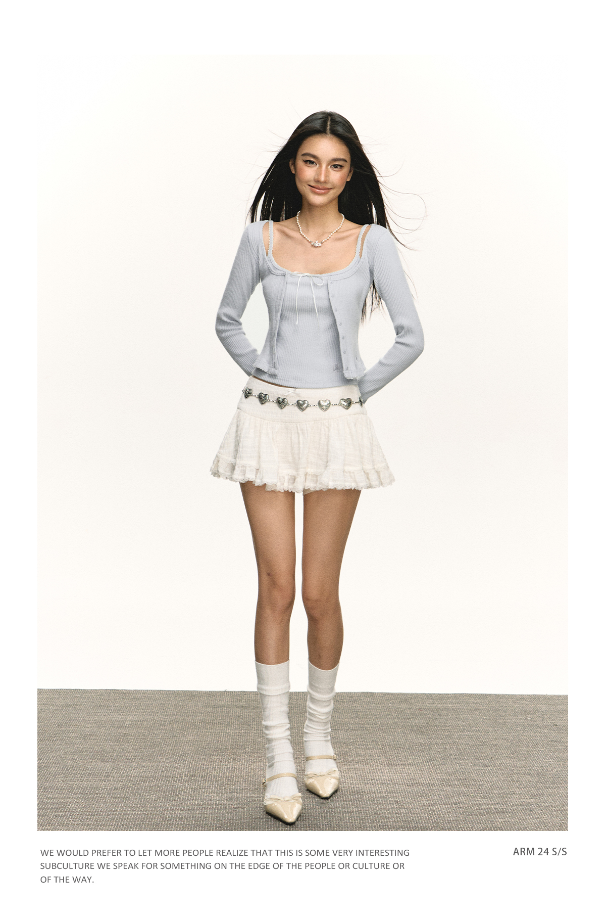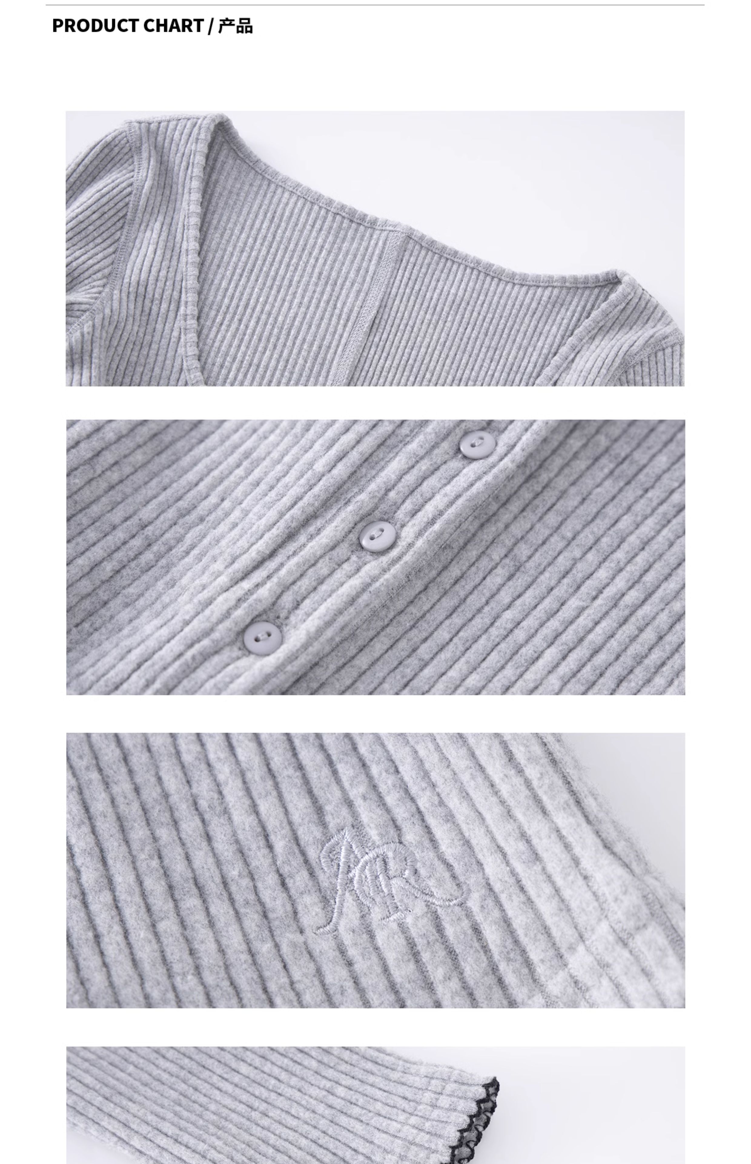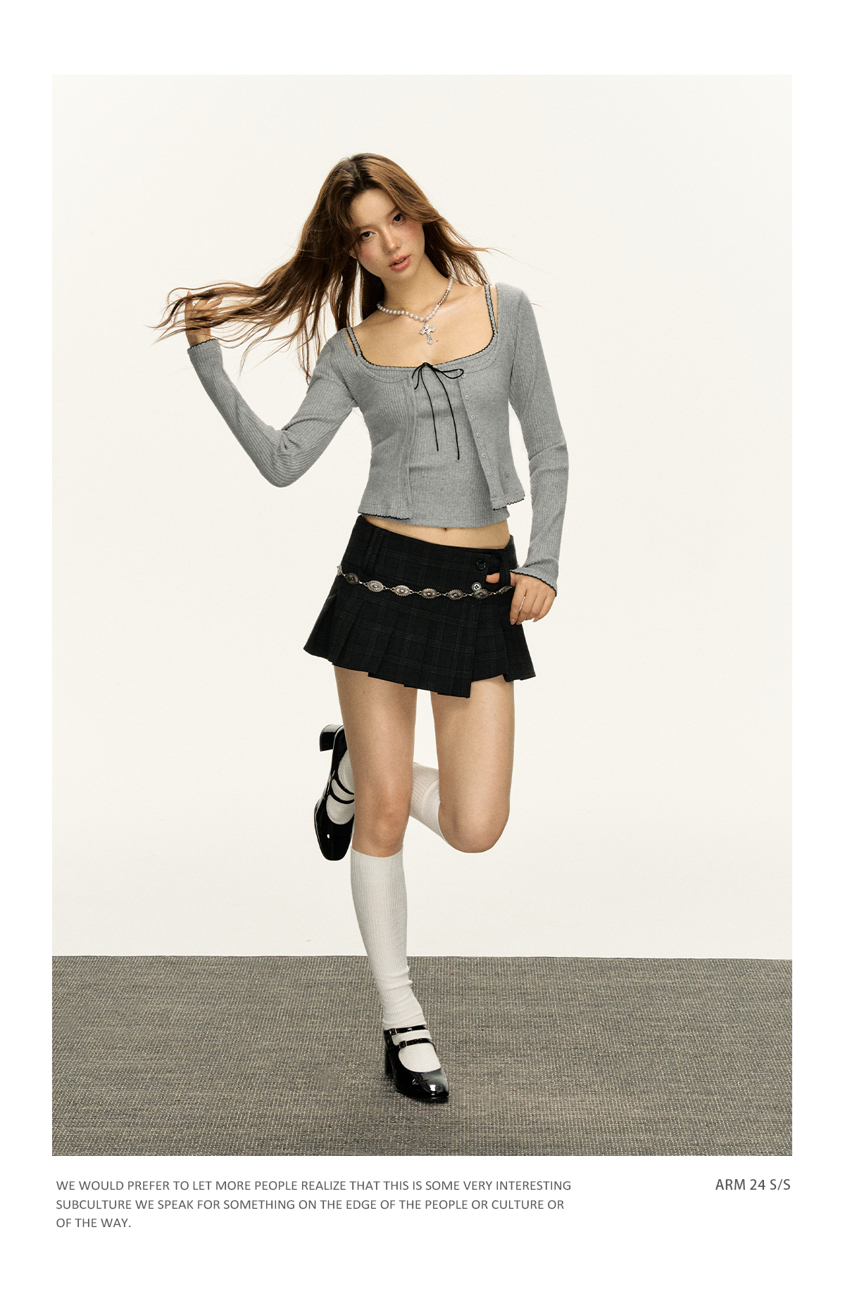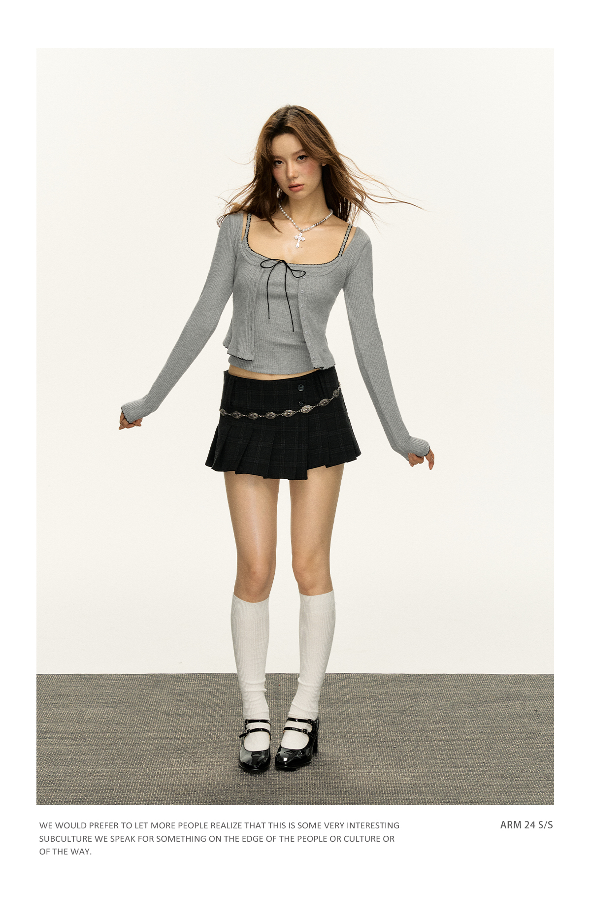Ariseism 美式复古坑条吊带长袖针织开衫套装女春季新款两件套