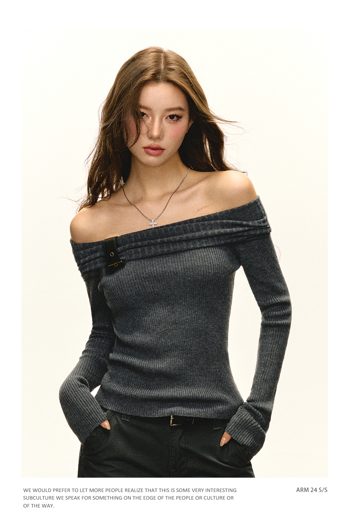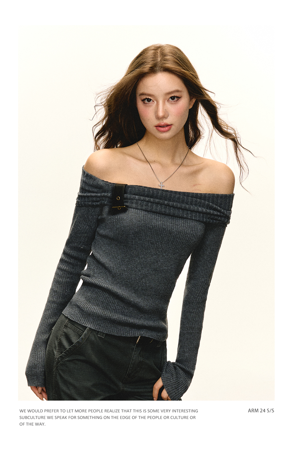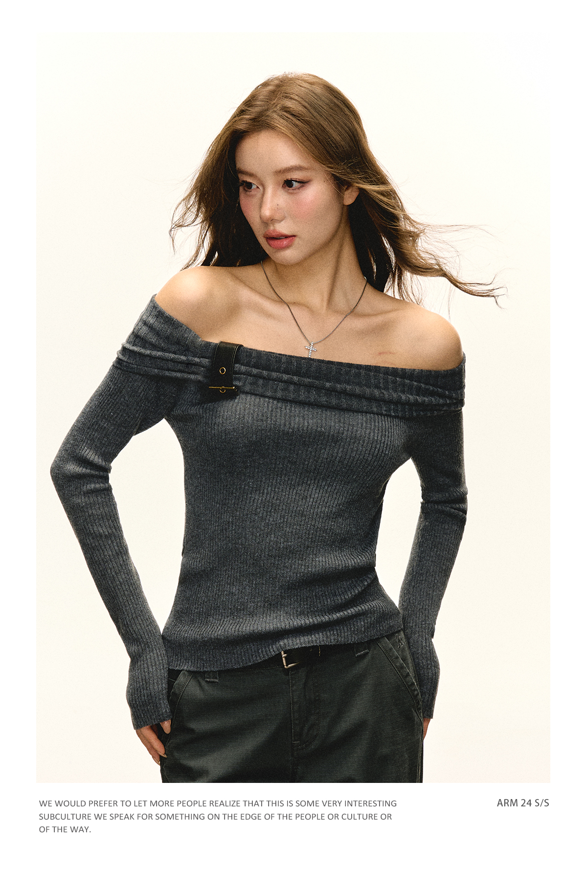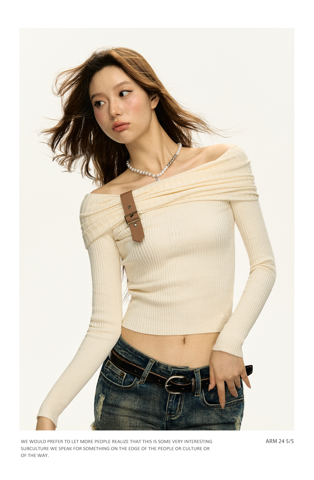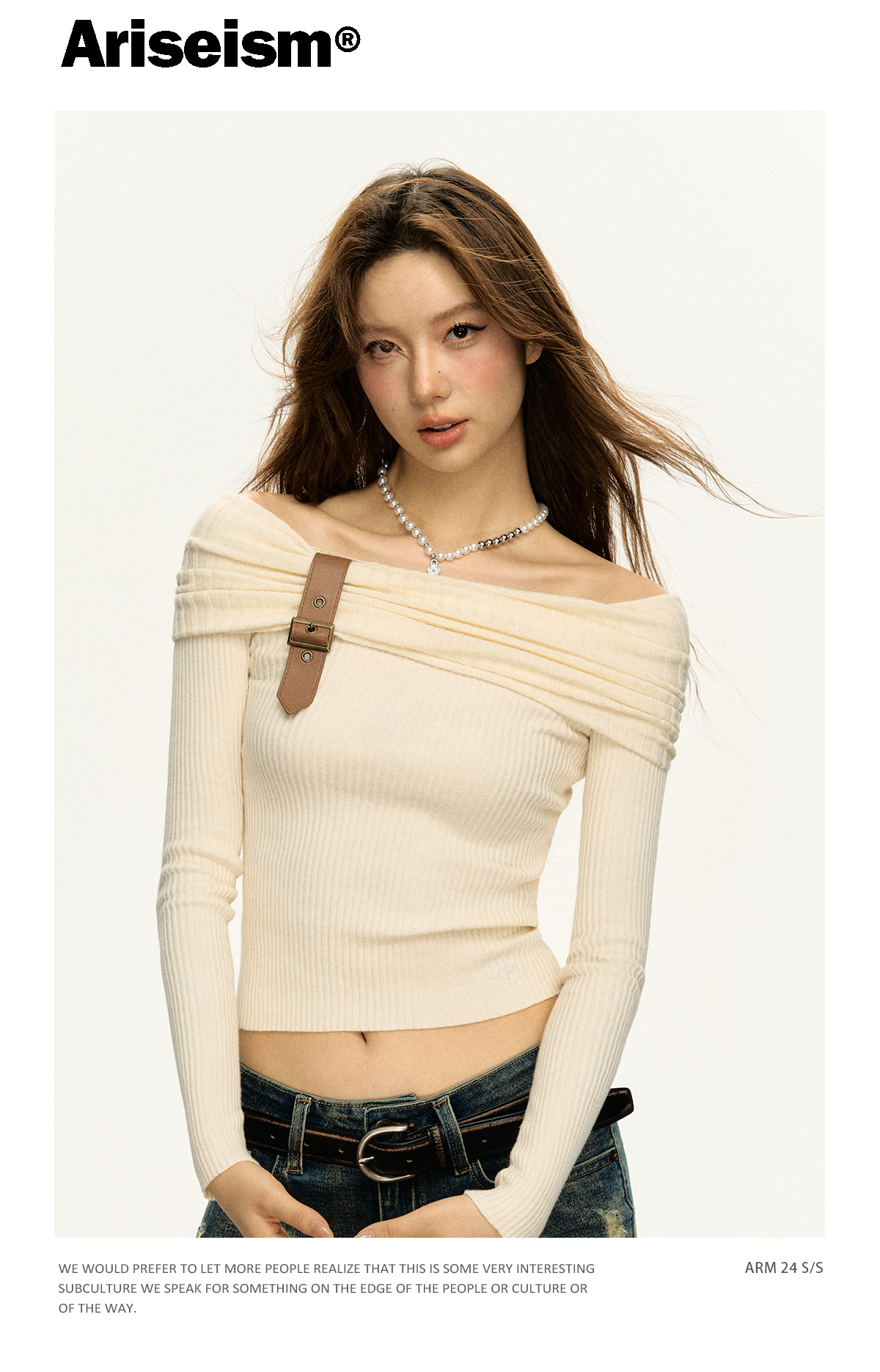 Ariseism 美式复古一字肩针织上衣女2025春秋新款修身内搭打底衫
