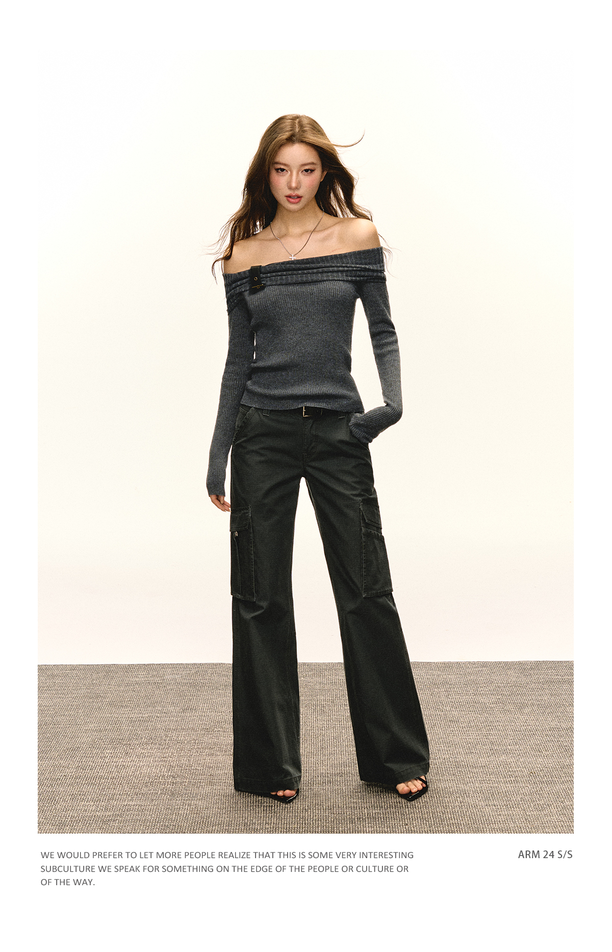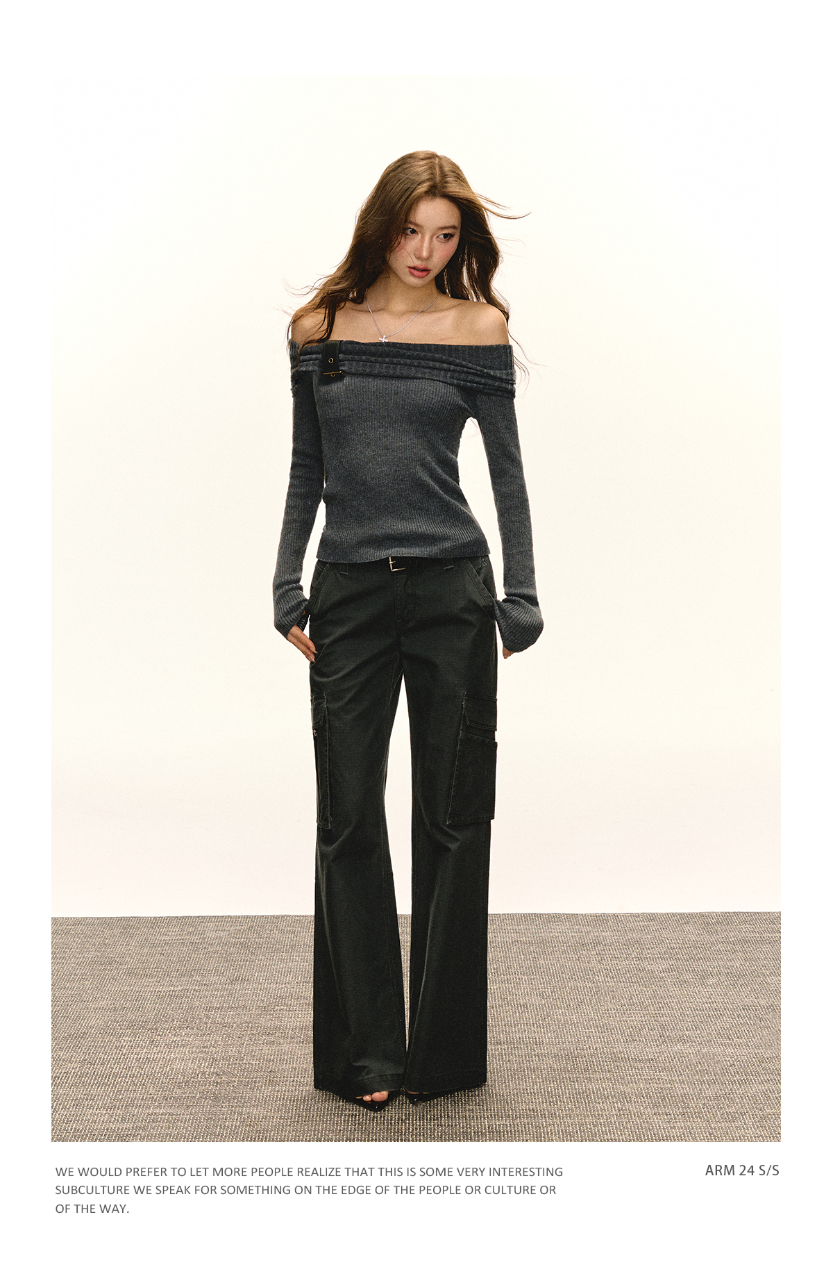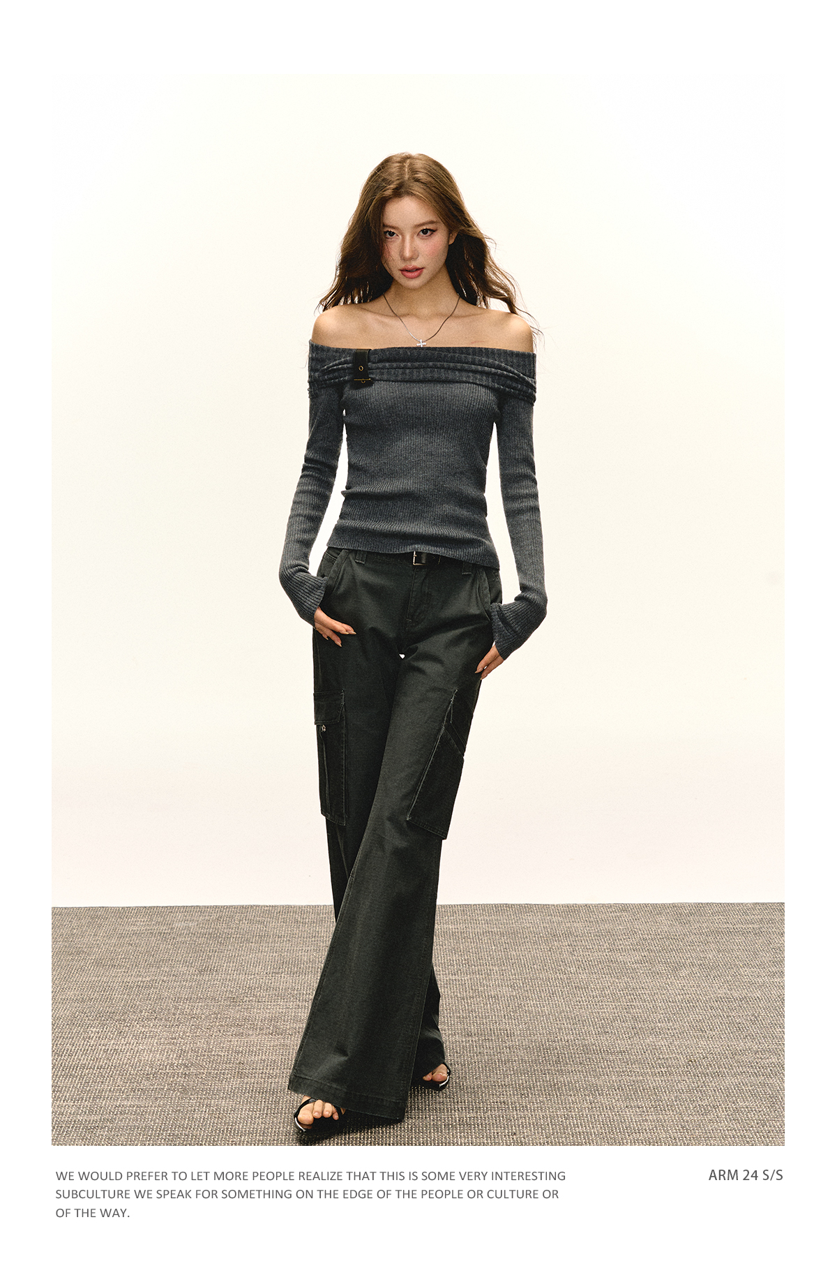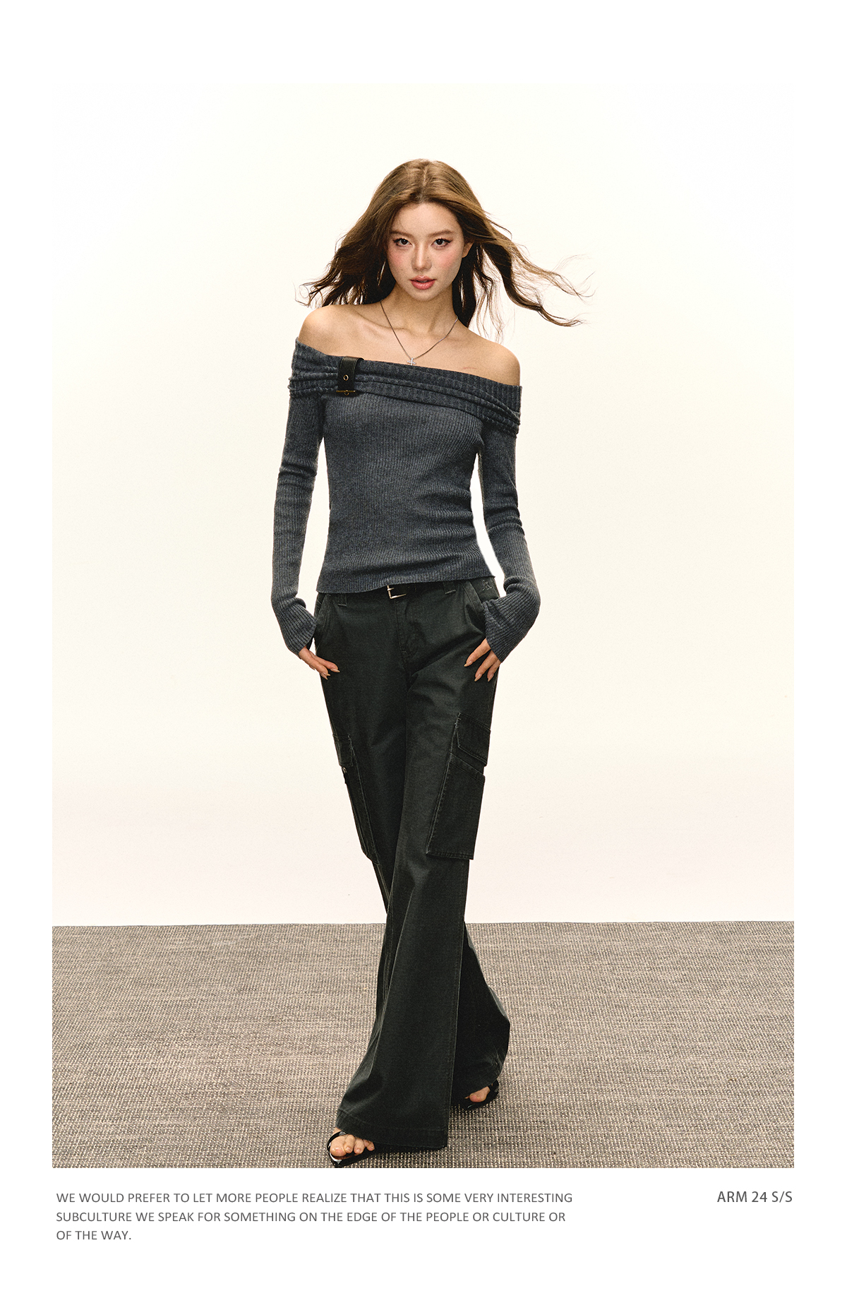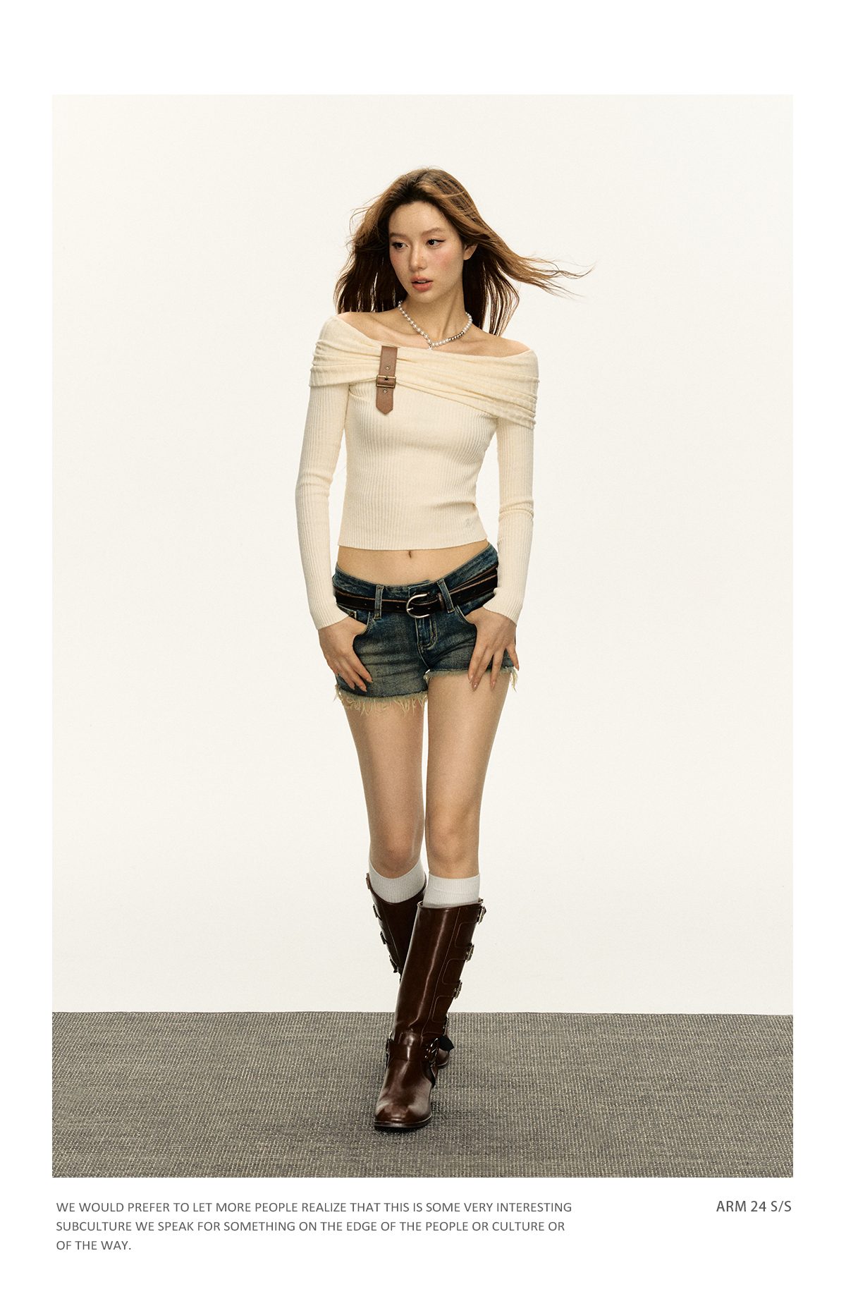 Ariseism 美式复古一字肩针织上衣女2025春秋新款修身内搭打底衫