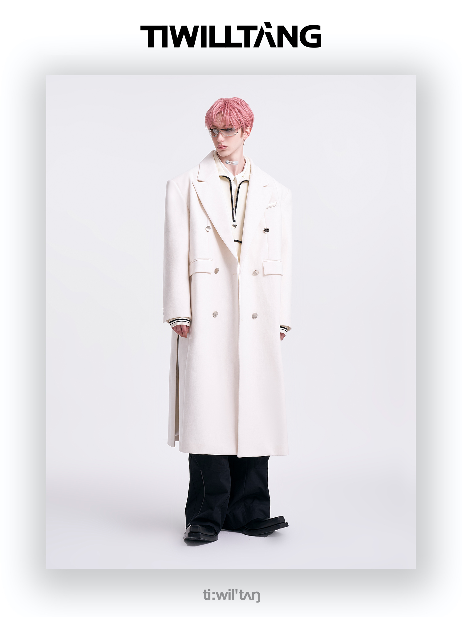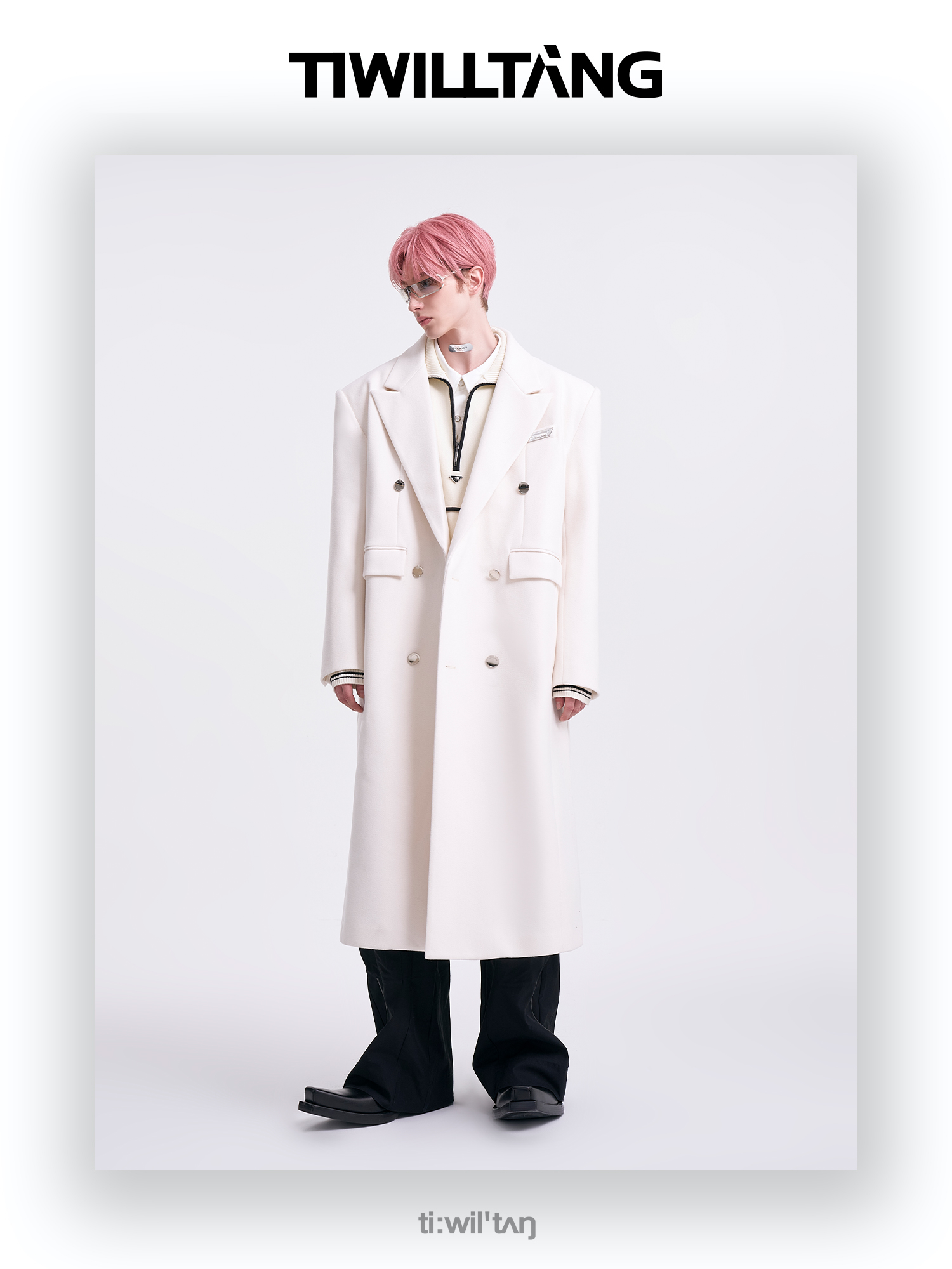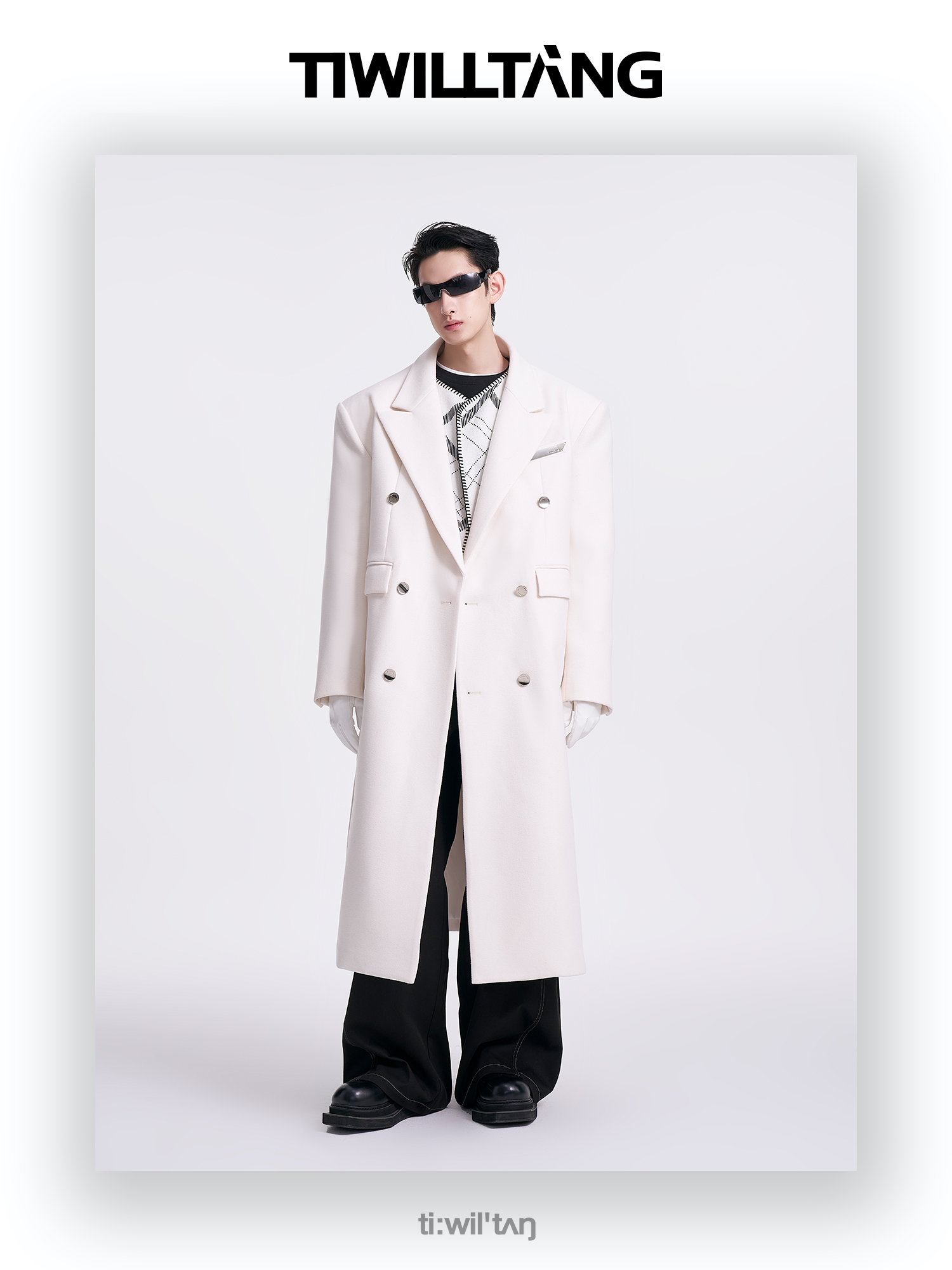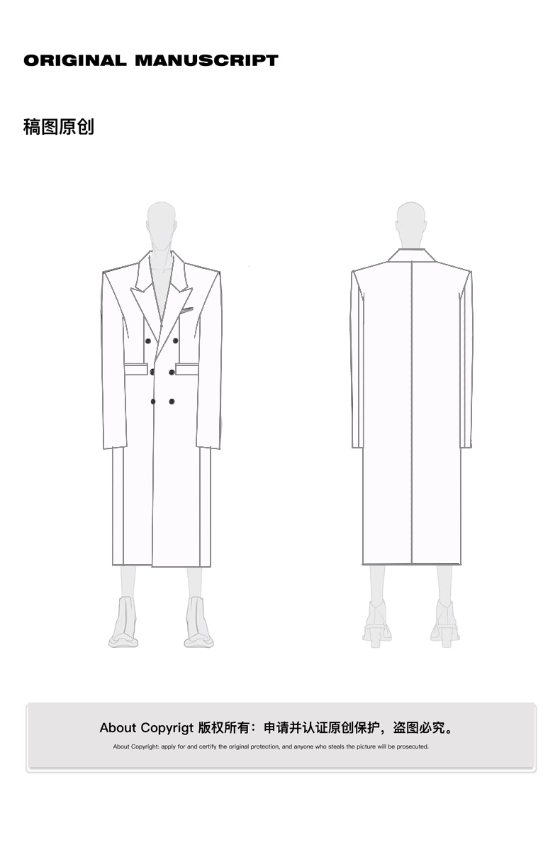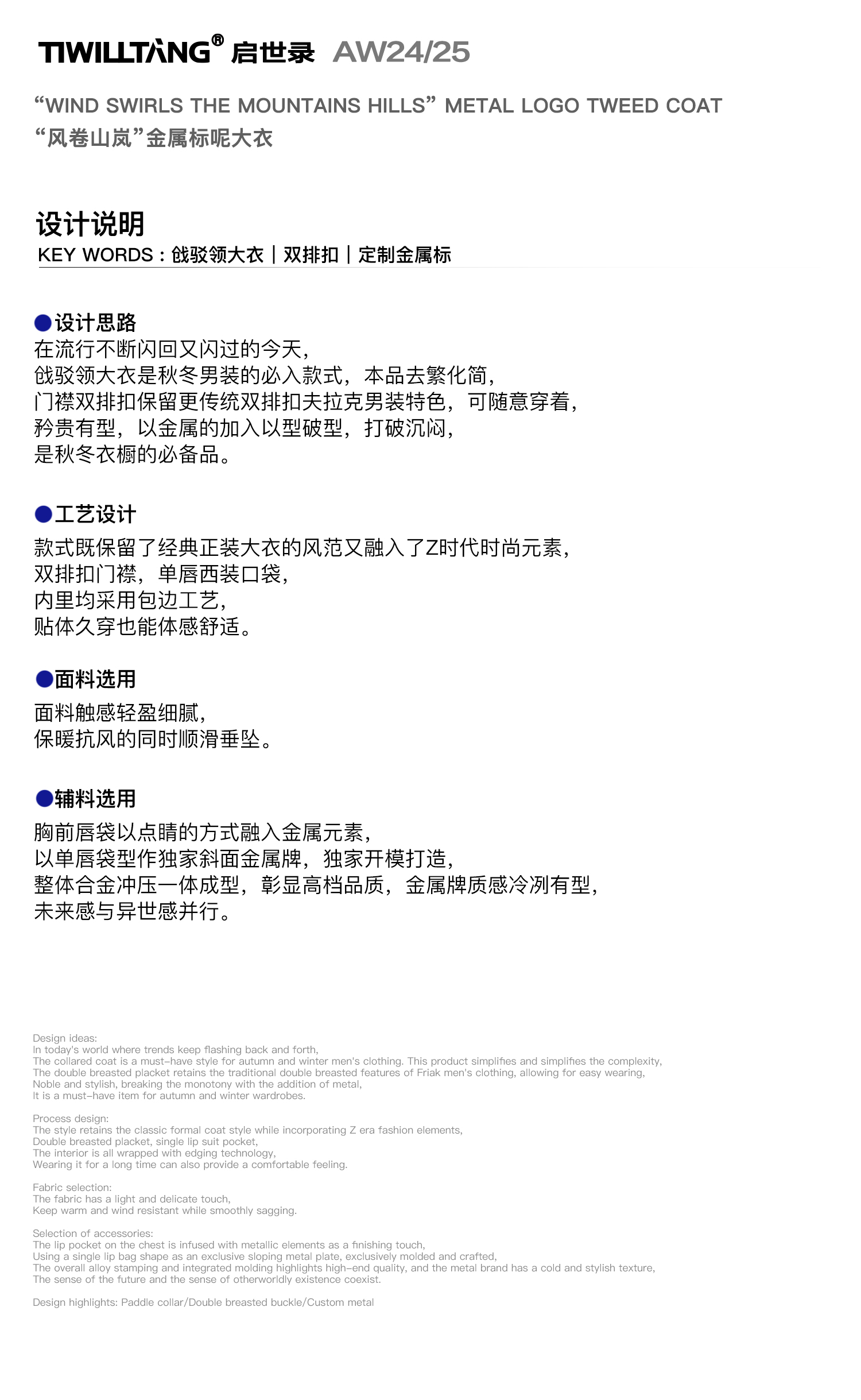 启世录TIWILLTANG"风卷山岚"双排扣定制金属标呢大衣