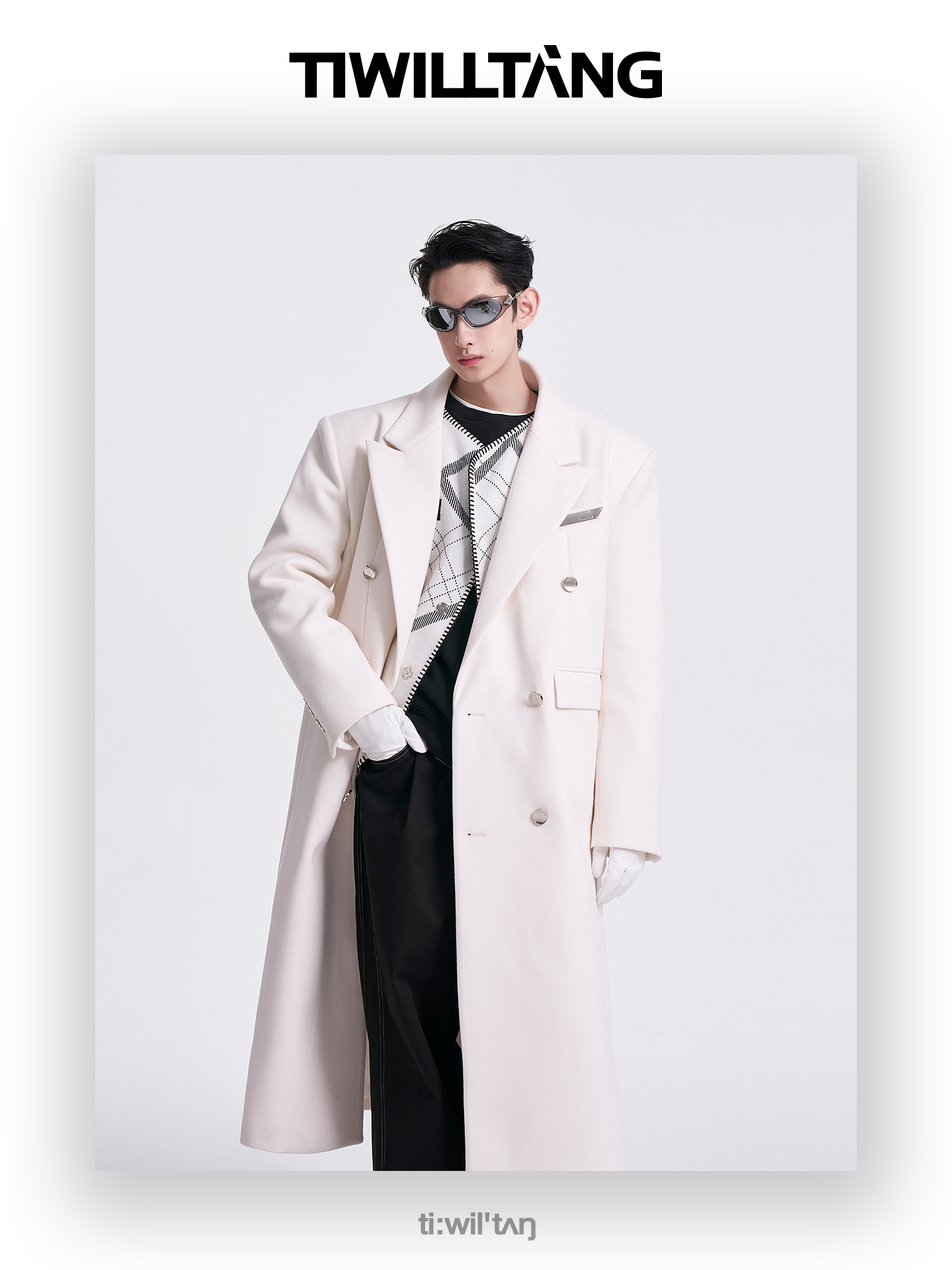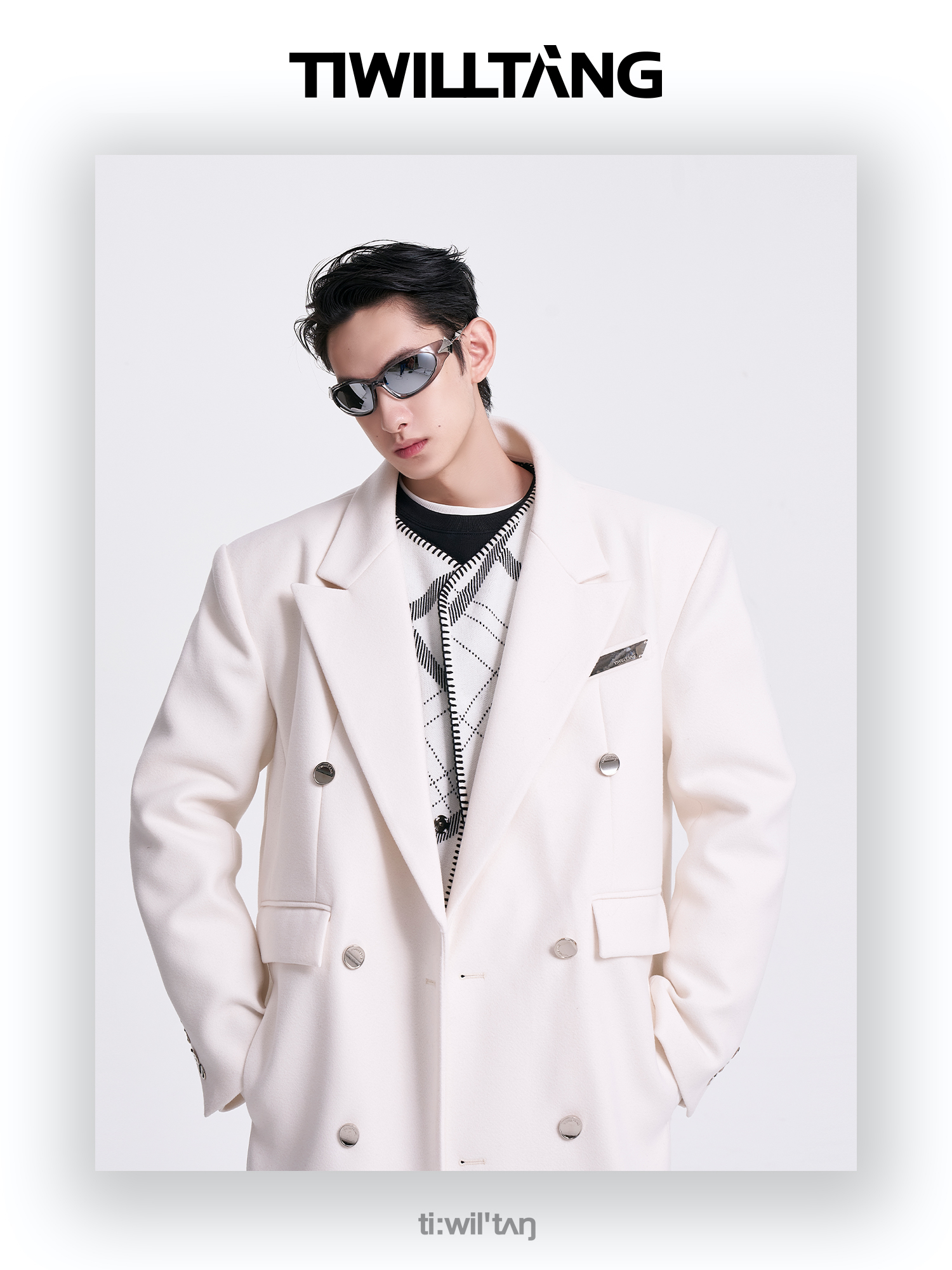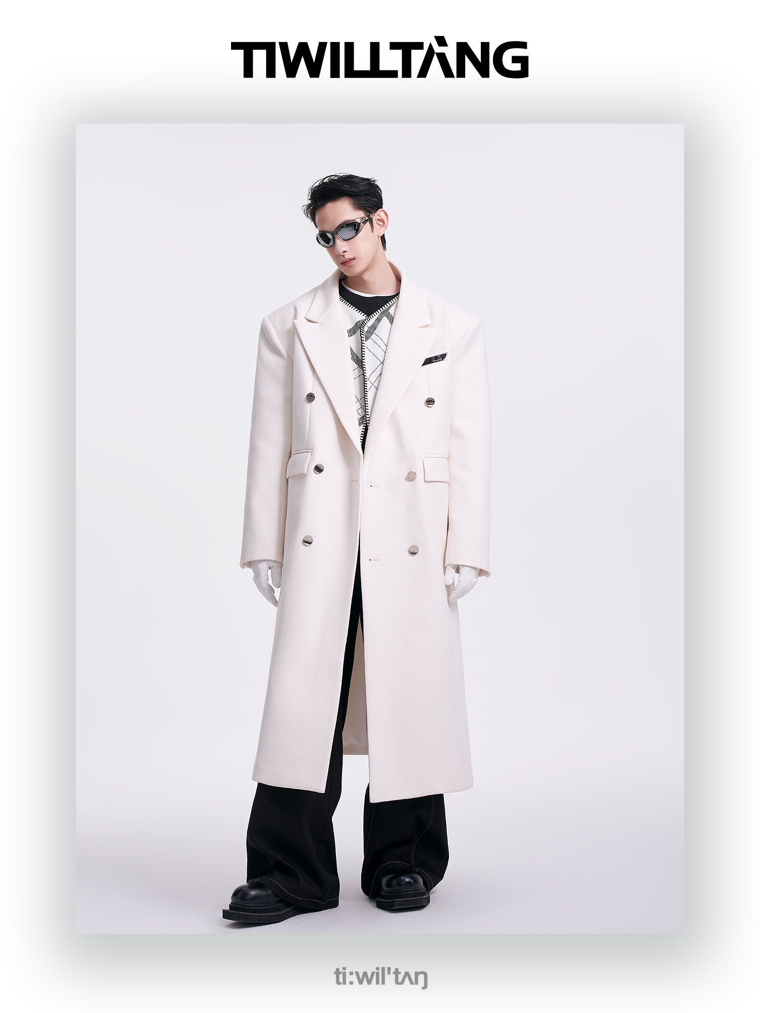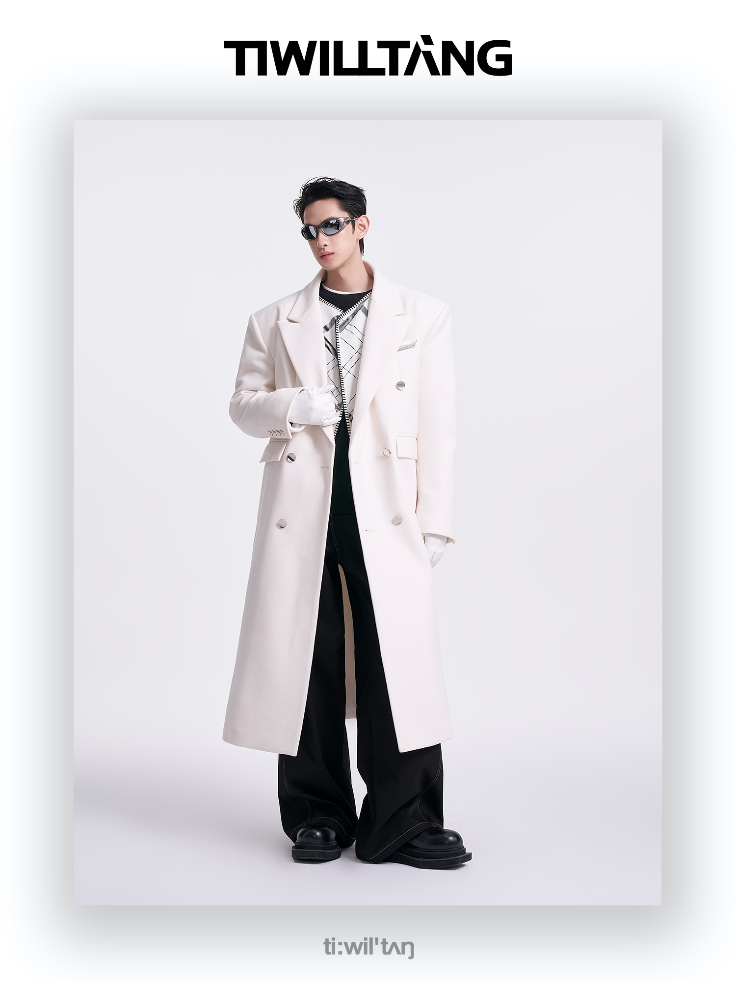 启世录TIWILLTANG"风卷山岚"双排扣定制金属标呢大衣