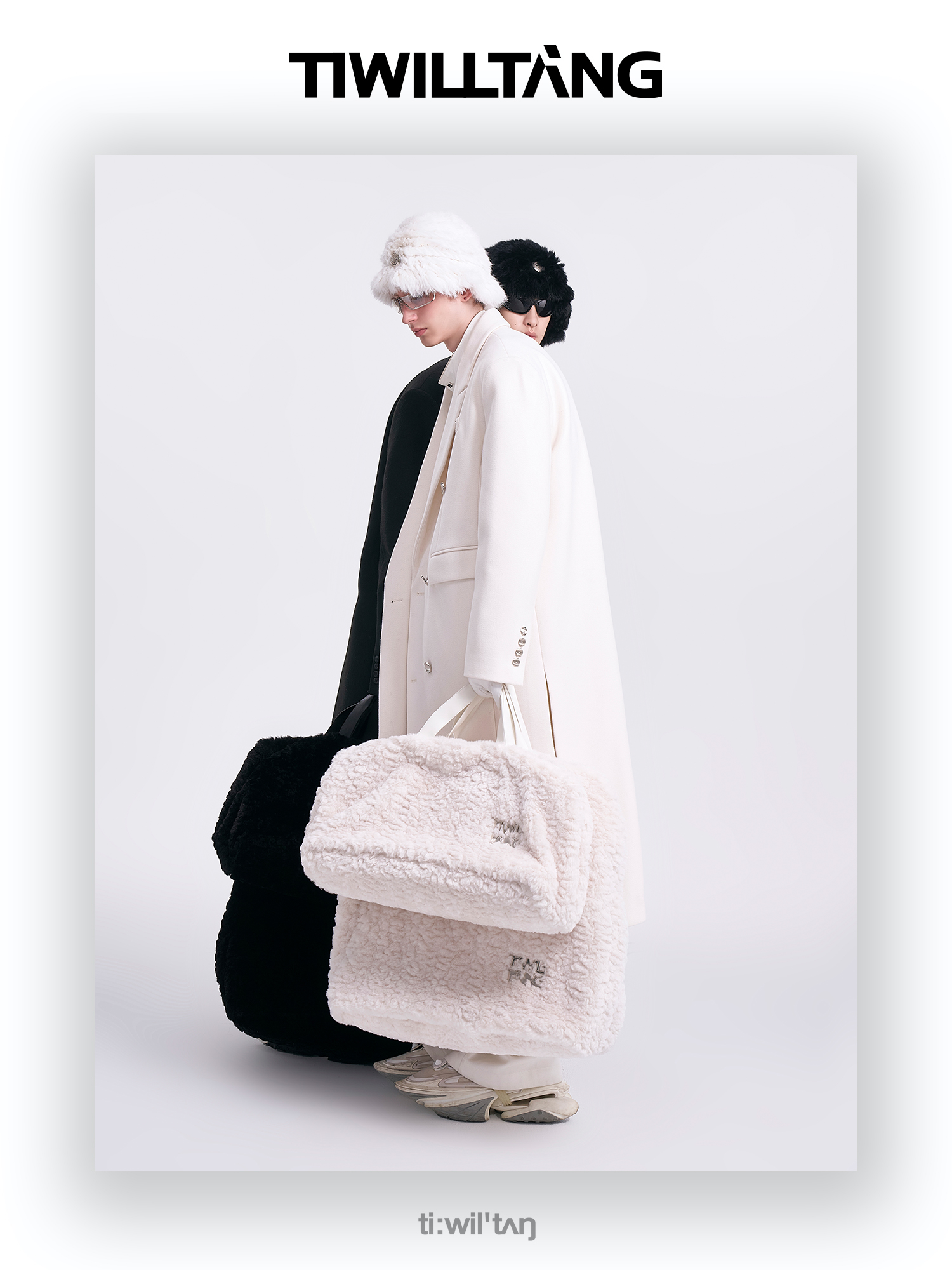 【平台回馈独占】TIWILLTANG启世录“钩玉屿寂”黑白开衩绒感撞色拼接针织开衫外套(微瑕不退不换)