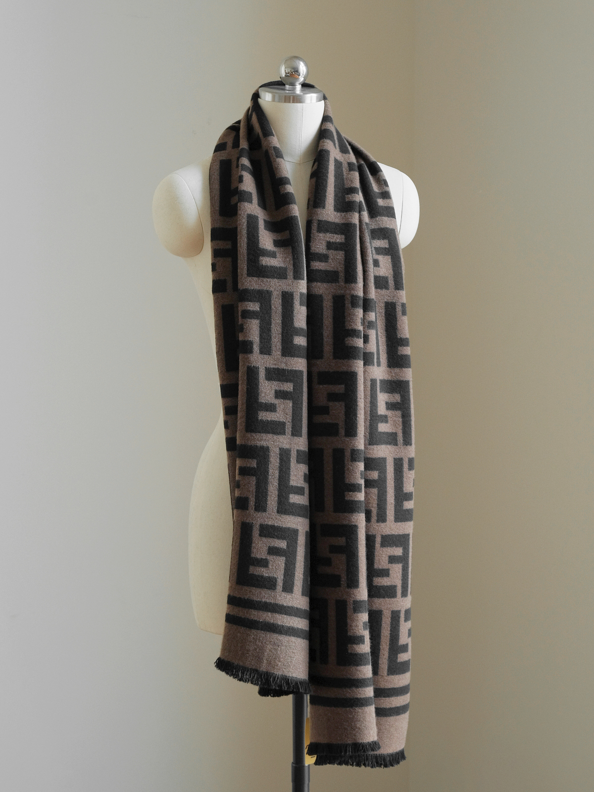 WJ13-芬迪 FF图案印花 羊绒围巾 男女同款情侣款(QZ*MM)