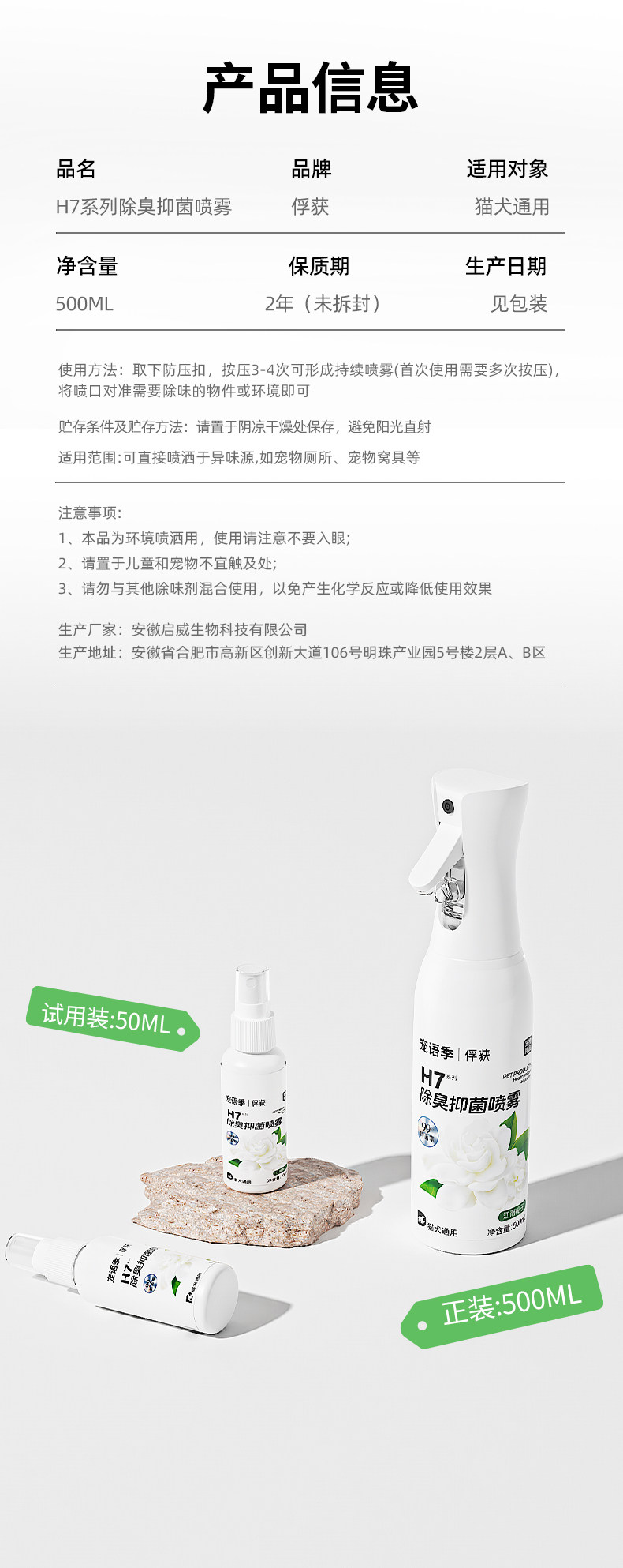 【爆款热卖】俘获&宠语季H7除臭剂喷雾猫狗尿味去除抑菌除臭人宠通用