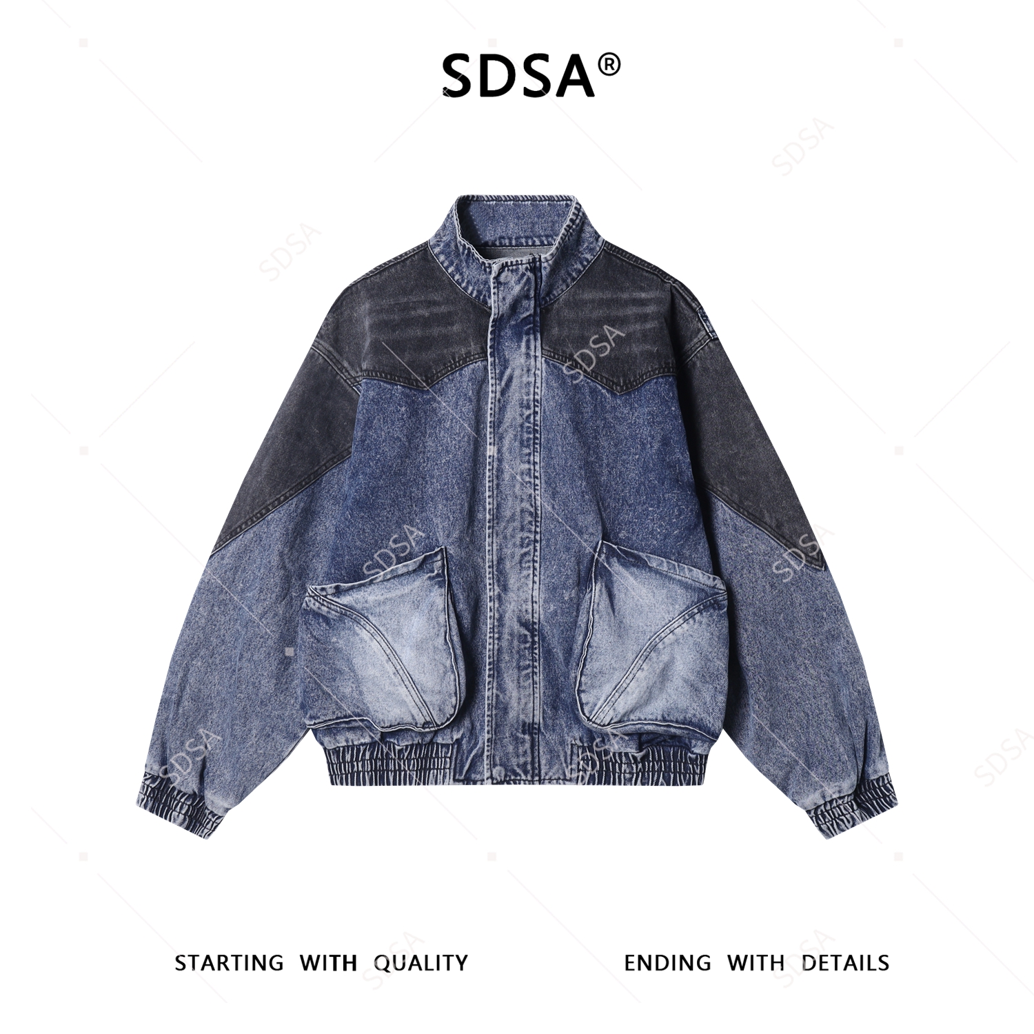 SDSA男士秋冬新款痞帅男装韩版撞色拼接立领牛仔夹克外套百搭宽松