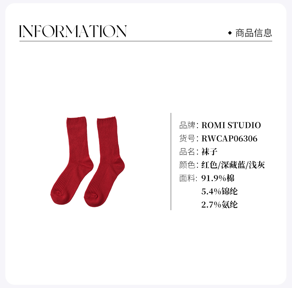 ROMI STUDIO“极简百搭”高支棉坑条抗起球中筒水手袜 RWCAP06306