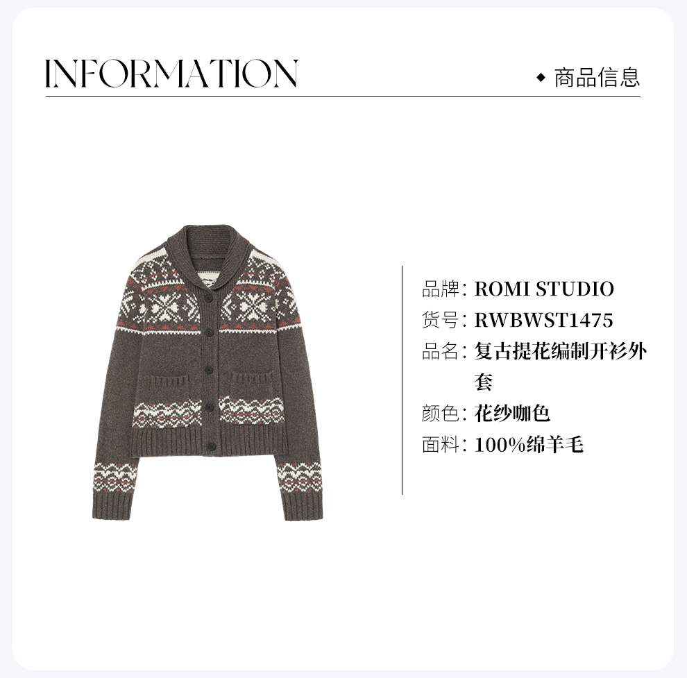 ROMI STUDIO“冬日松弛”100%澳洲进口绵羊毛费尔岛外套 RWBWST1475