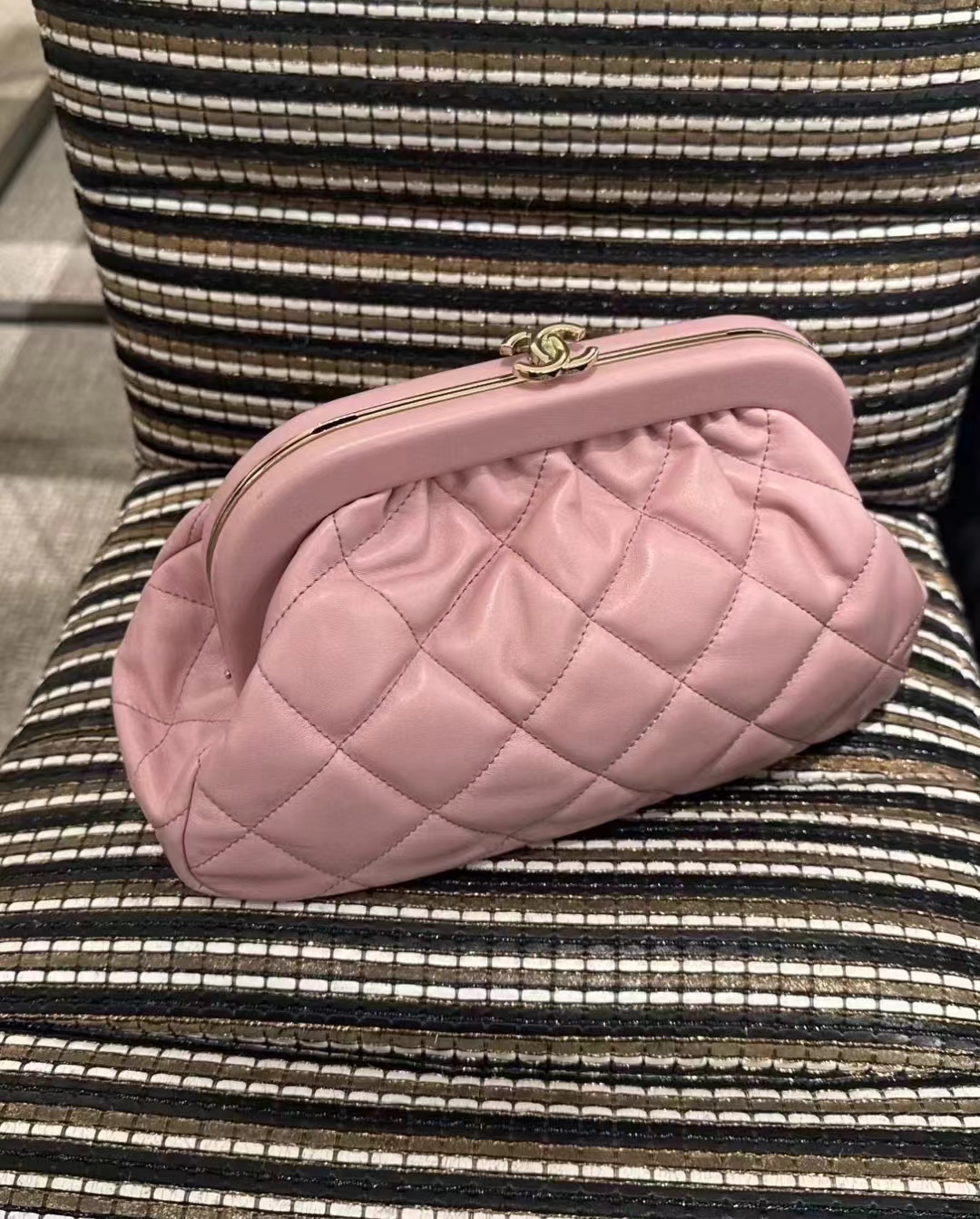 香奶奶 24A菱格纹链条 晚宴包手拿单肩包 淡粉色
