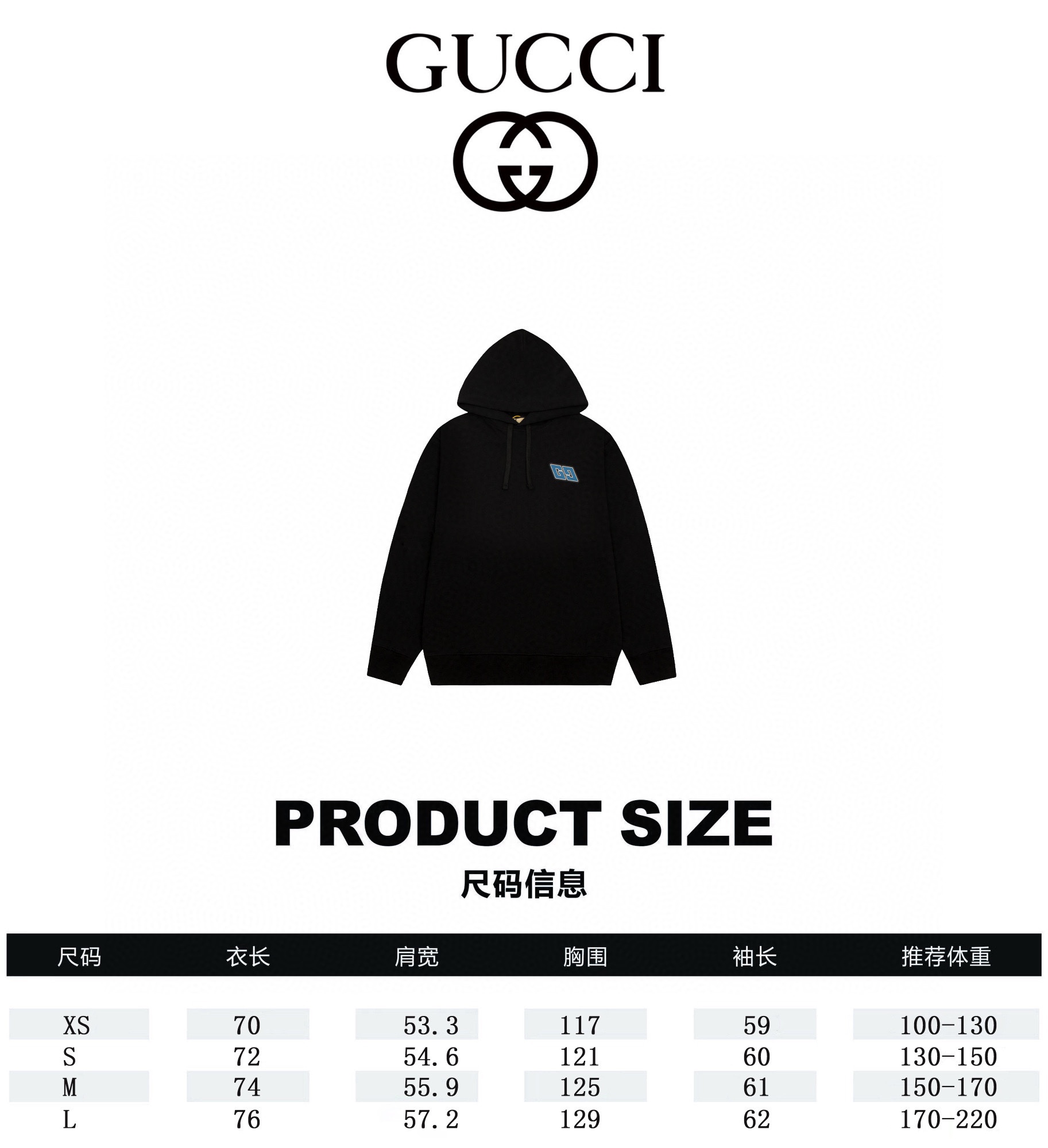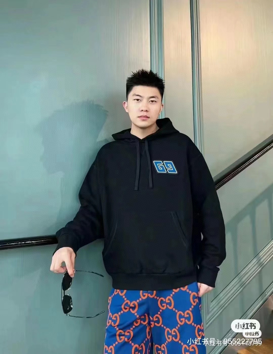 采用立体双G图标,区别于普通的图标 ,定织纯棉卫衣面料,舒适透气不易变形。三标齐全,宽松版型,男女同款