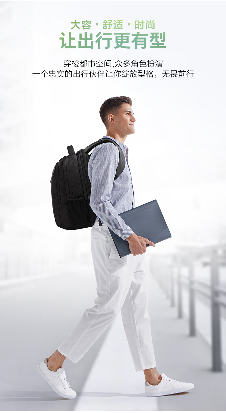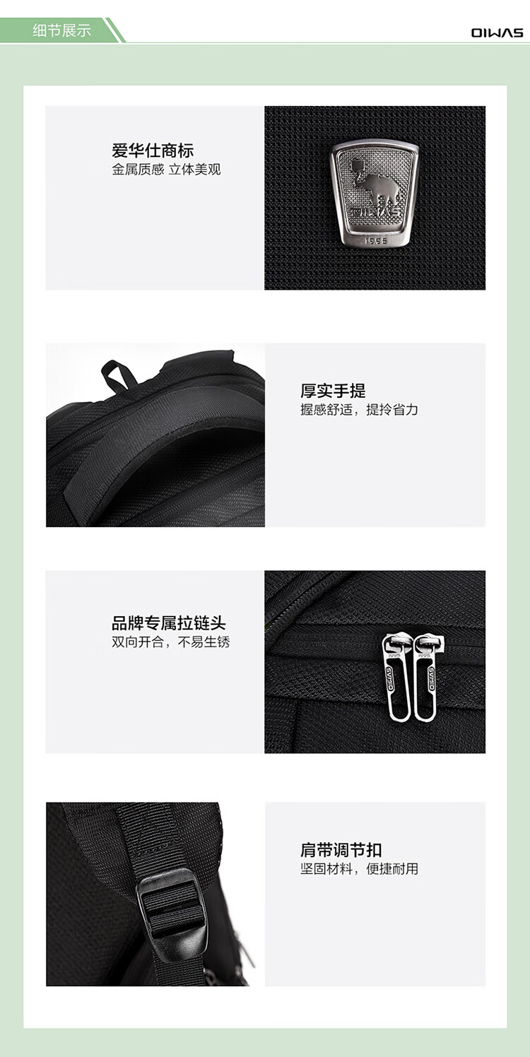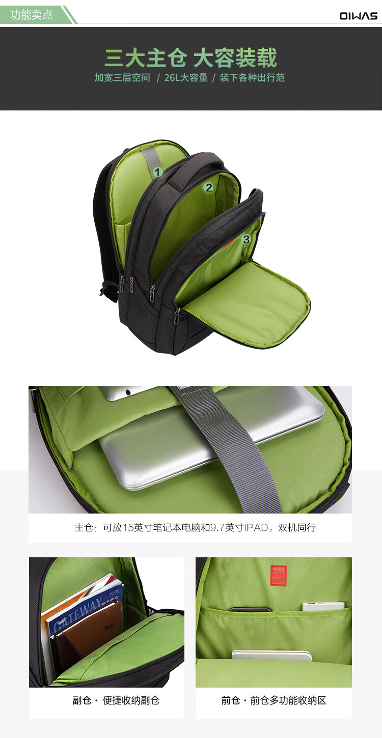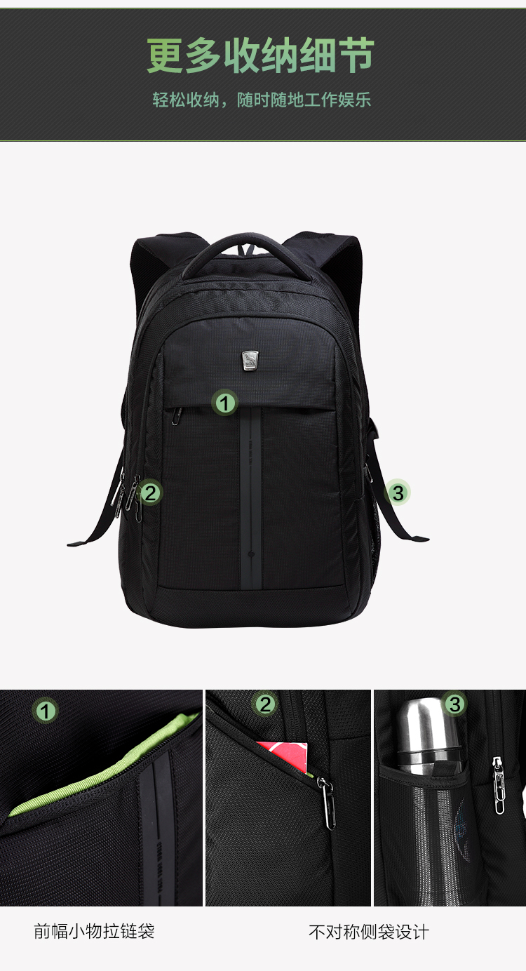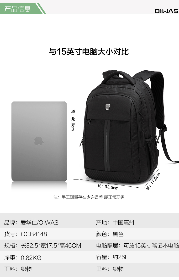 爱华仕电脑包双肩15英寸时尚商务背包男笔记本电脑包女大容量4148黑色