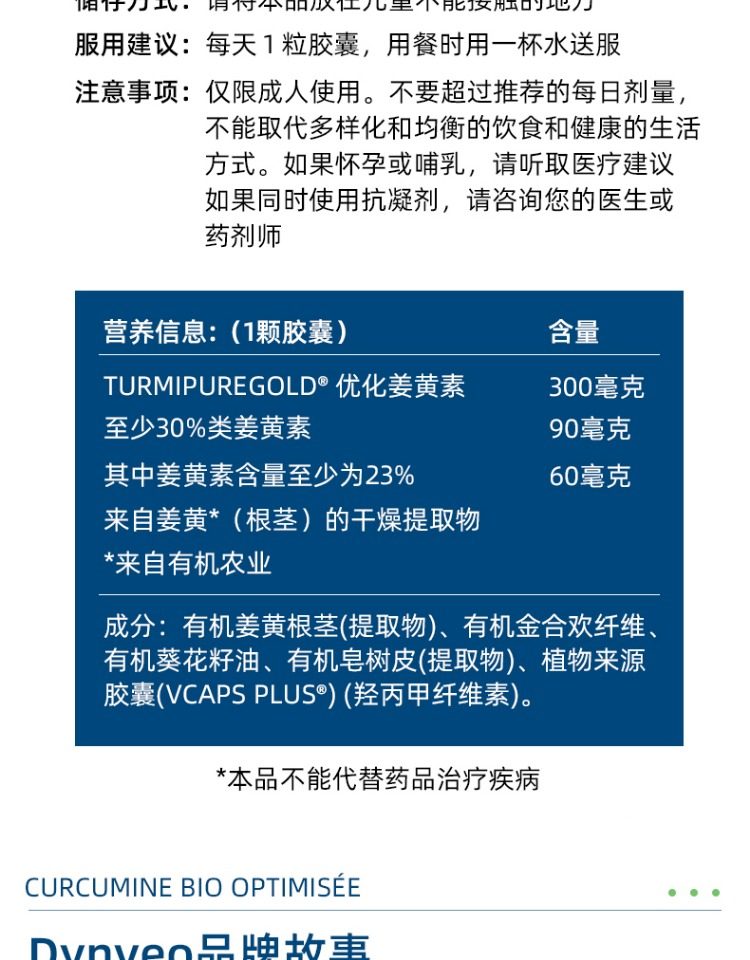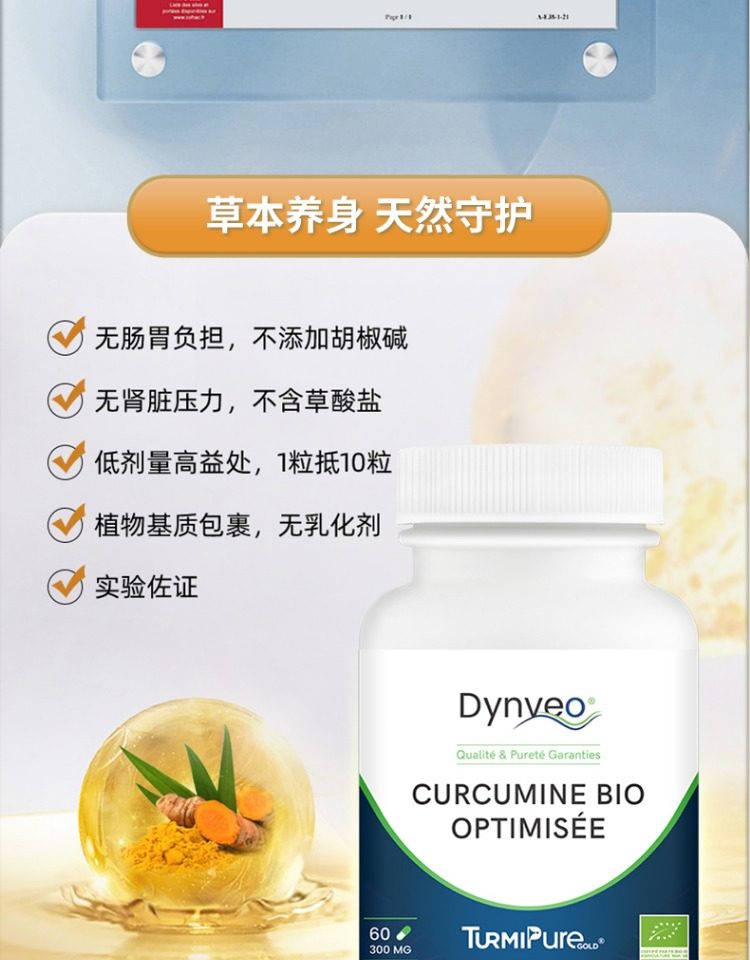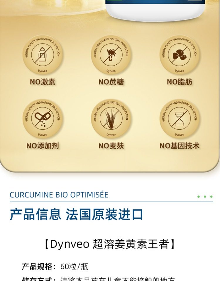 法国DYNVEO姜黄素胶囊60粒瓶南非醉茄脂质体谷胱甘肽维生素C关节