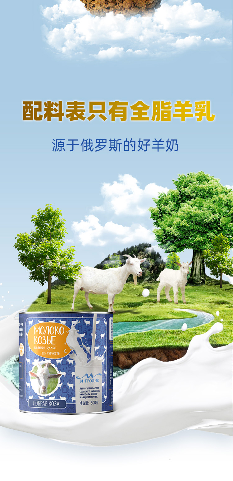 【私域产品】俄罗斯天然牧场羊奶粉进口莫格诺全脂羊奶粉中老年学生300g/罐