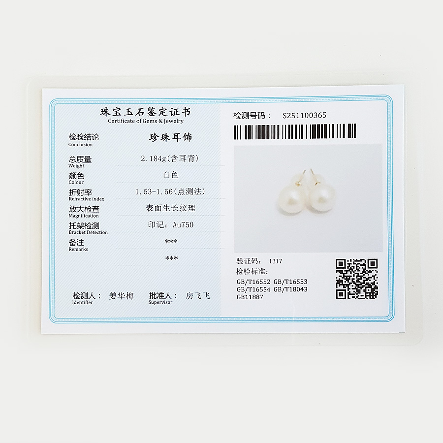 名称 | AU750黄金镶天然近完美约8.9MM白色珍珠耳钉 |