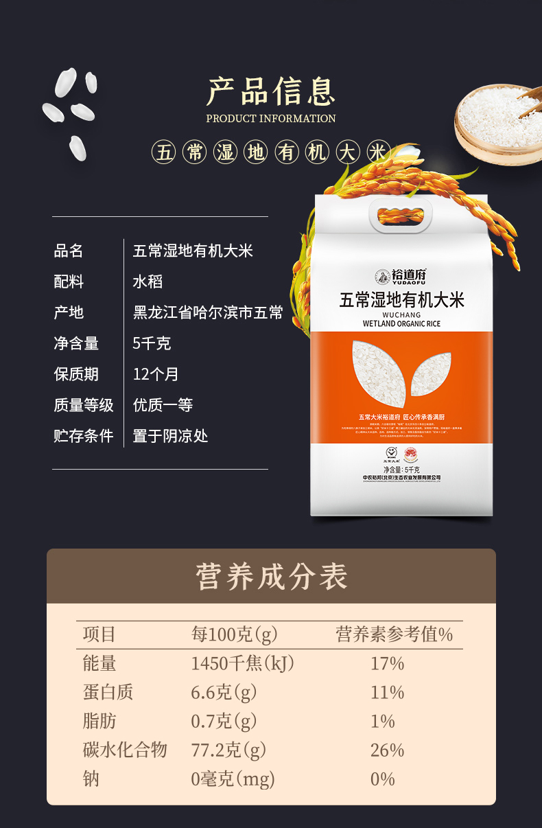 裕道府 五常湿地有机大米(双层袋真空装)5kg