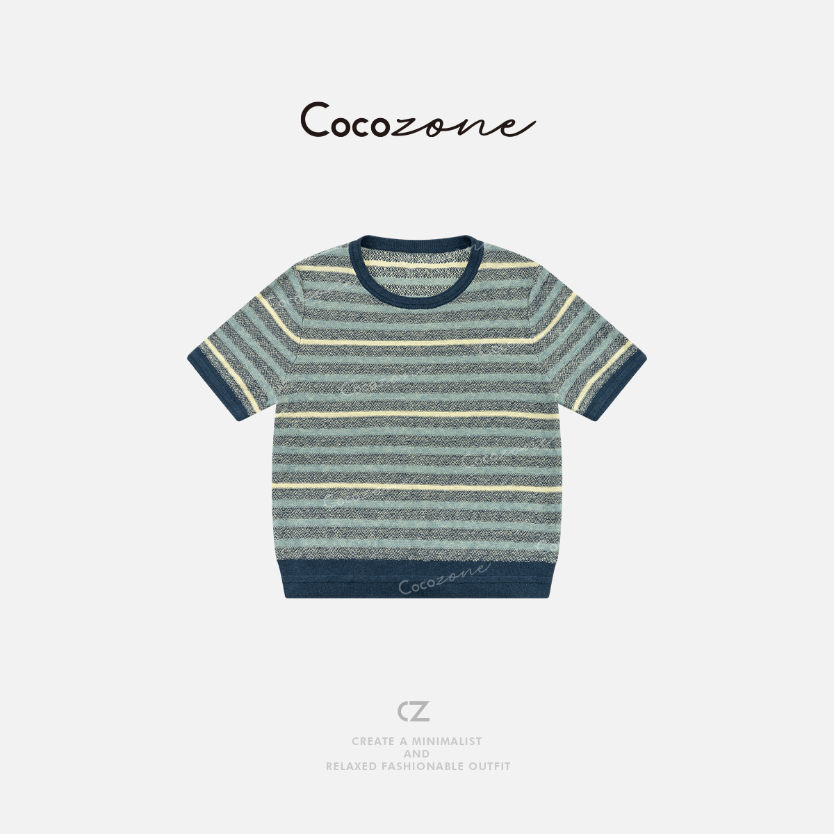 COCO ZONE 刘一一 【亚麻混纺】撞色条纹圆领毛针织衫CD1A0820