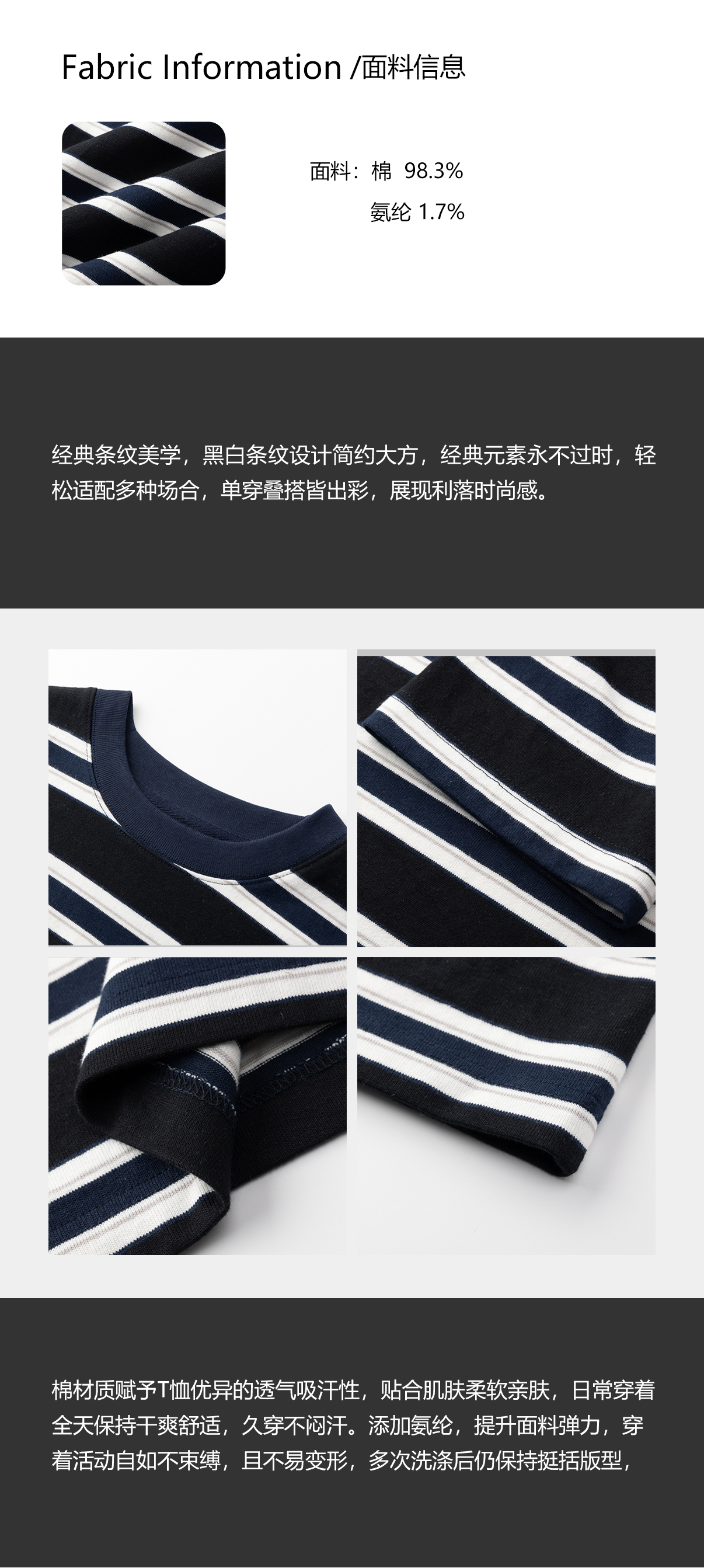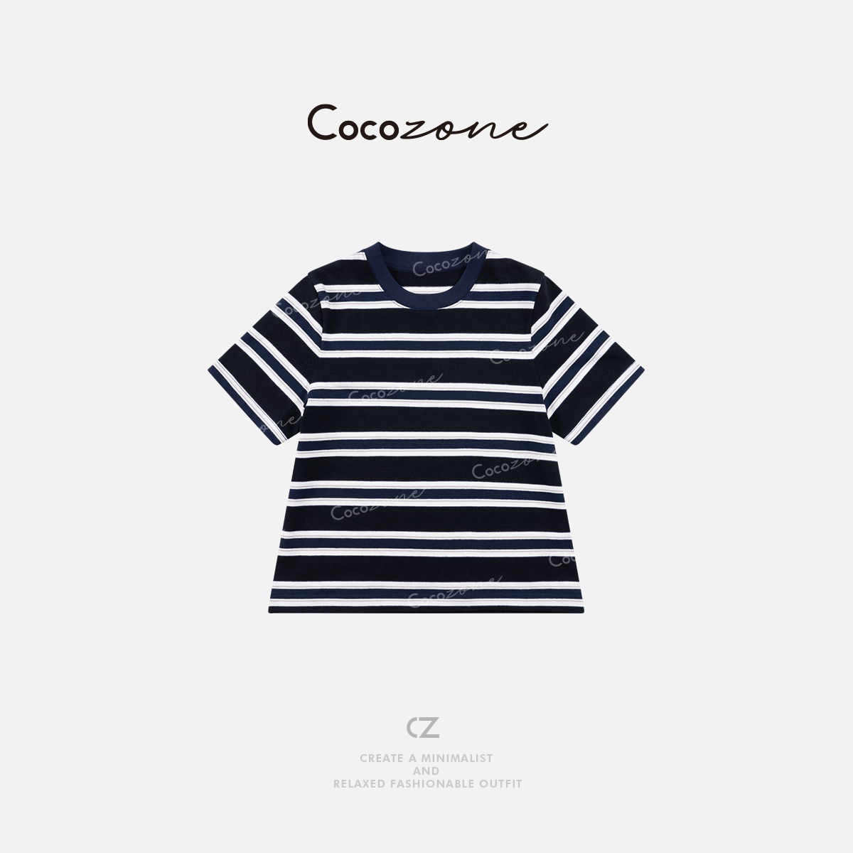 COCO ZONE 刘一一 撞色条纹圆领短袖复古通勤风T恤CD2A0742