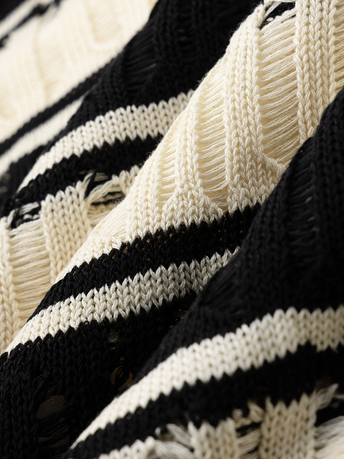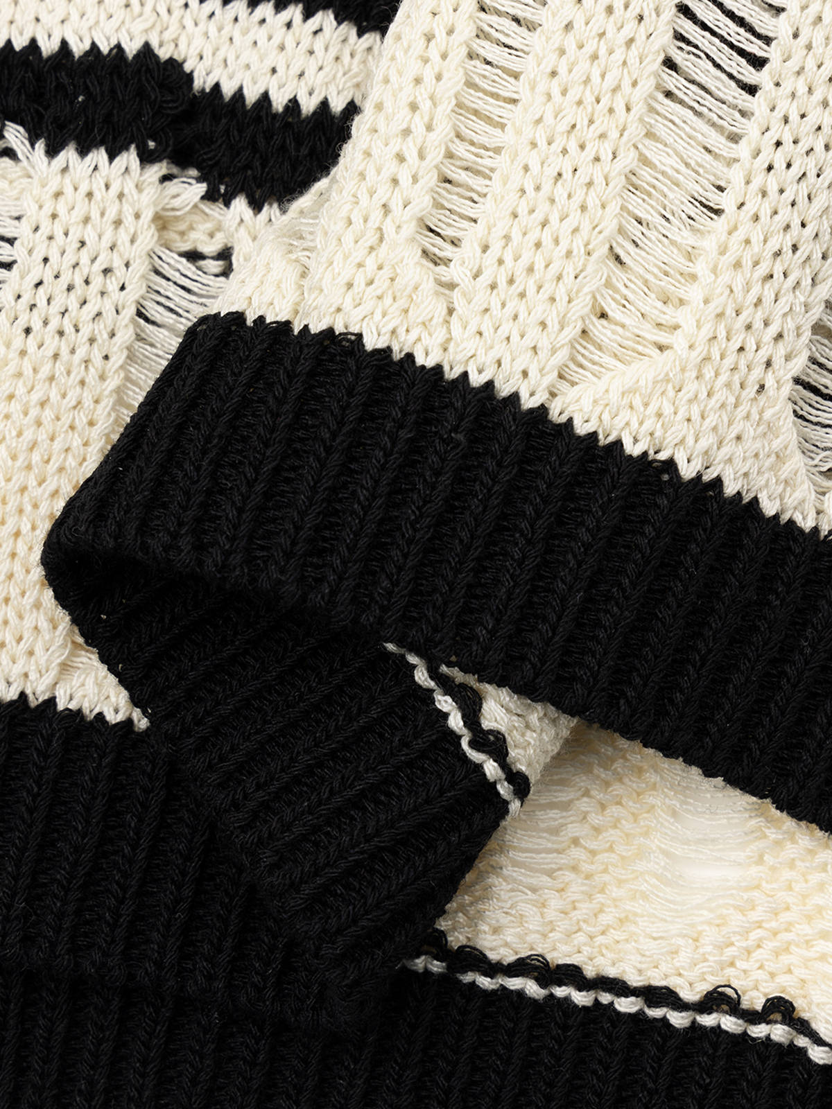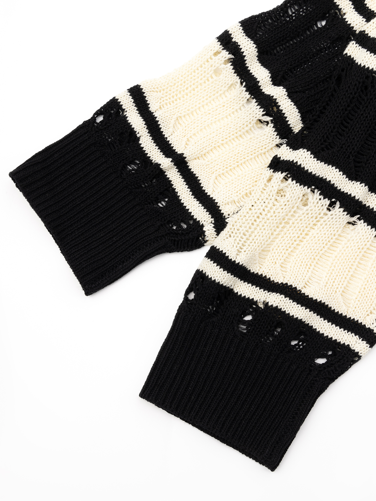 COCO ZONE“洛拉”夏季镂空圆领针织衫条纹宽松长袖上衣CC1B0854