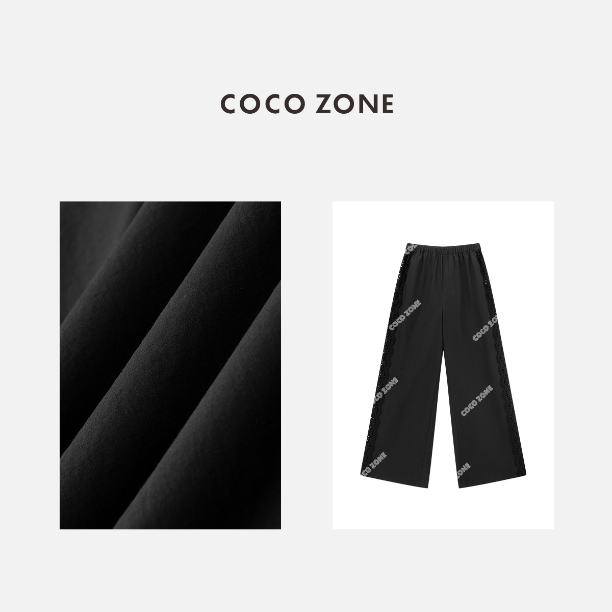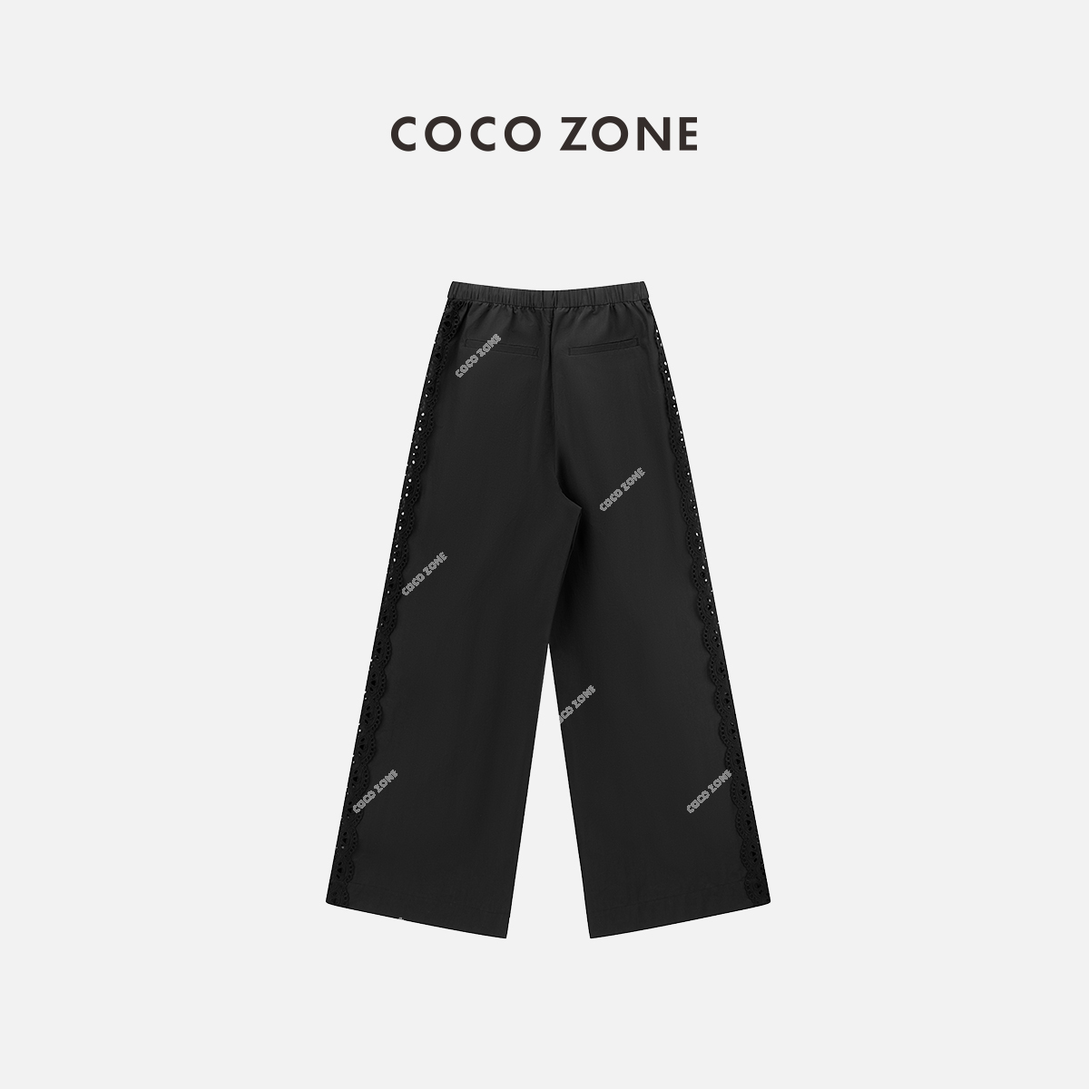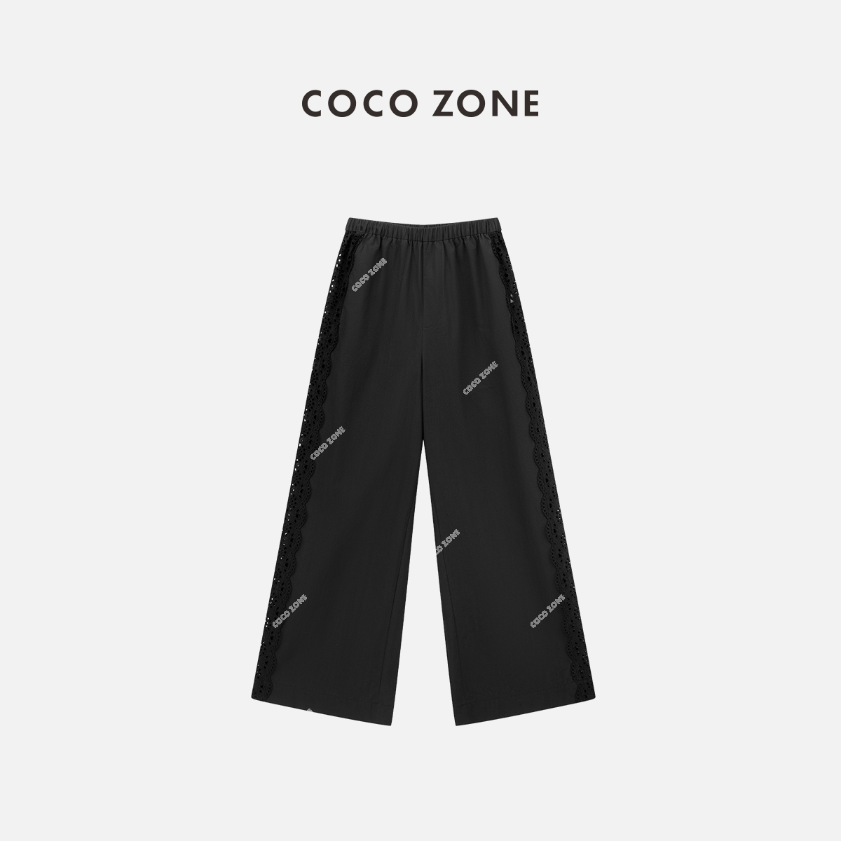 COCO ZONE设计感蕾丝拼接镂空阔腿裤夏季宽松显瘦休闲裤CC2B0759