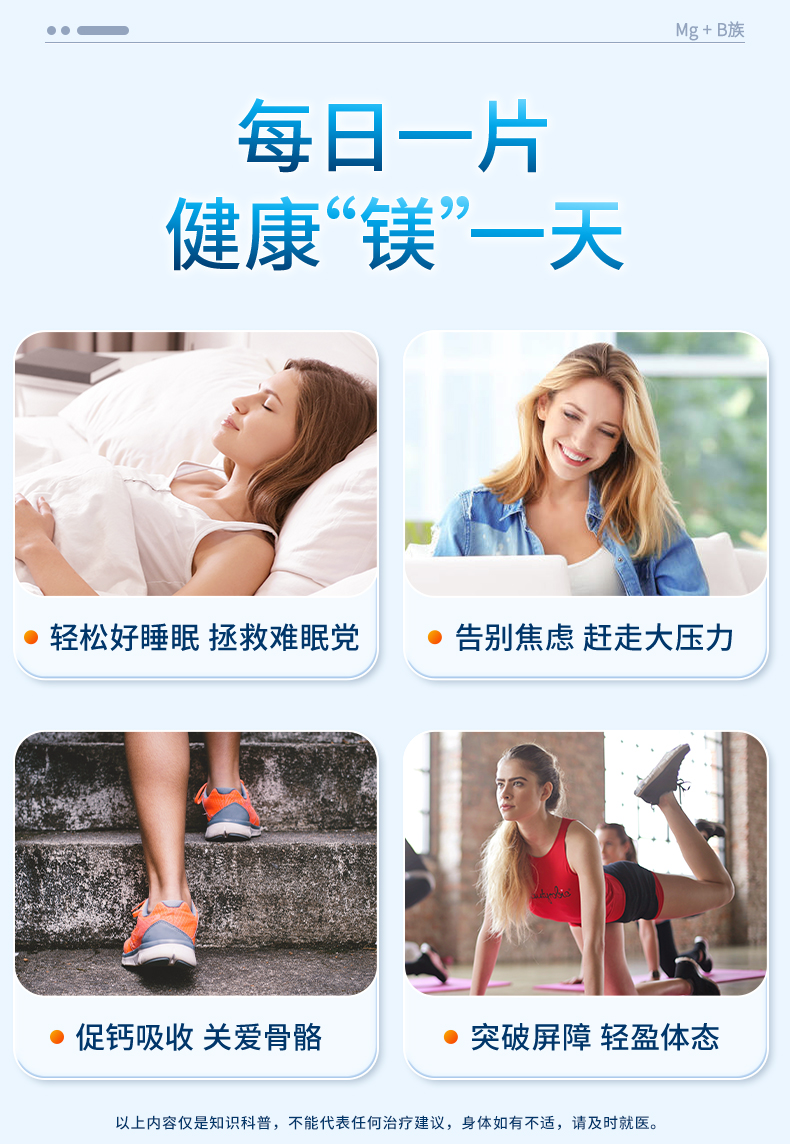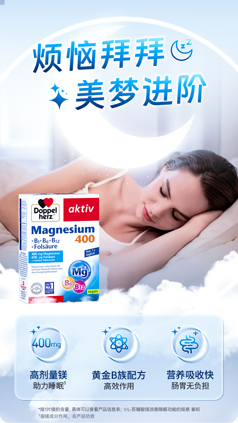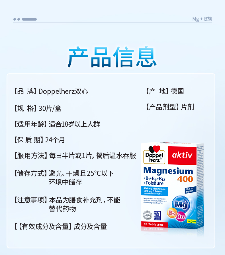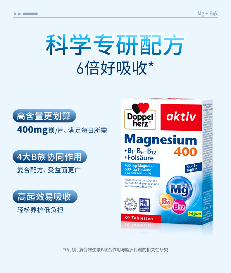 【德国双心】镁+维生素B族营养片 成人复合维生素b族矿物质综合镁补充剂30粒