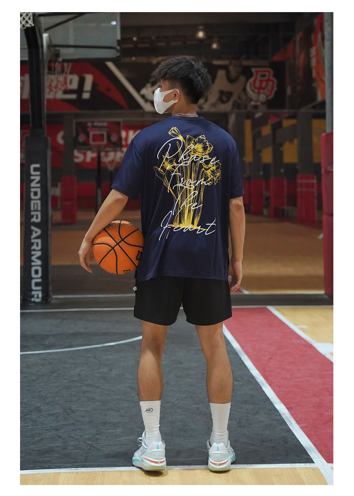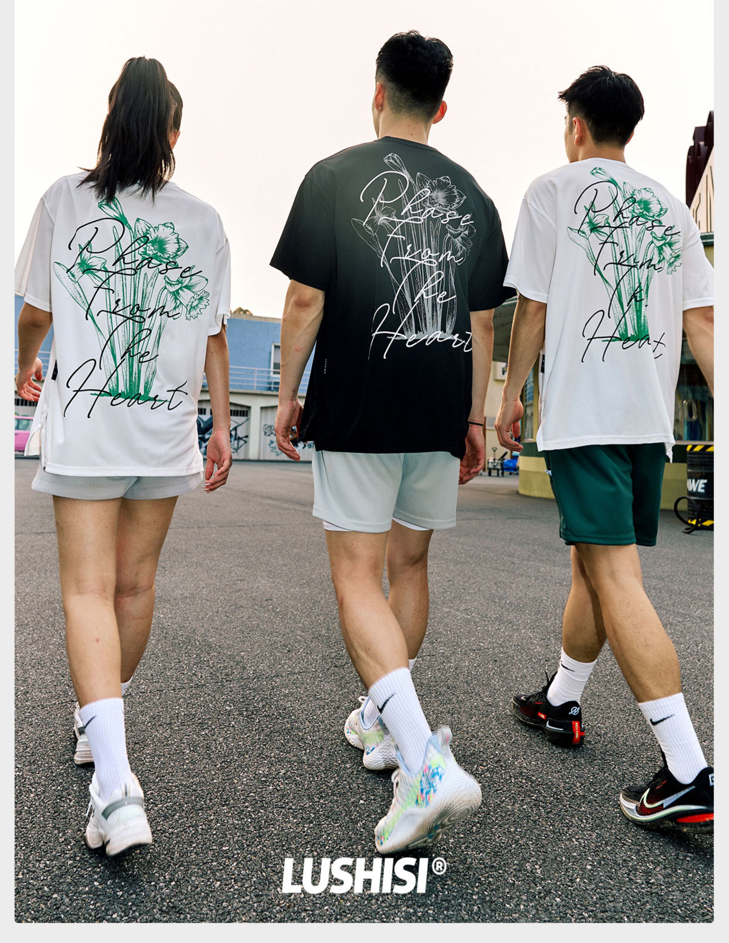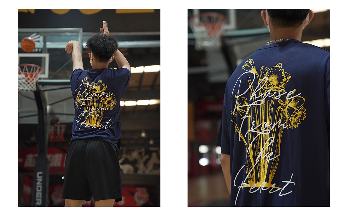 LUSHISI[花束]印花速干短袖美式篮球训练服t恤跑步冰丝圆领投篮服