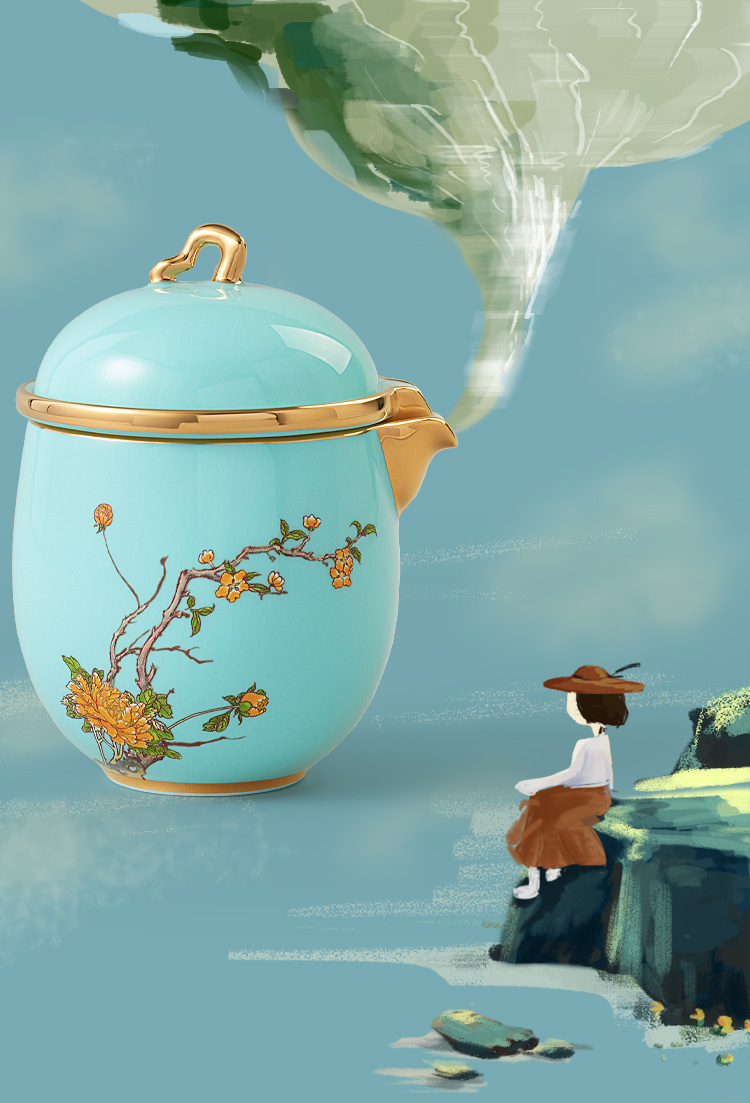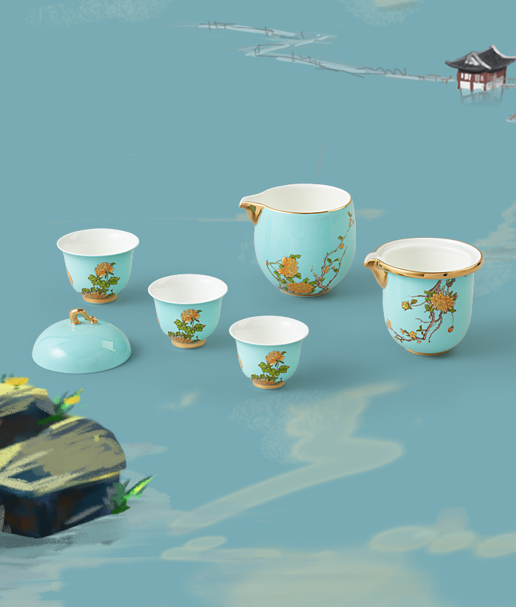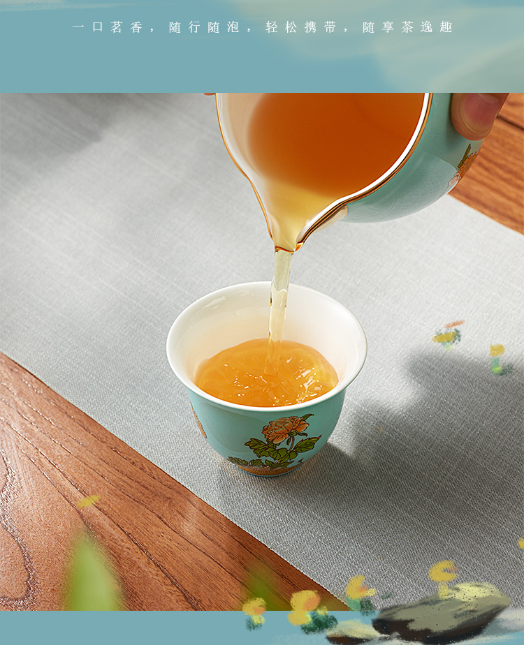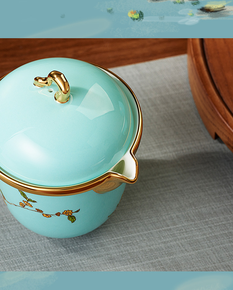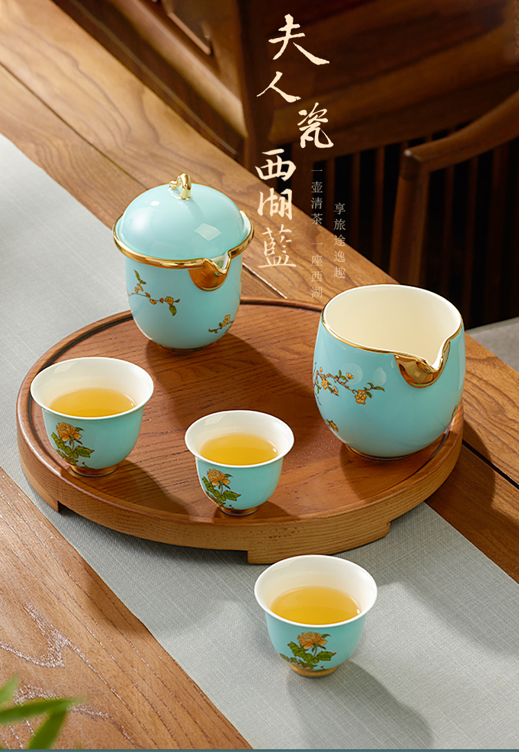 永丰源夫人瓷西湖蓝6头旅行茶具 露营茶具快客杯便携式茶具礼盒装