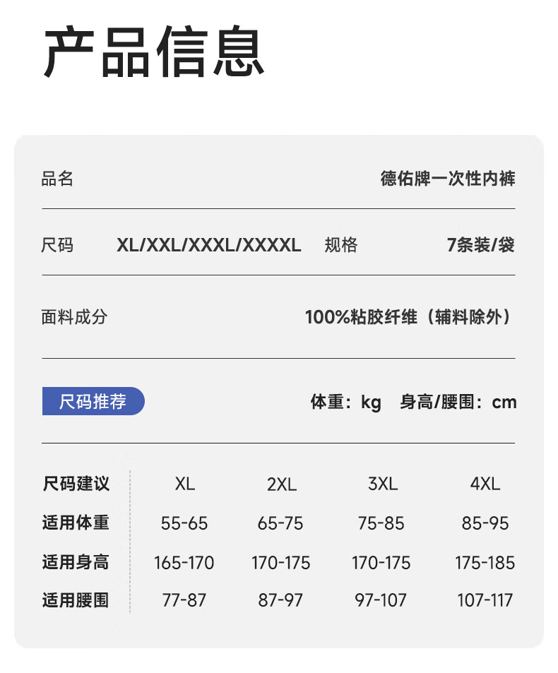 德佑 7A级男士一次性内裤7条/包