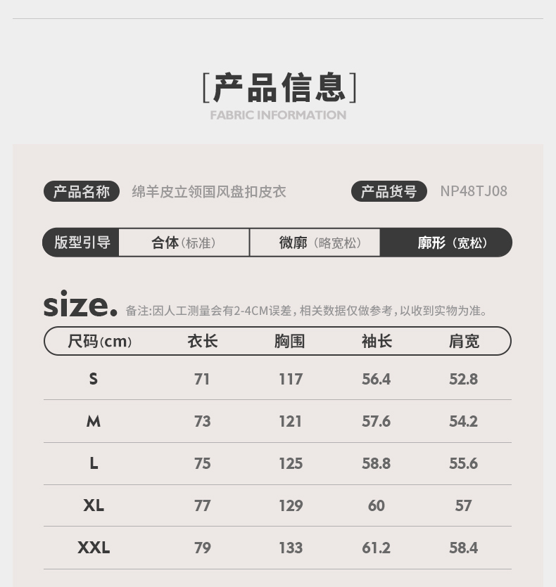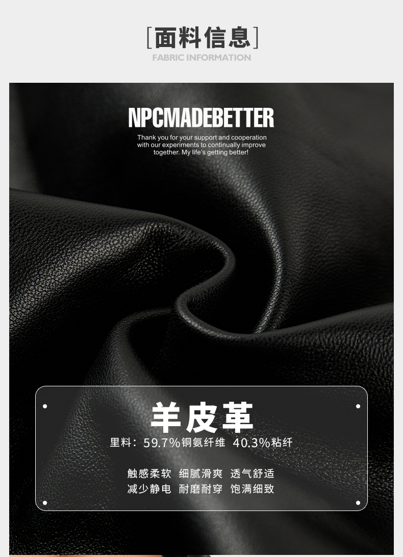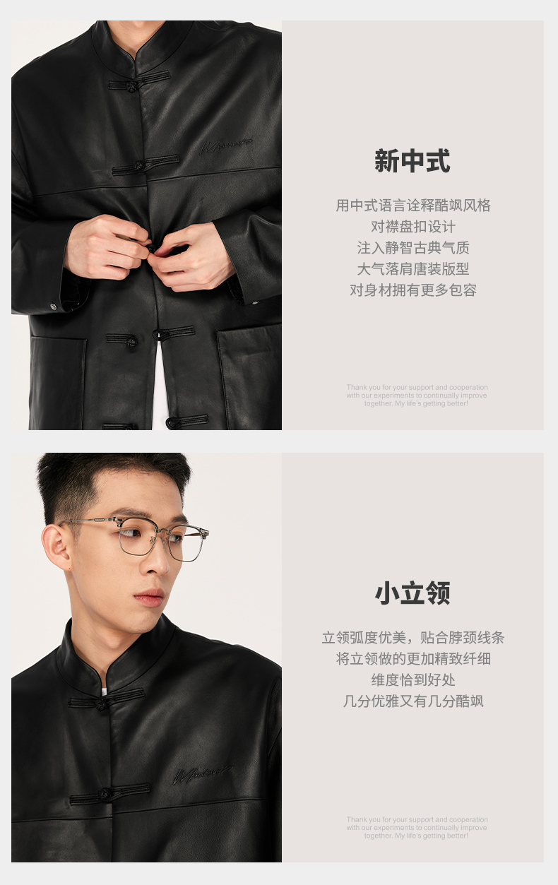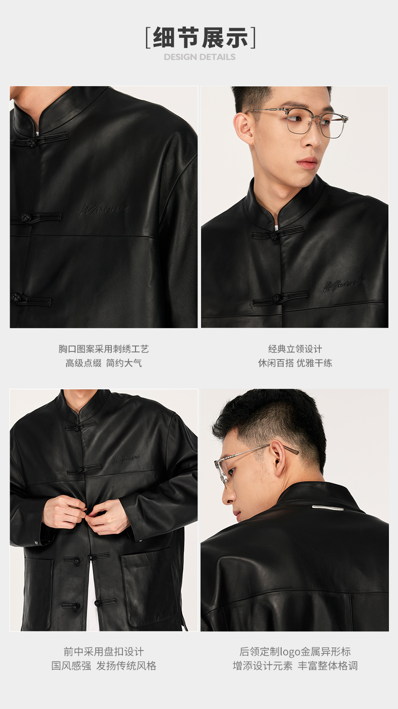 NPC潮牌国风新中式羊皮革立领盘扣皮衣夹克老钱风外套NP48TJ08