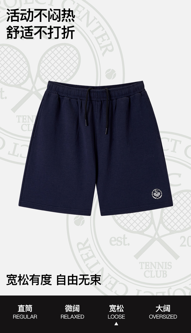 NPC潮牌网球系列刺绣网球拍直筒休闲短裤男透气松紧腰NP54SR37