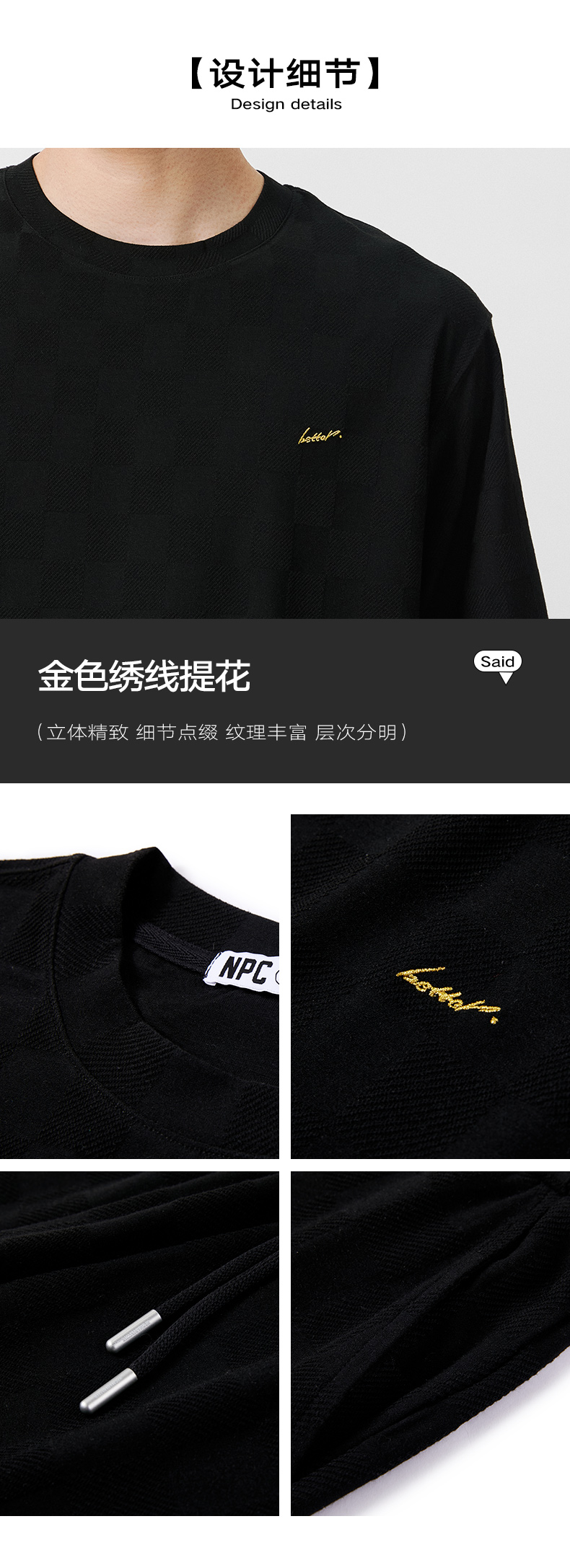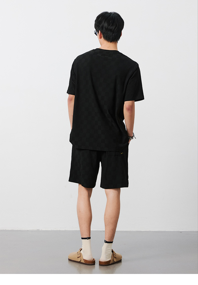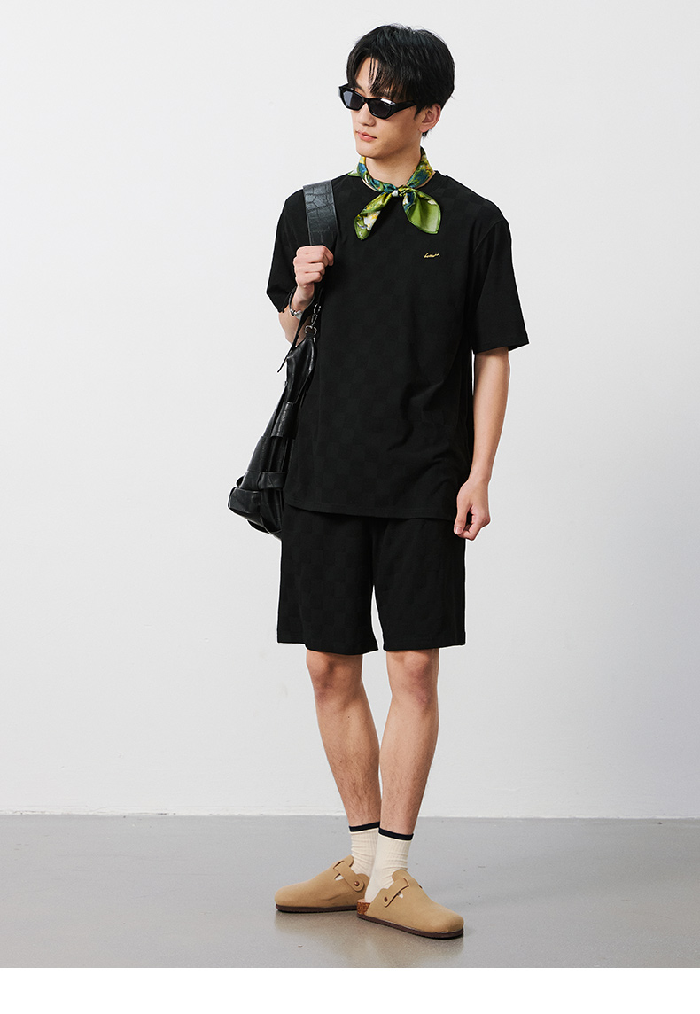 NPC潮牌金线刺绣棋盘格提花短袖百搭T恤短裤男肌理感透气NP52TE13